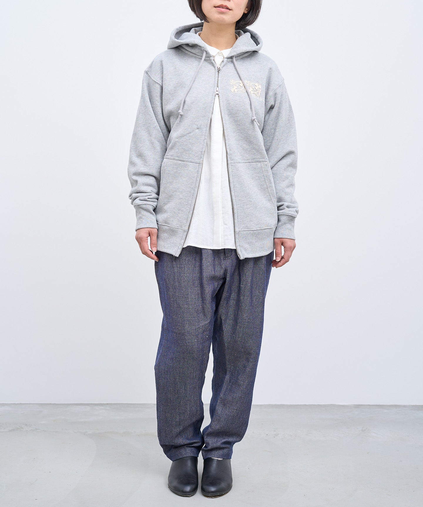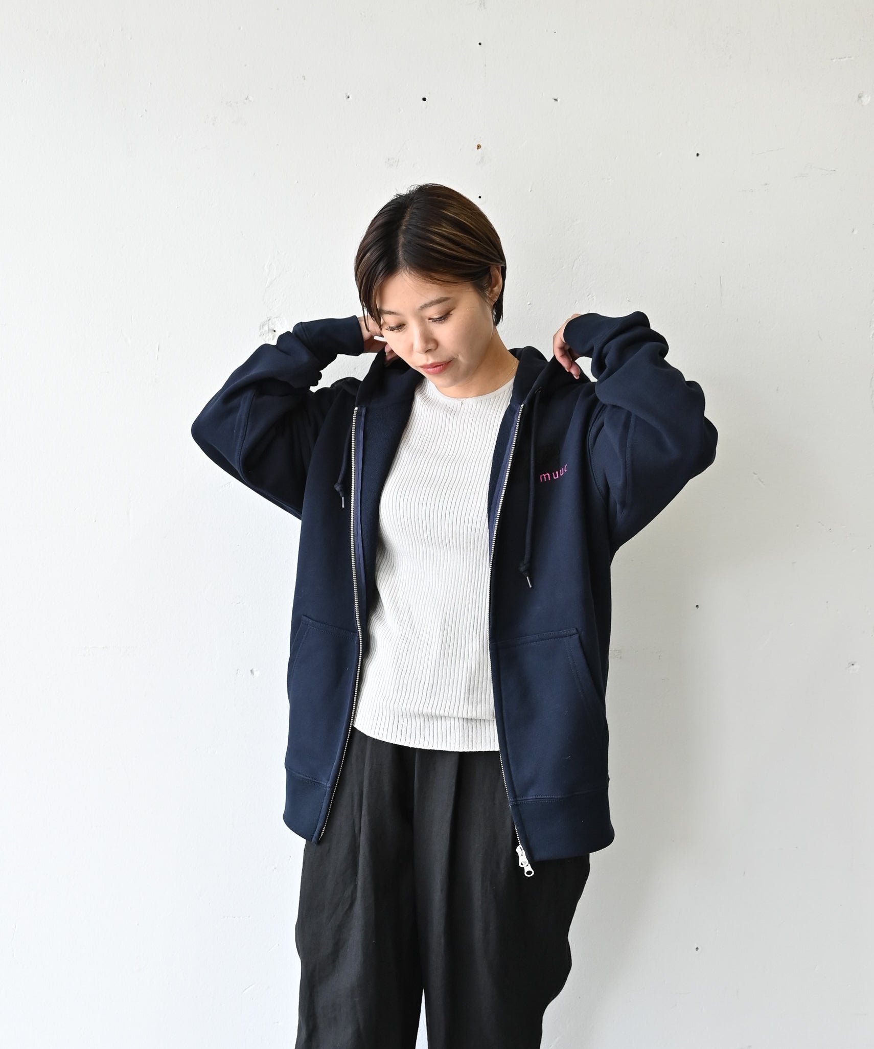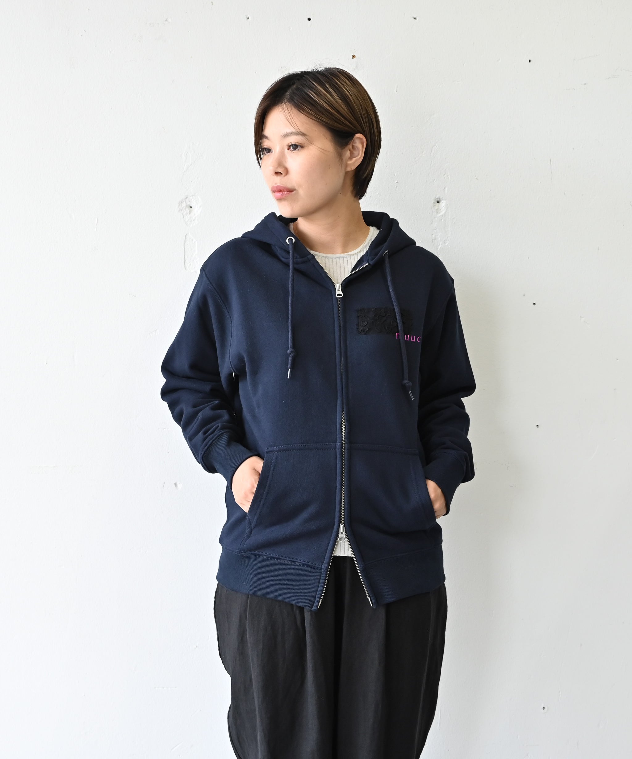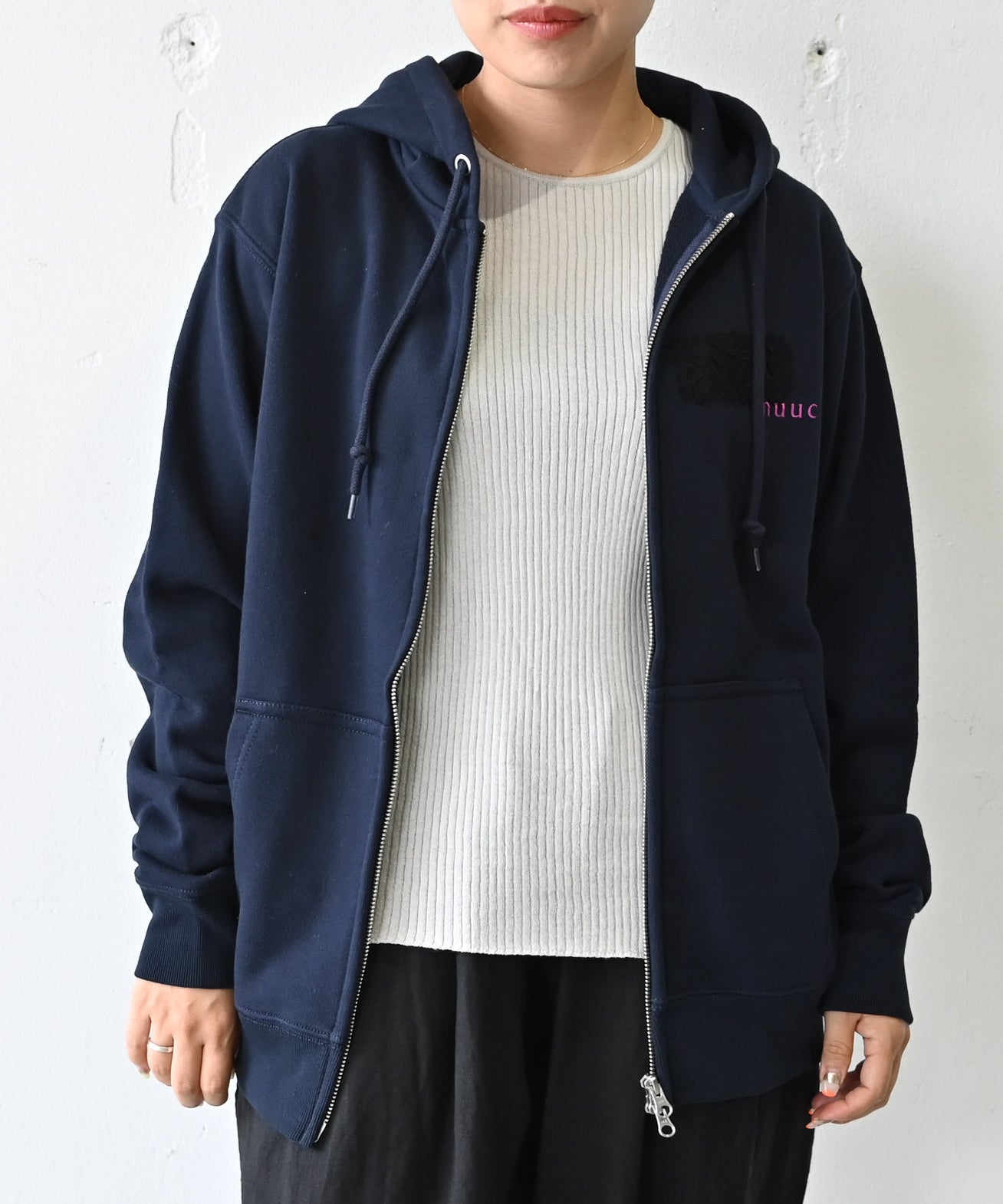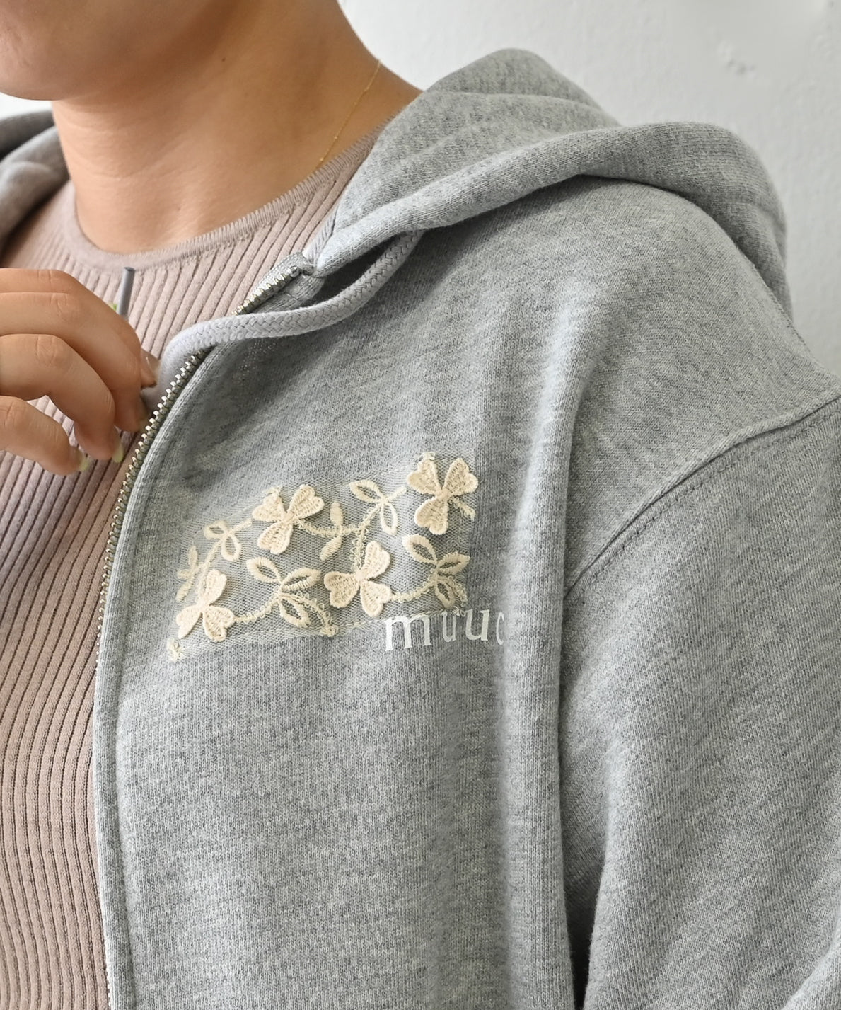 〈コットン100% 12.7オンス生地&裏面パイル〉花刺繍のWジップパーカー (muf719)