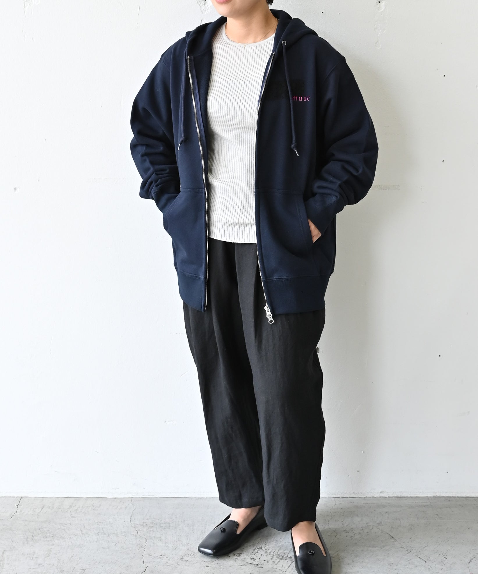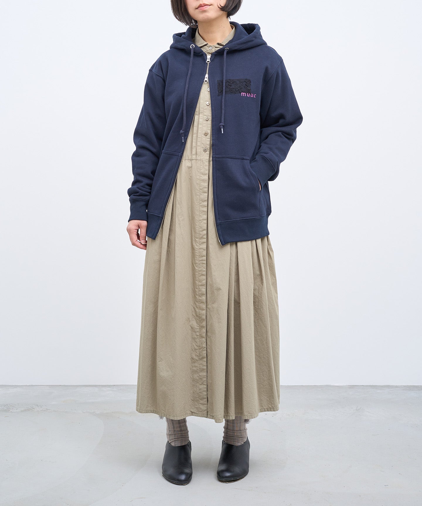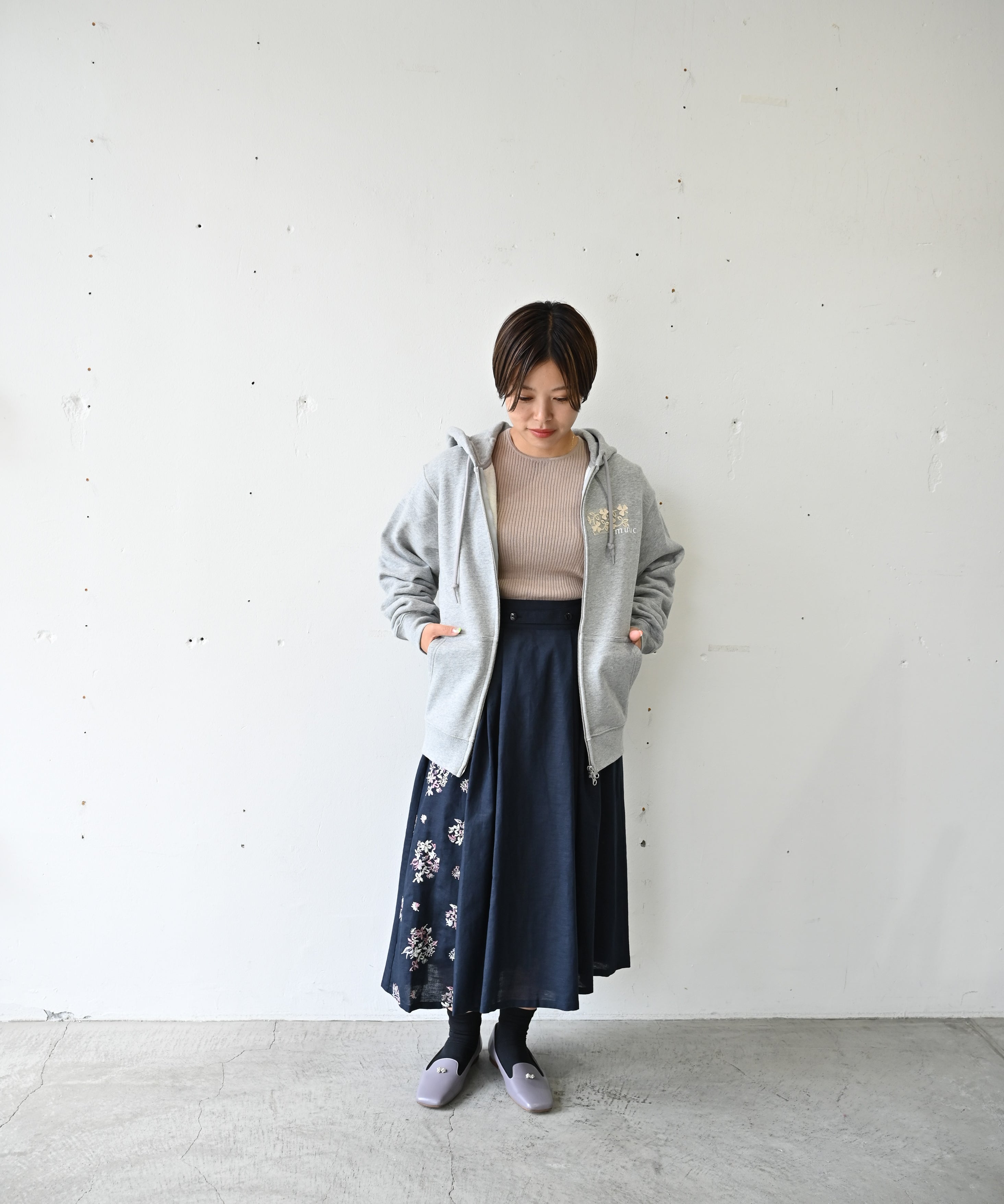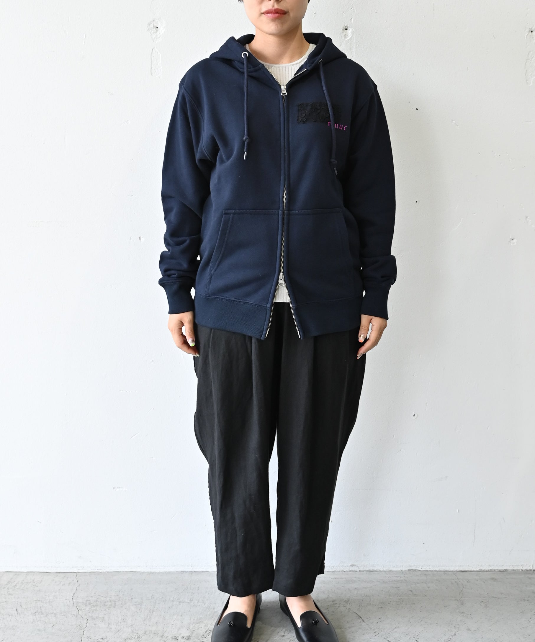 〈コットン100% 12.7オンス生地&裏面パイル〉花刺繍のWジップパーカー (muf719)