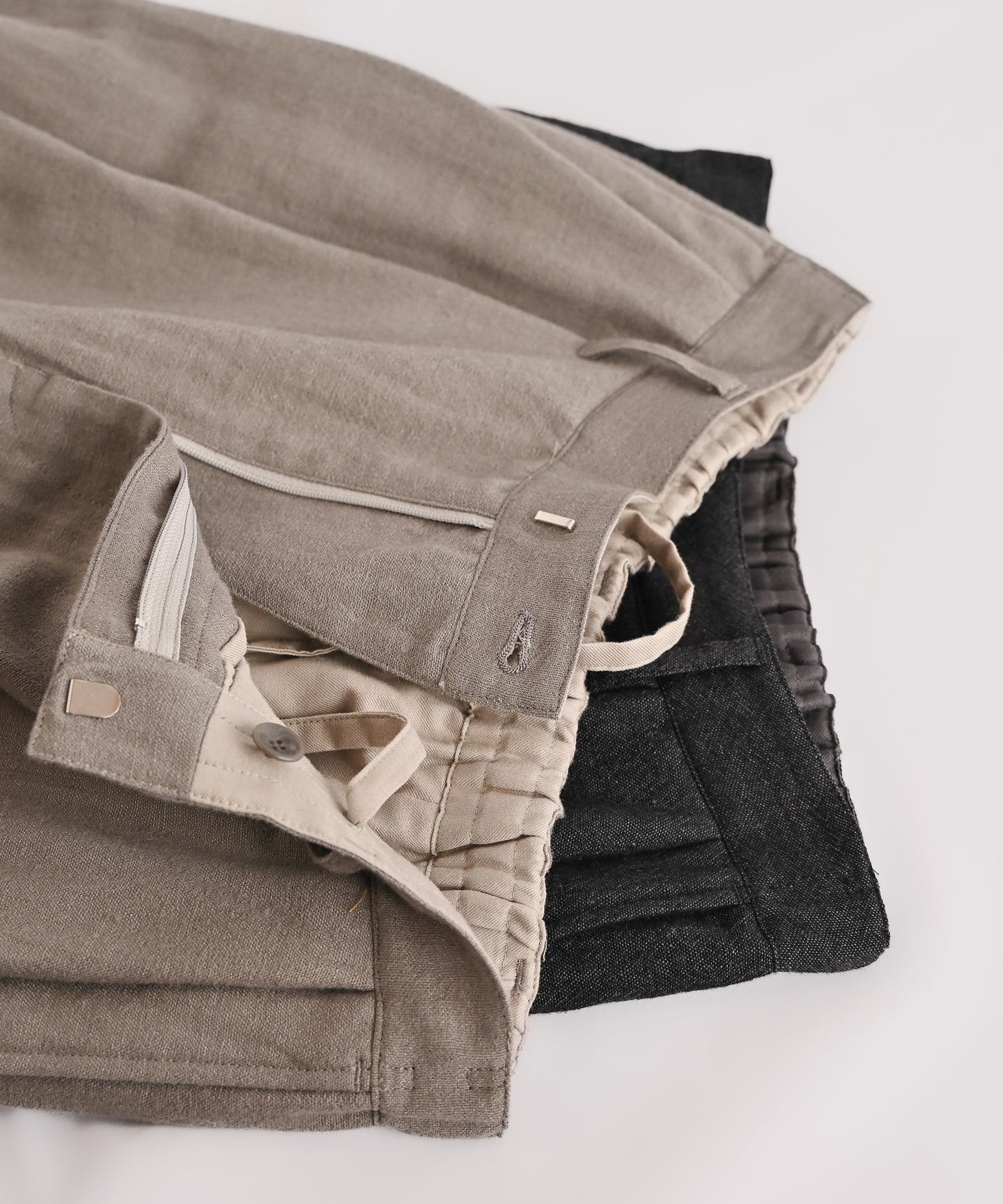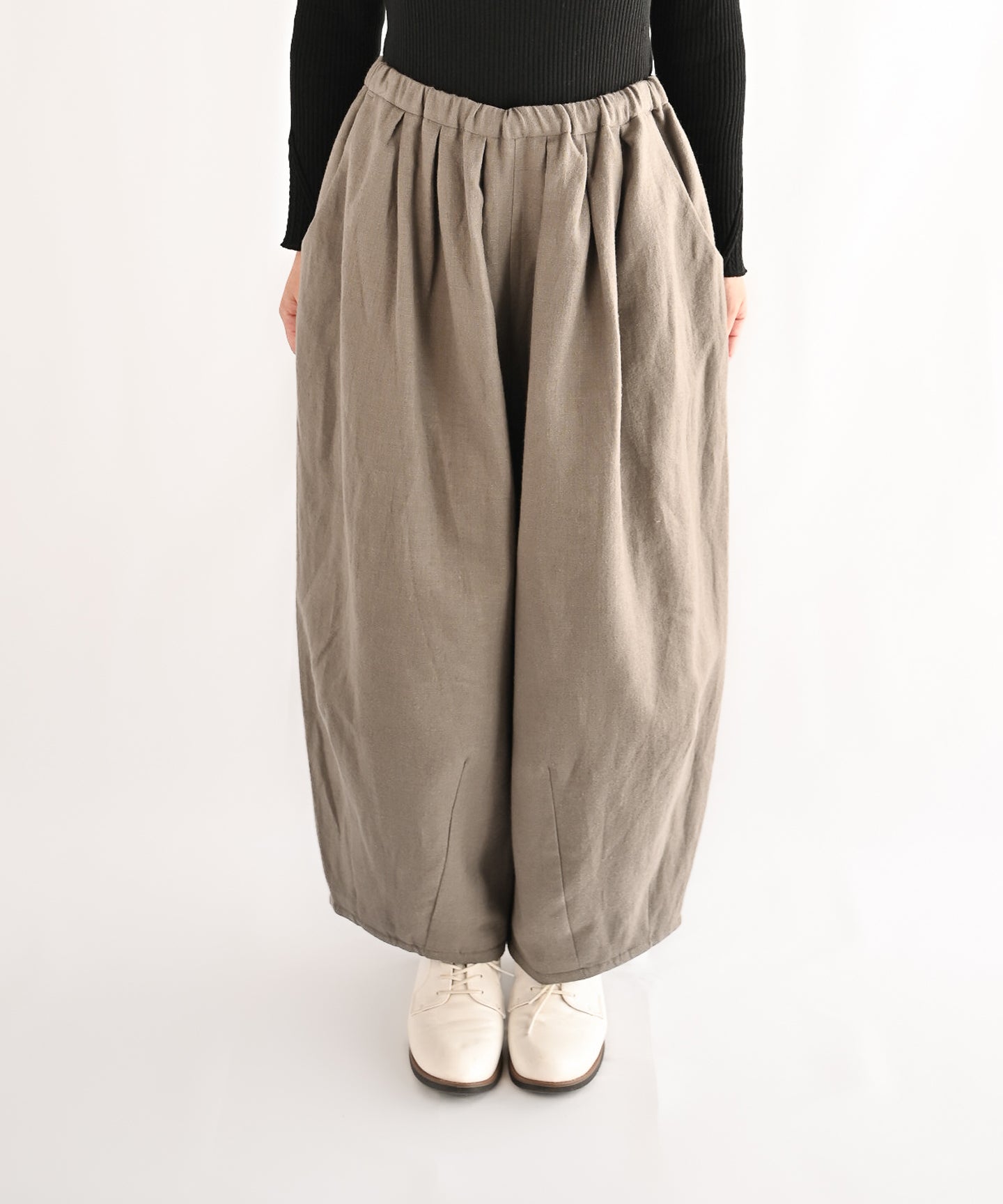 リネンウール裾タックパンツ (mug310 グレー/ベージュ)