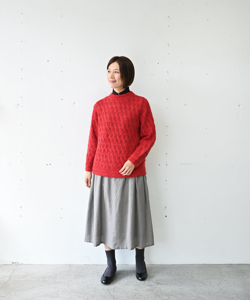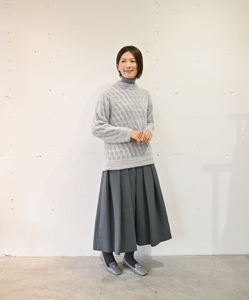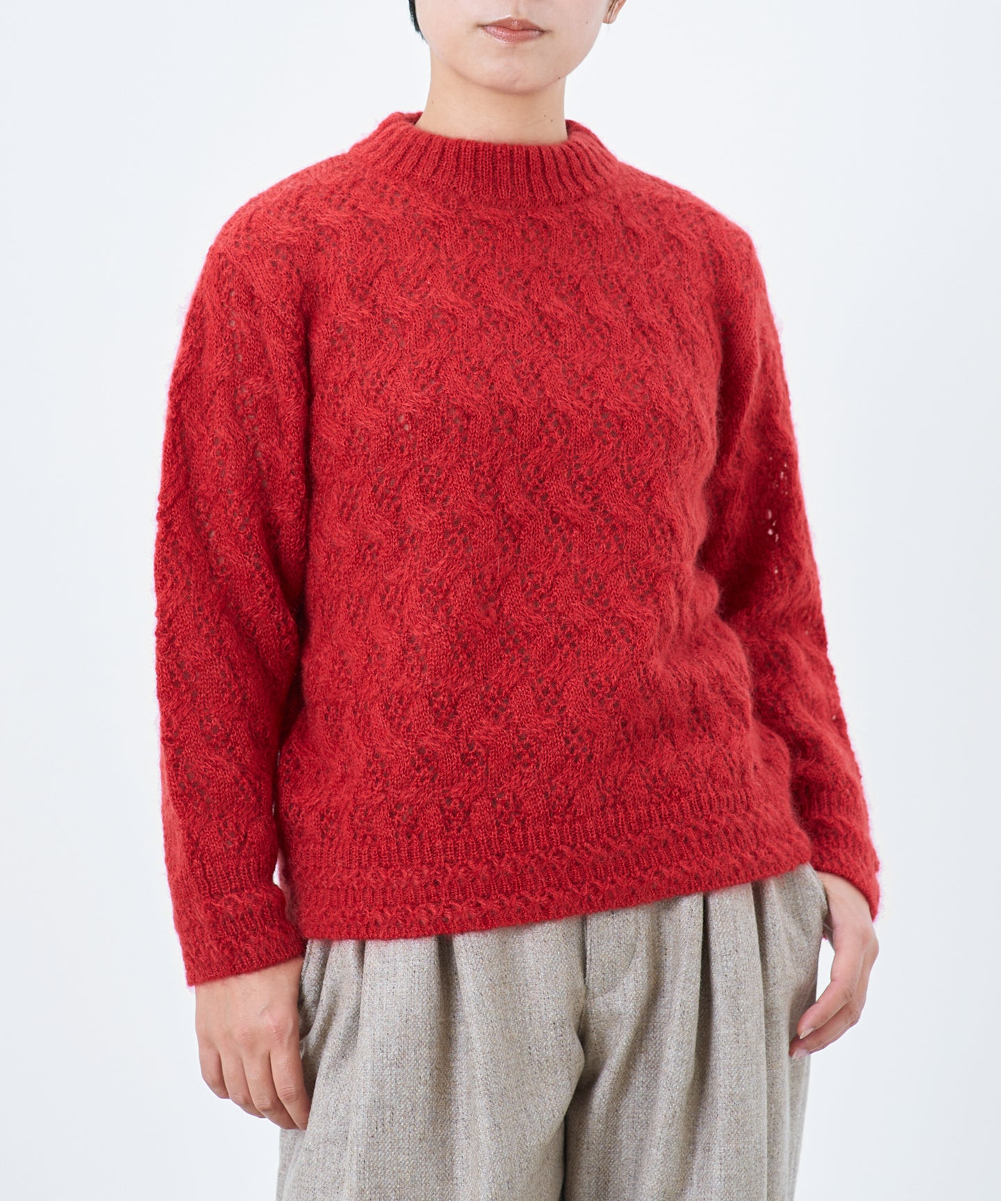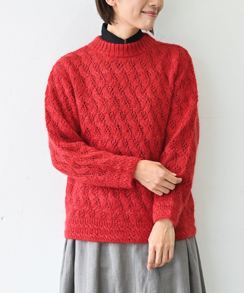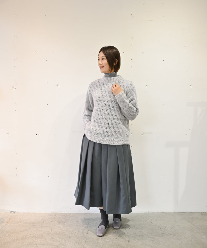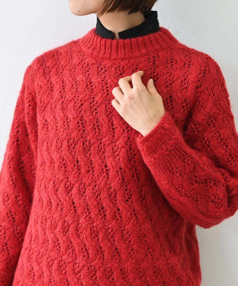 〈高品質シルク&アンゴラ山羊モヘヤ〉模様編み ボトルネックセーター (mug915)