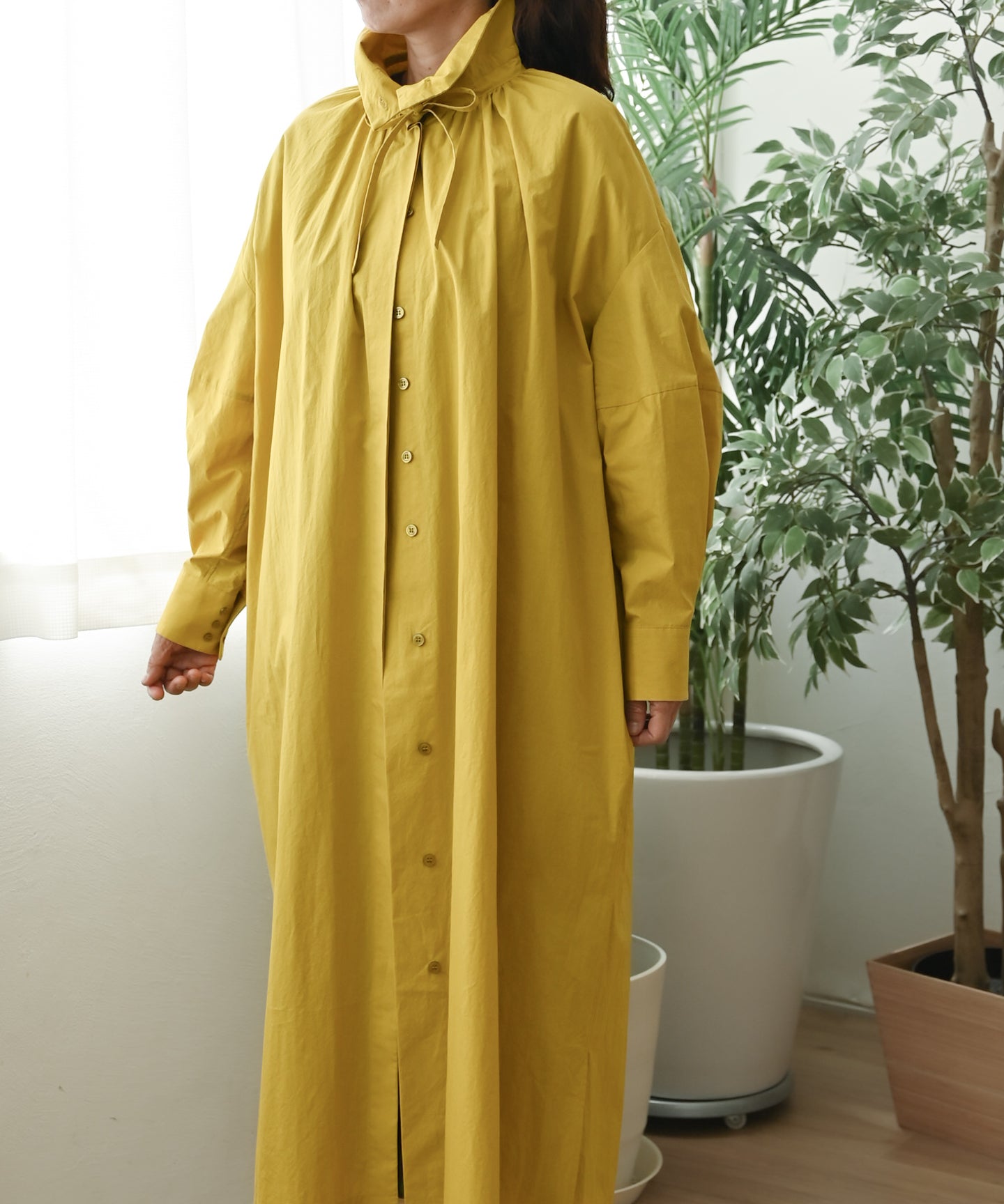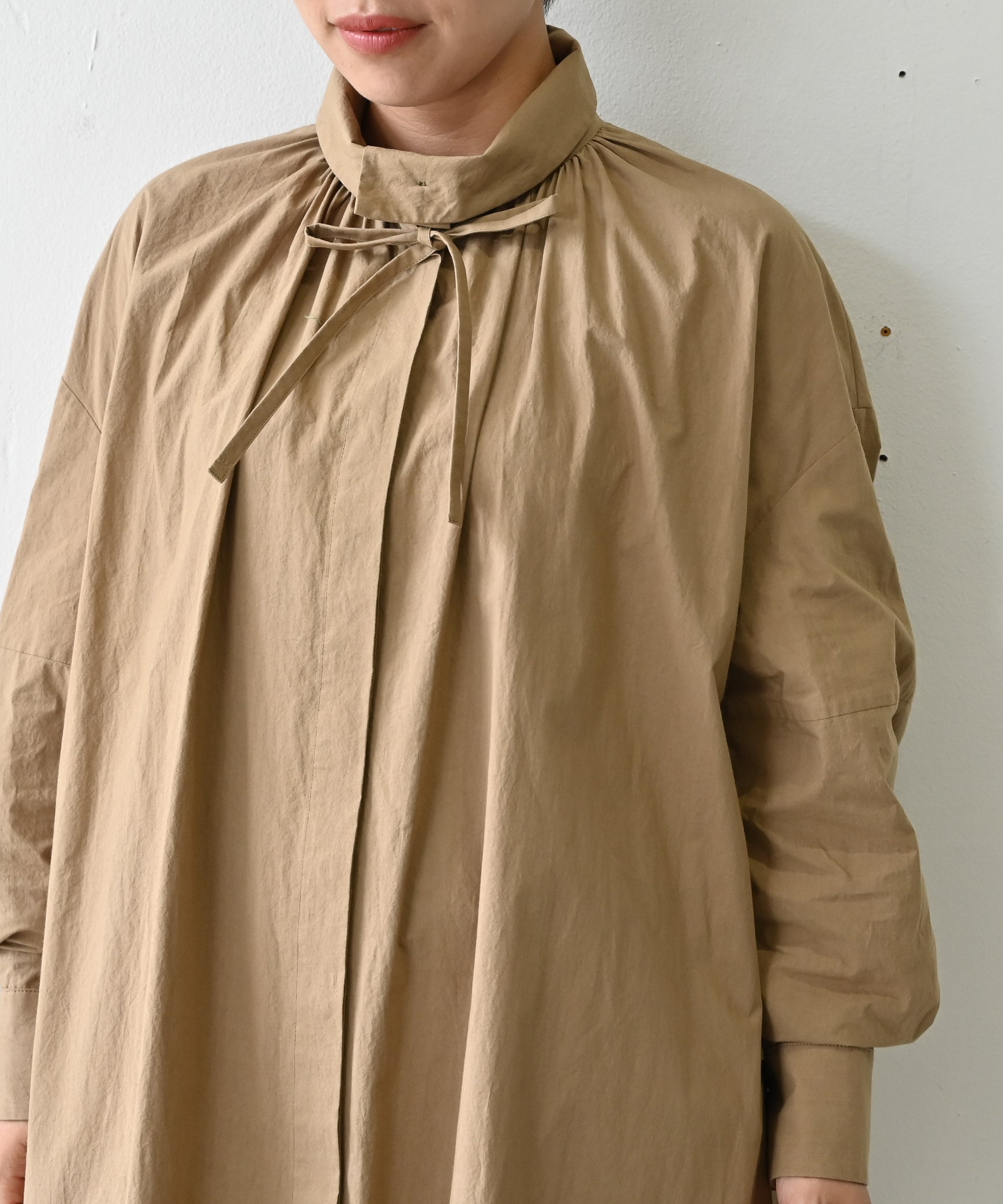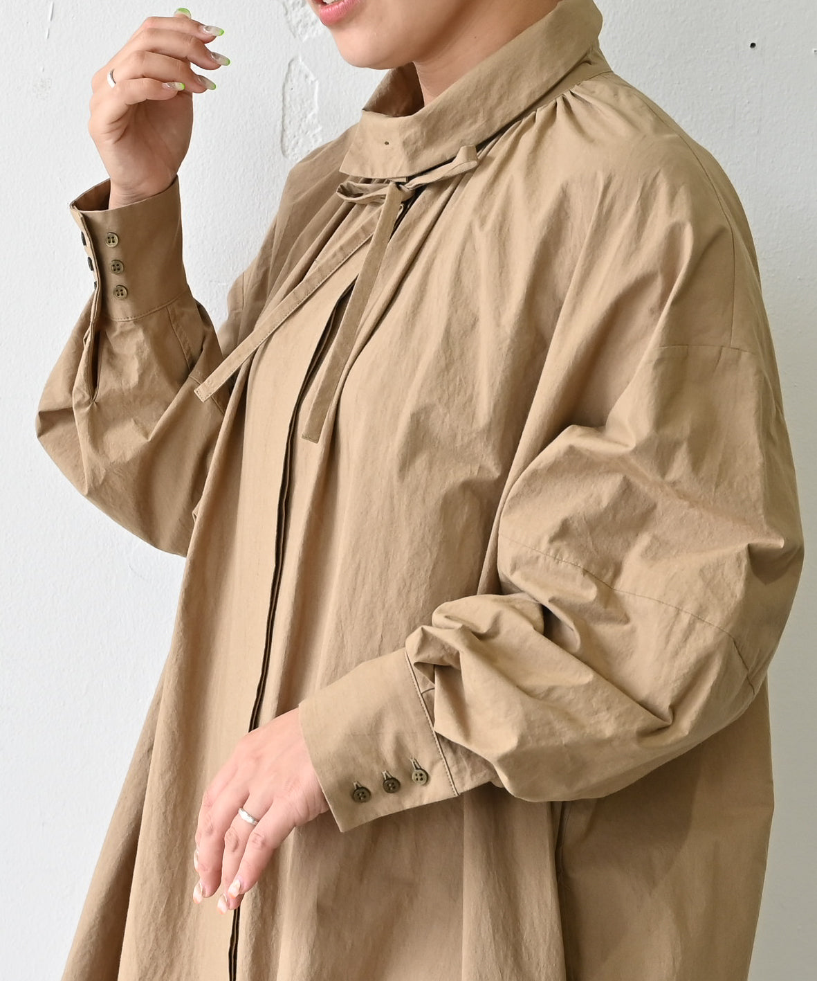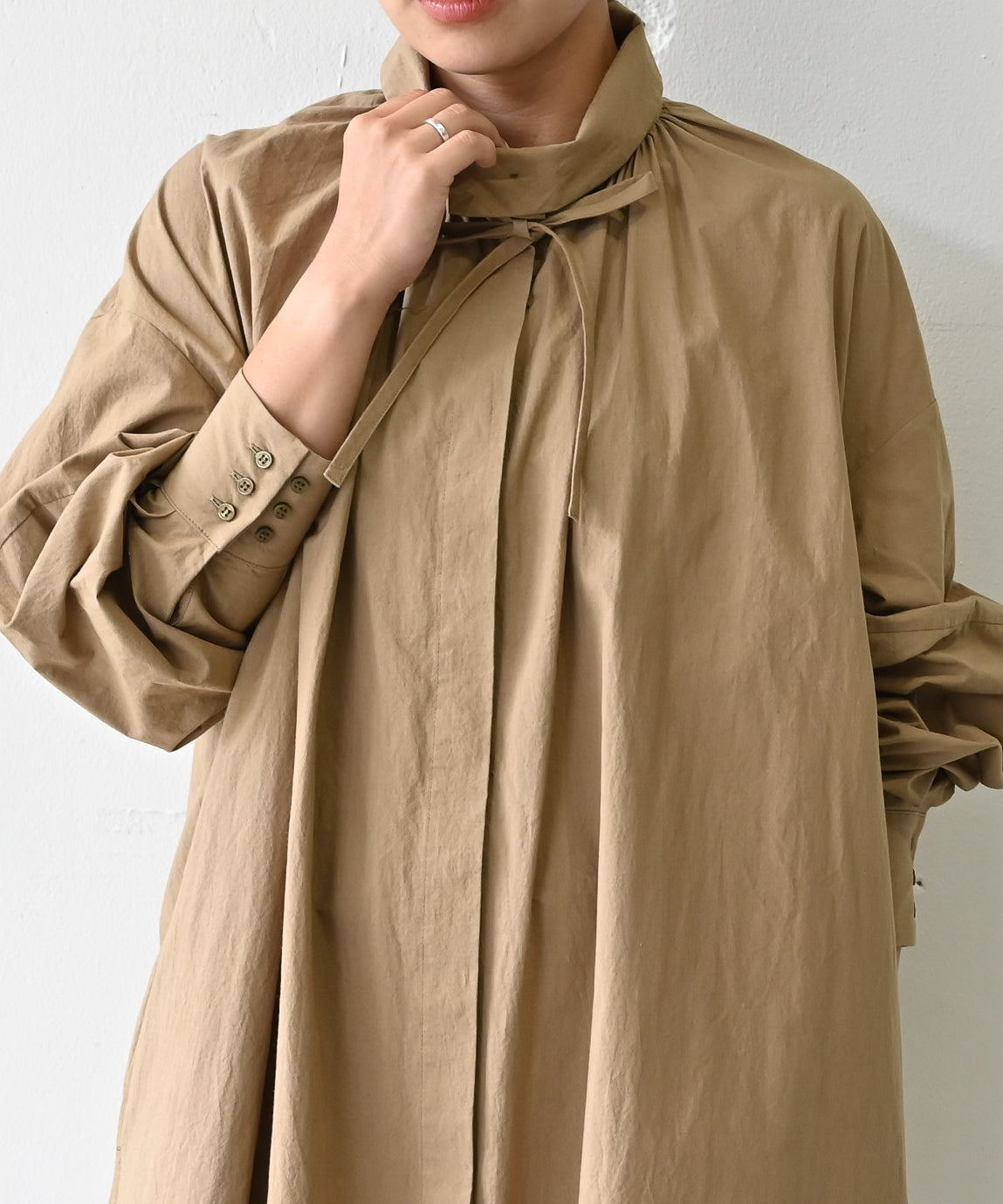 〈多彩な着方が叶う〉〈衿立て&衿折り〉〈遠州織物〉リボン紐付き多様衿 シャツ ワンピース (mug605)