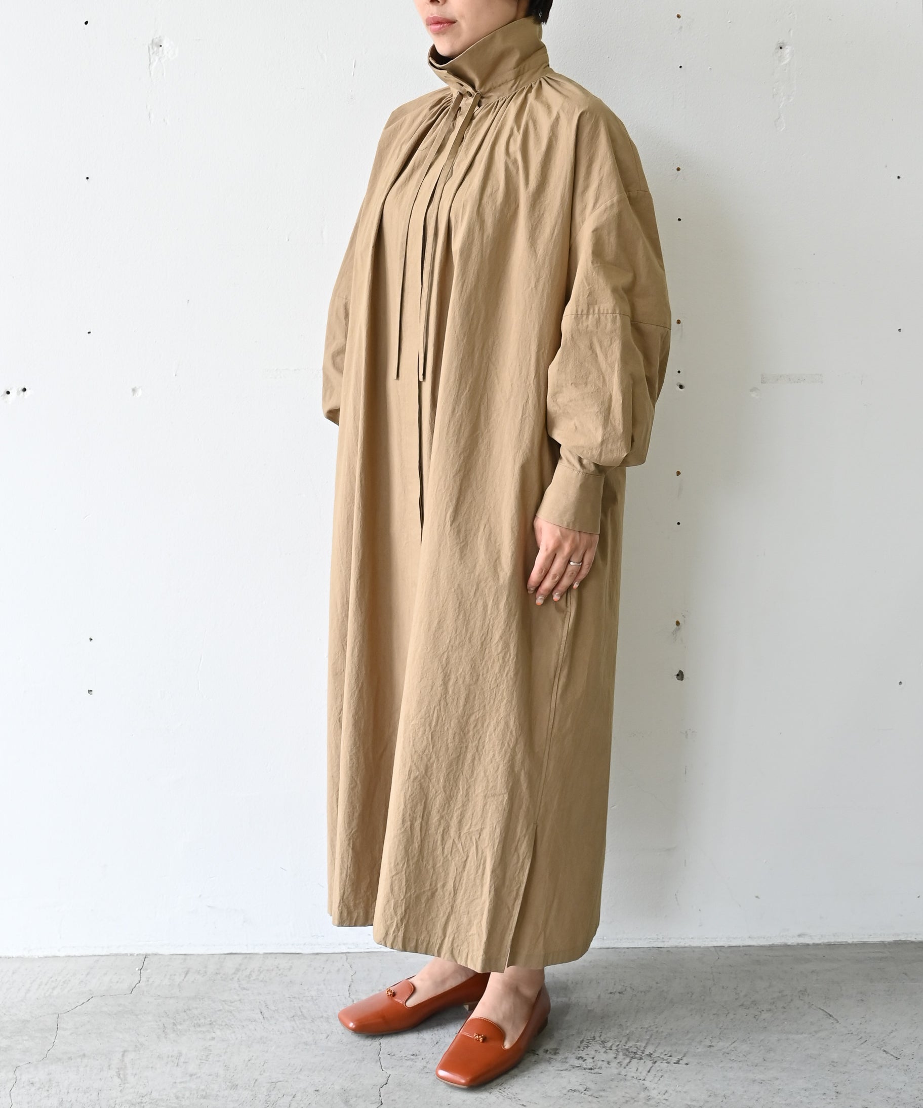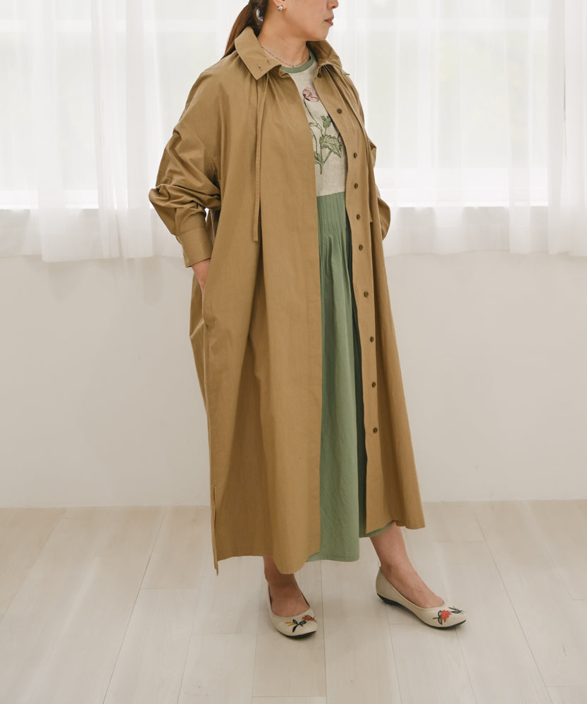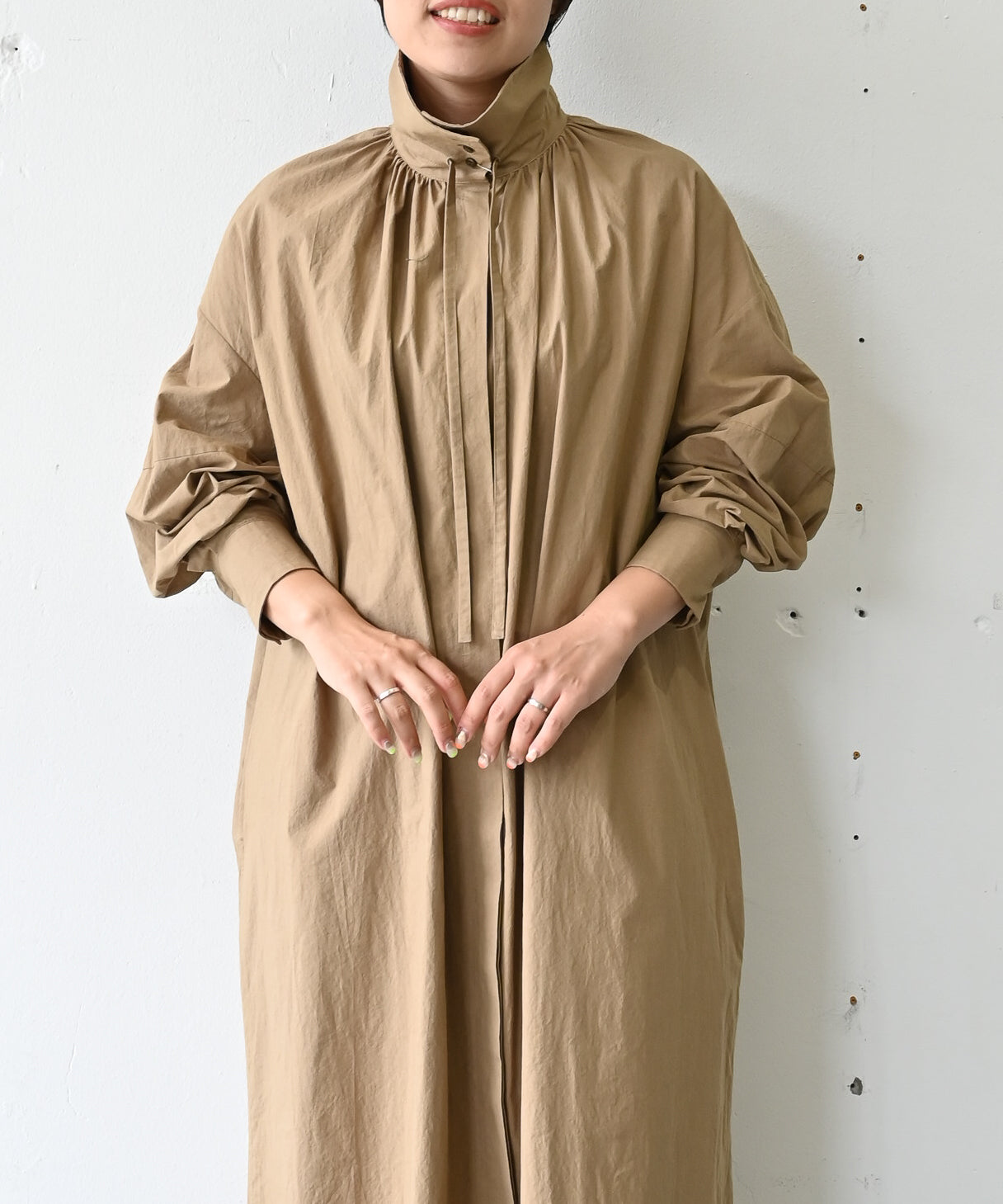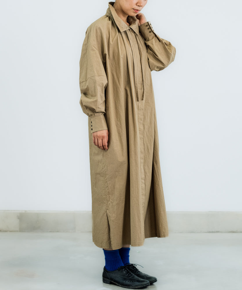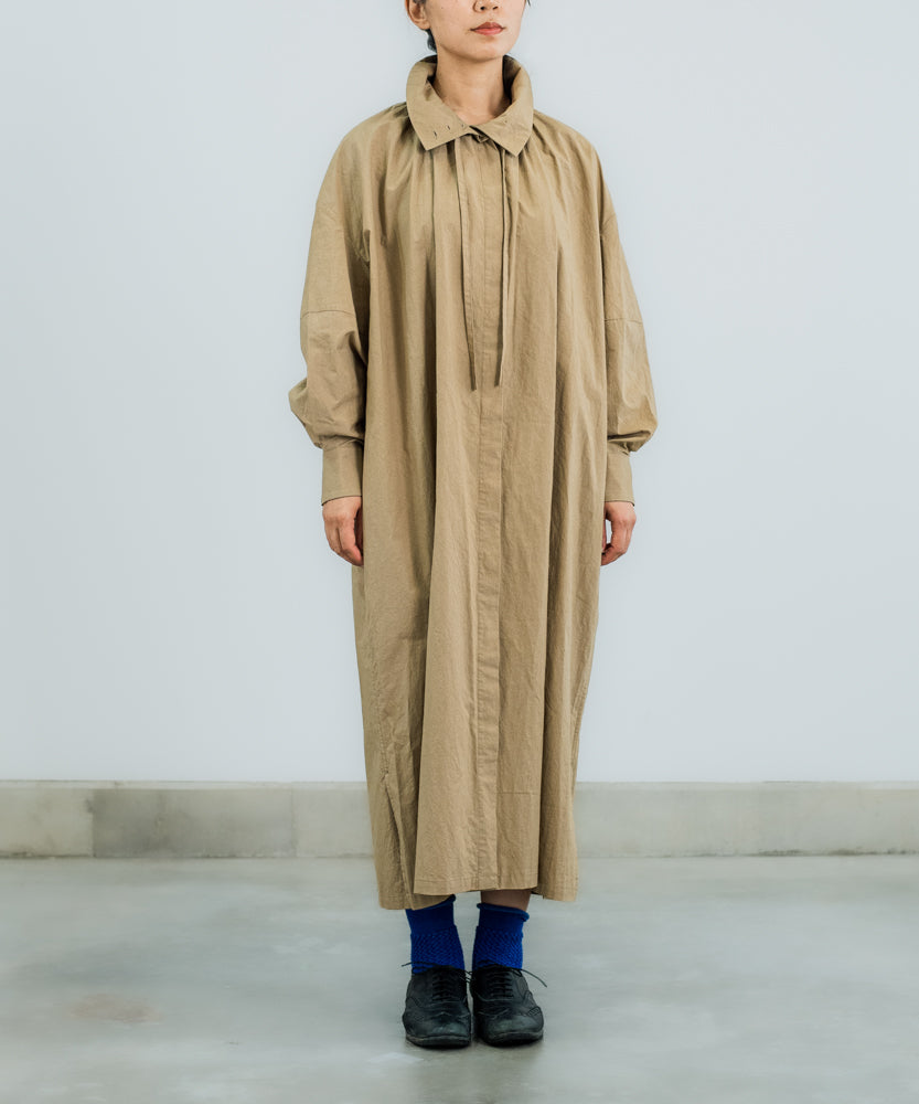 〈多彩な着方が叶う〉〈衿立て&衿折り〉〈遠州織物〉リボン紐付き多様衿 シャツ ワンピース (mug605)