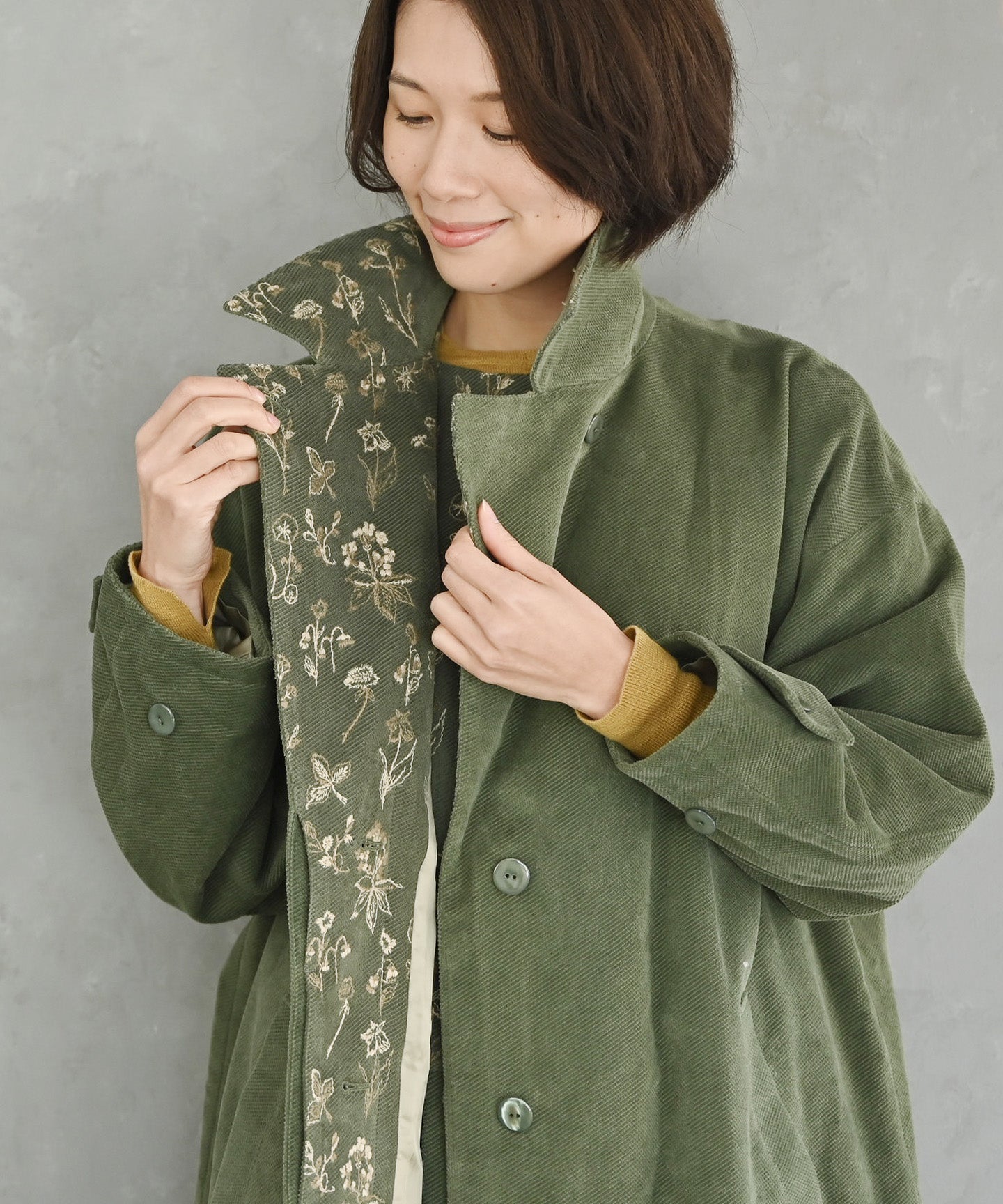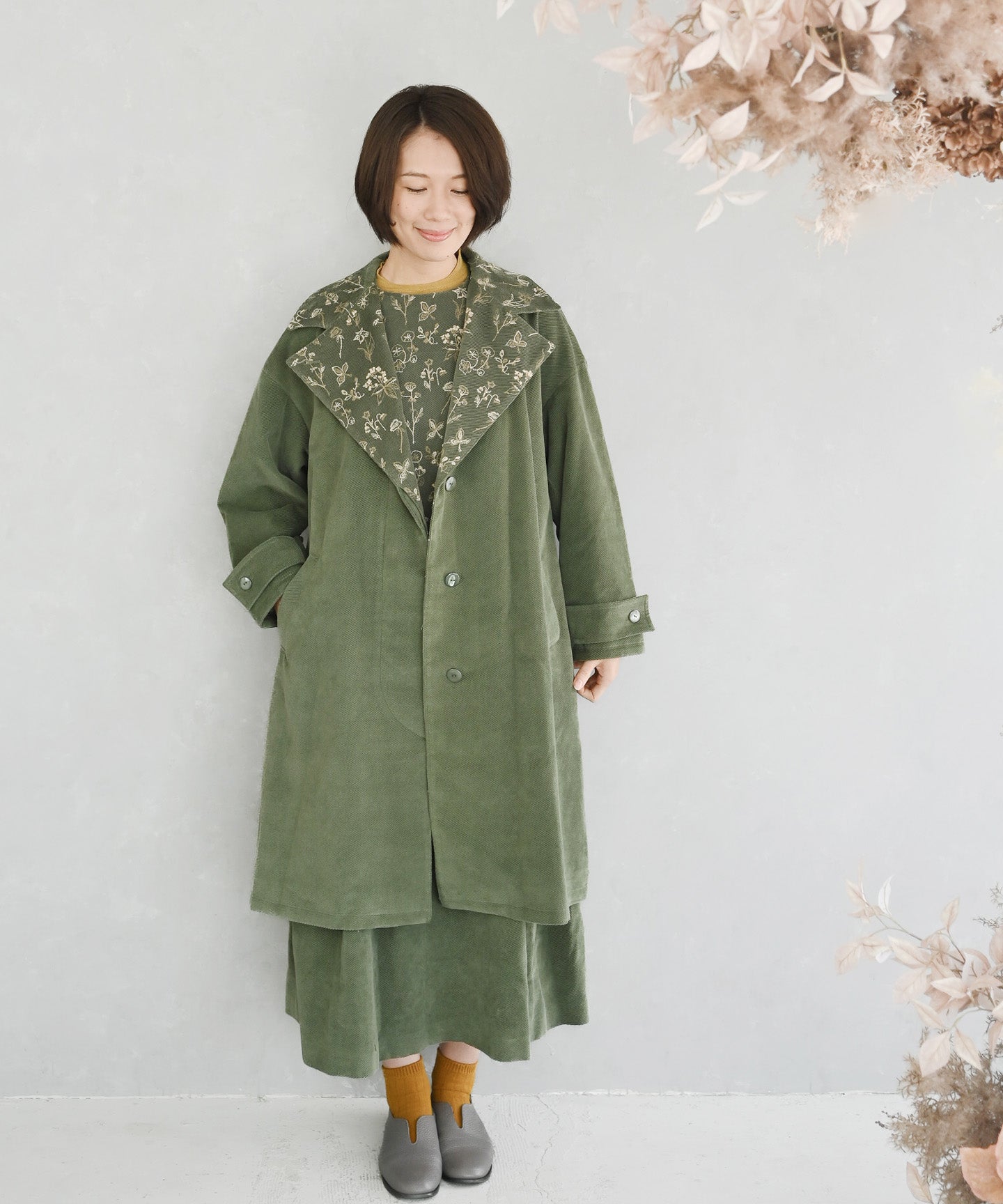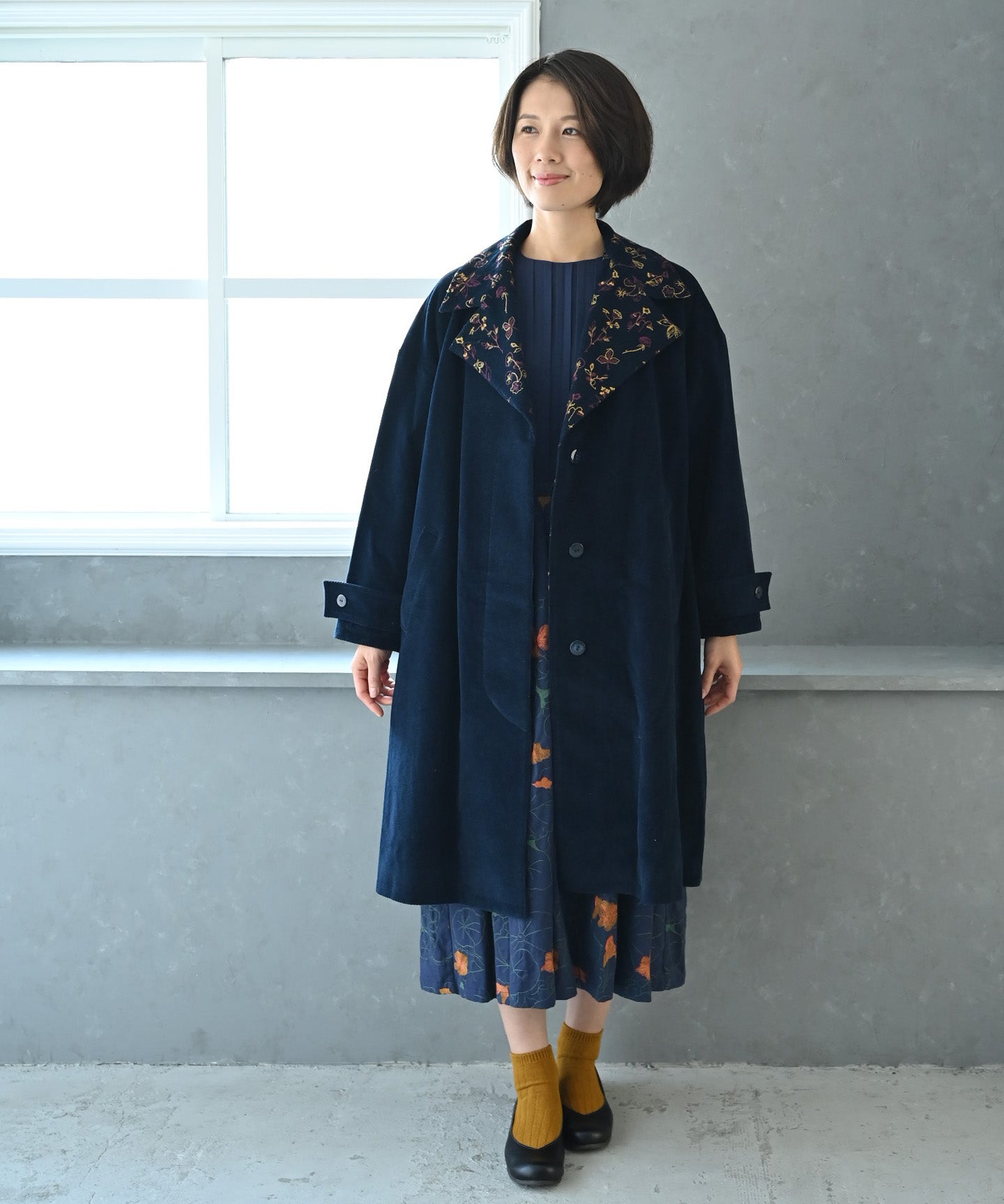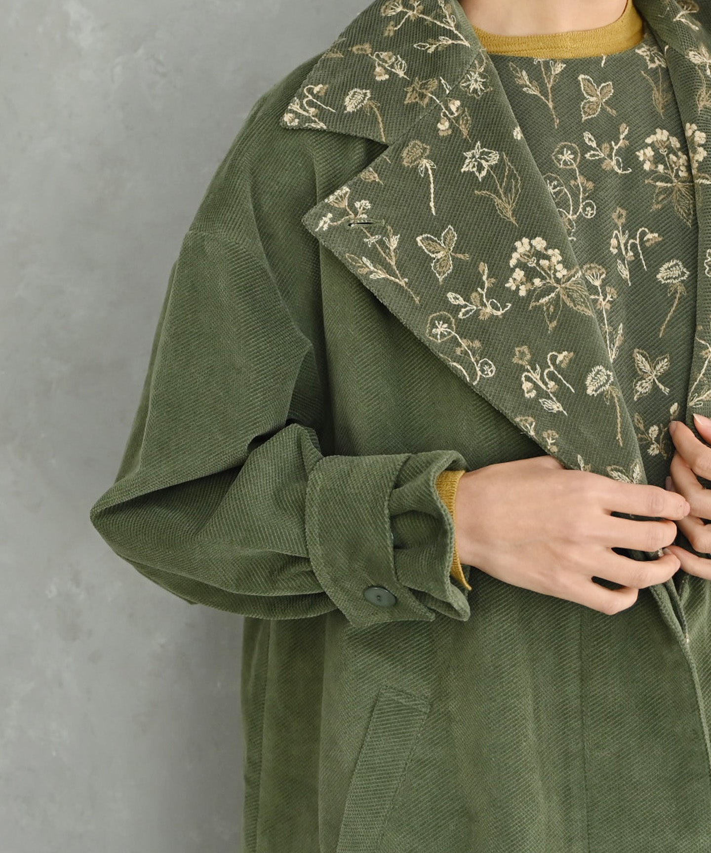 〈遠州織物 コットンコーデュロイ〉花刺繍コート(セットアップ可能) (mug504)