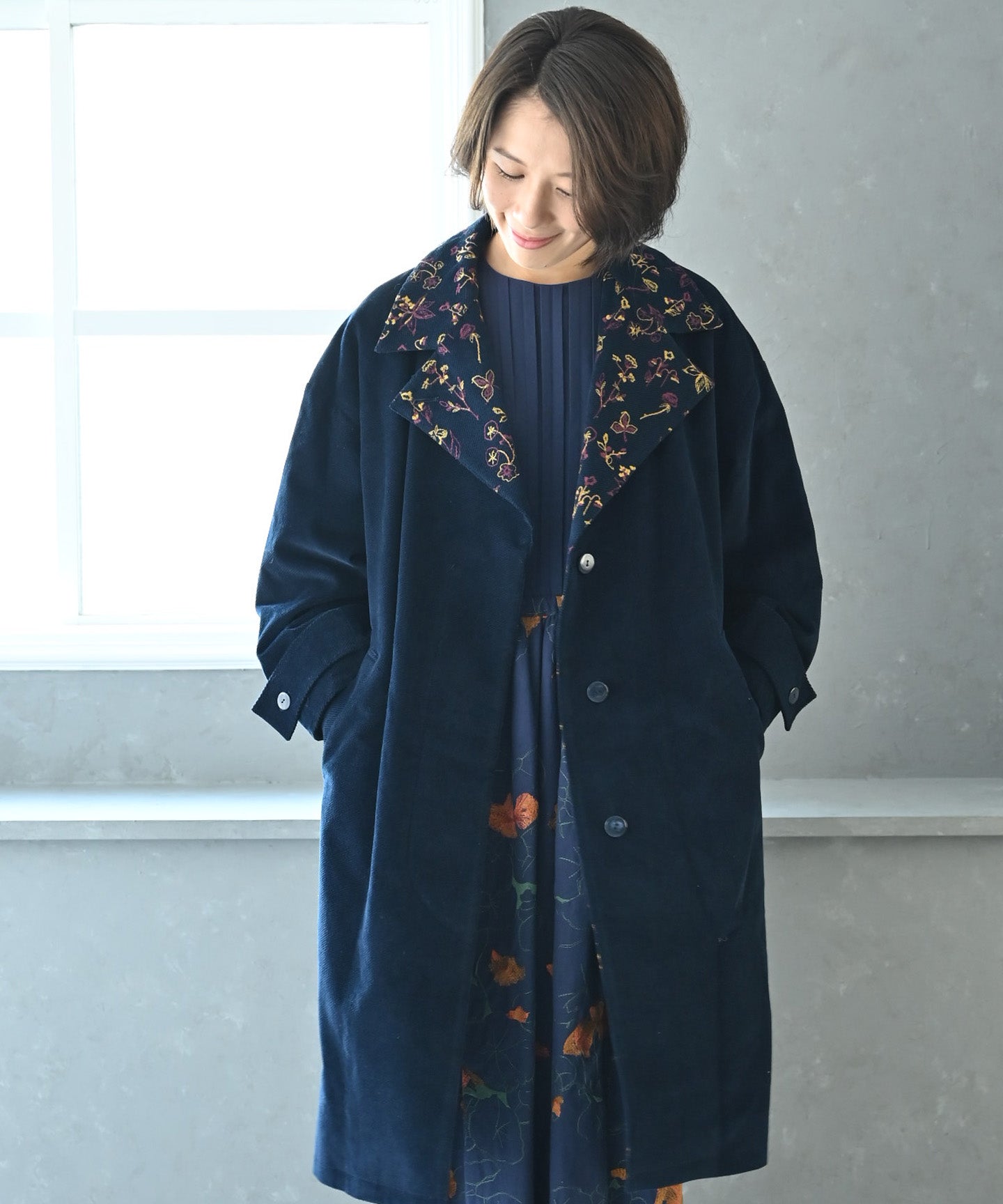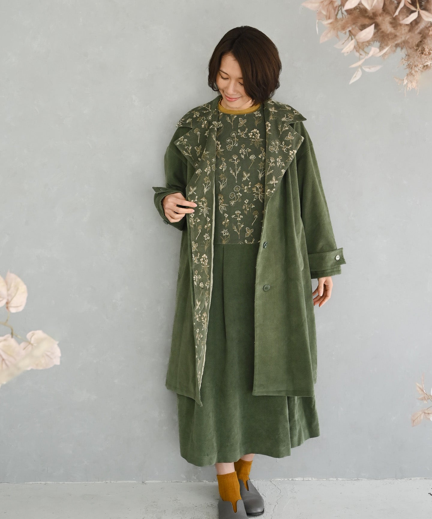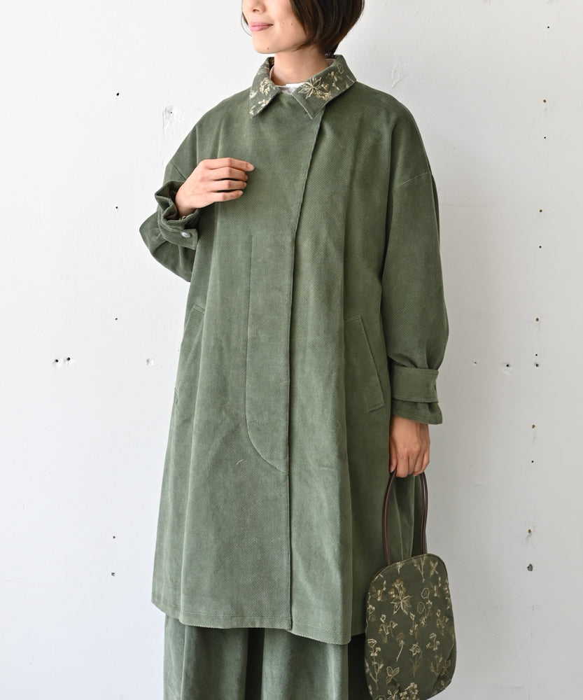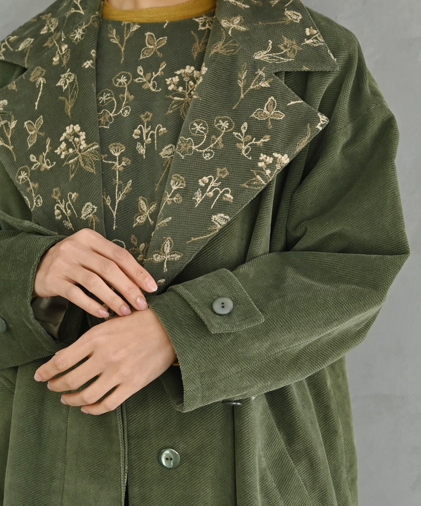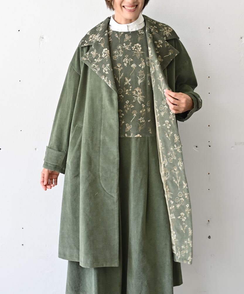 〈遠州織物 コットンコーデュロイ〉花刺繍コート(セットアップ可能) (mug504)
