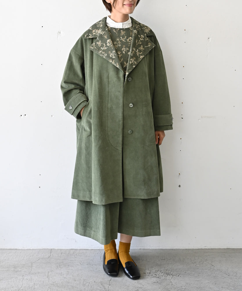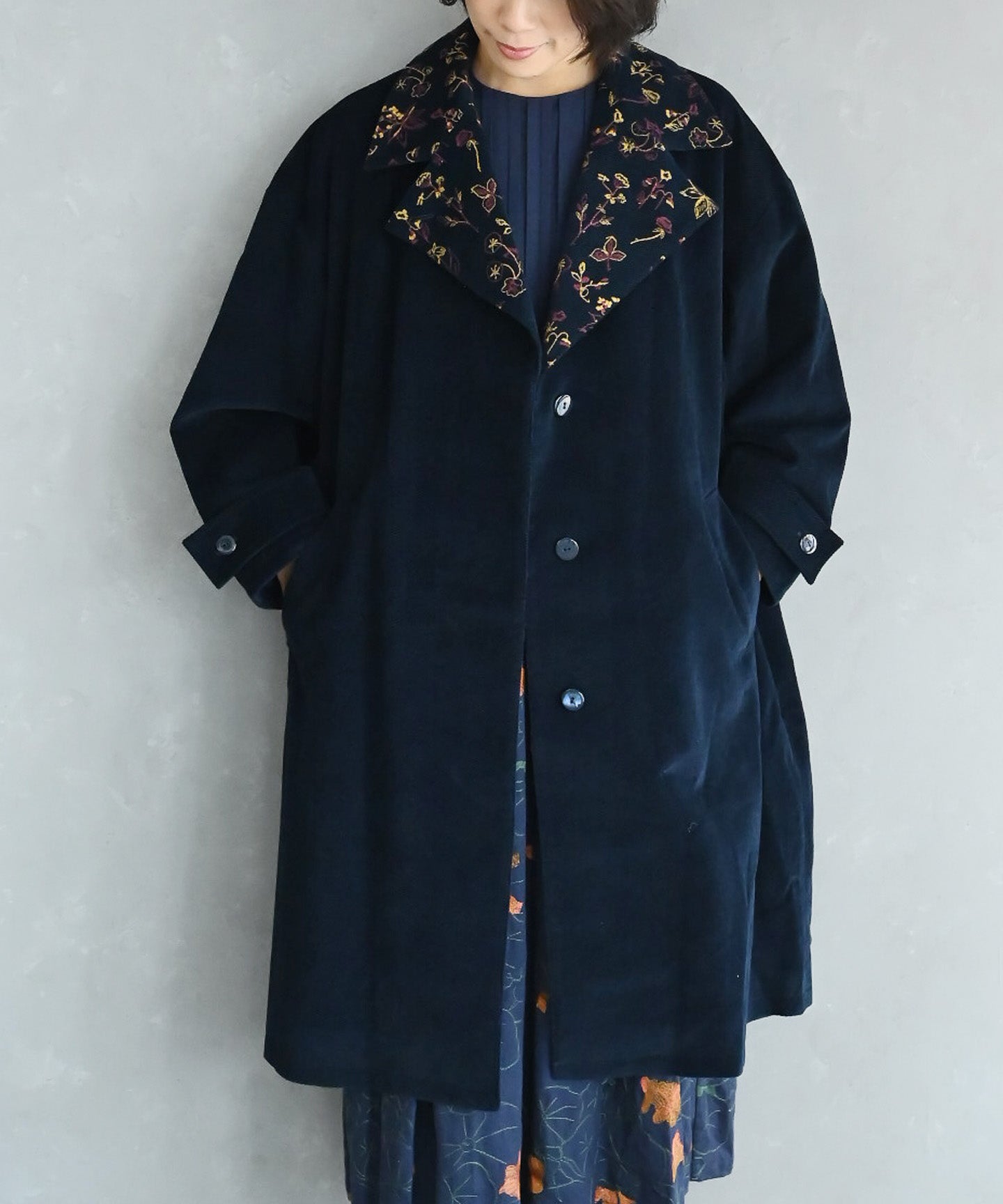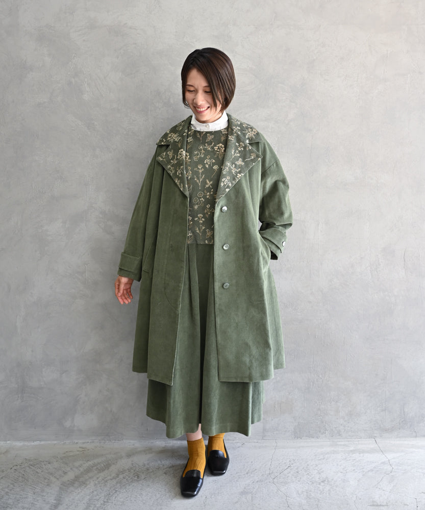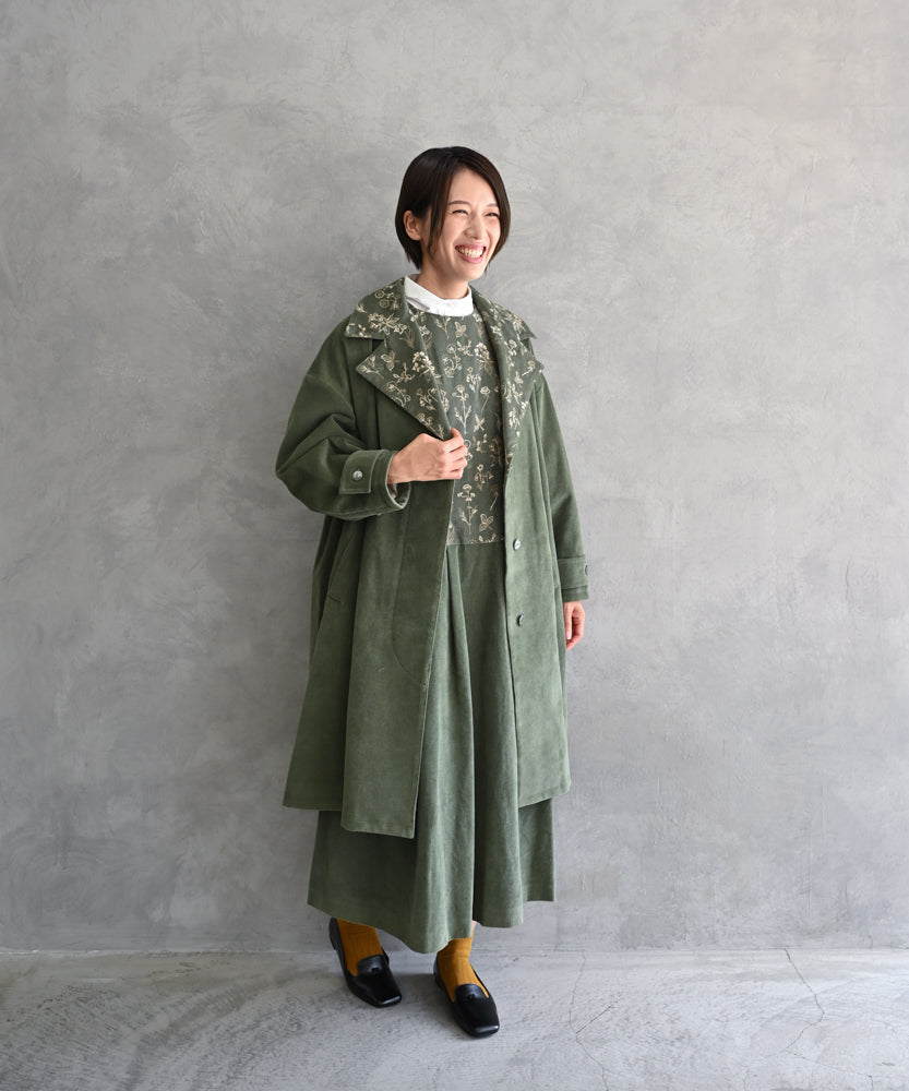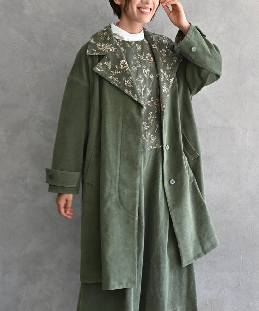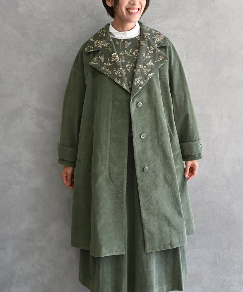 〈遠州織物 コットンコーデュロイ〉花刺繍コート(セットアップ可能) (mug504)