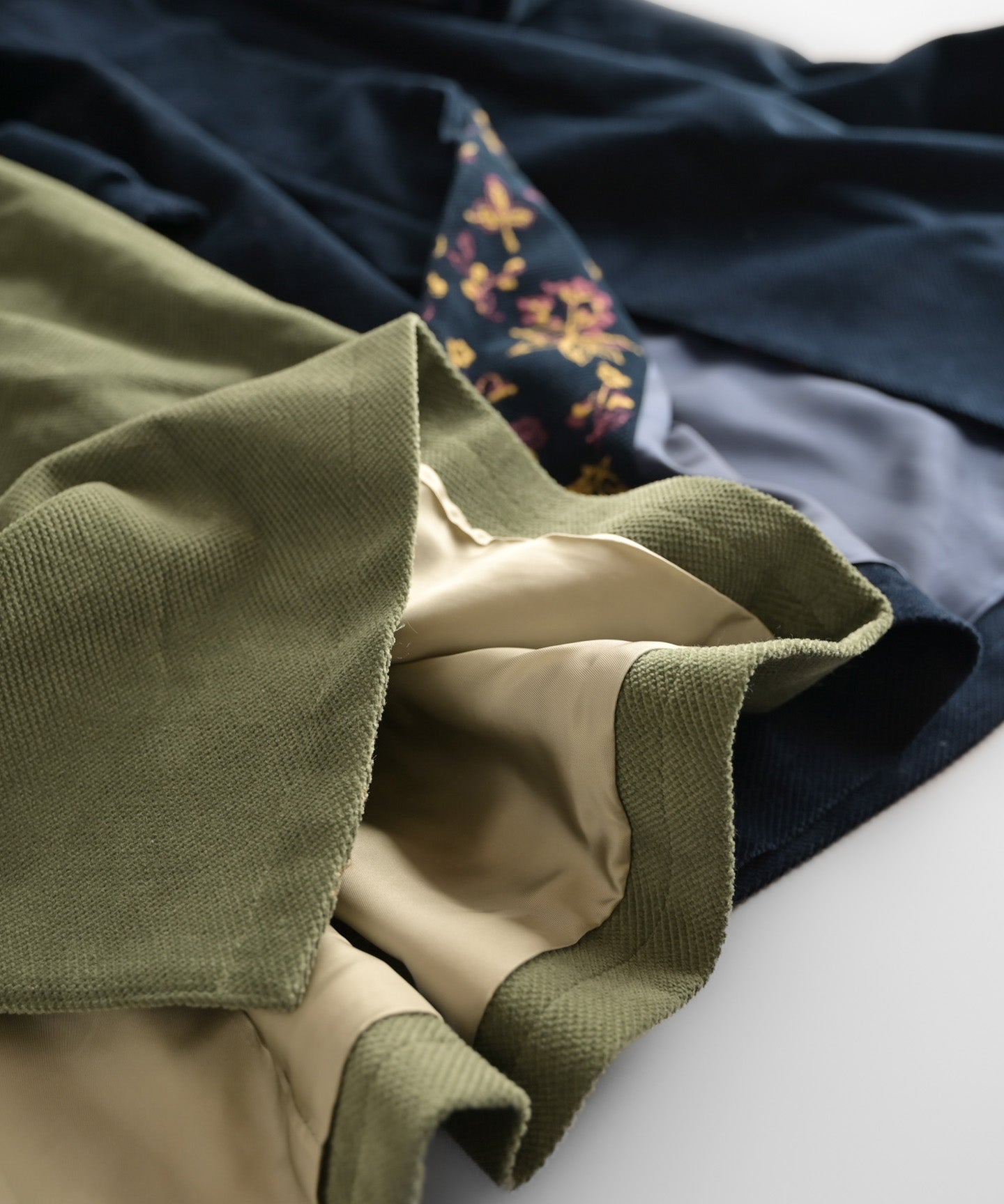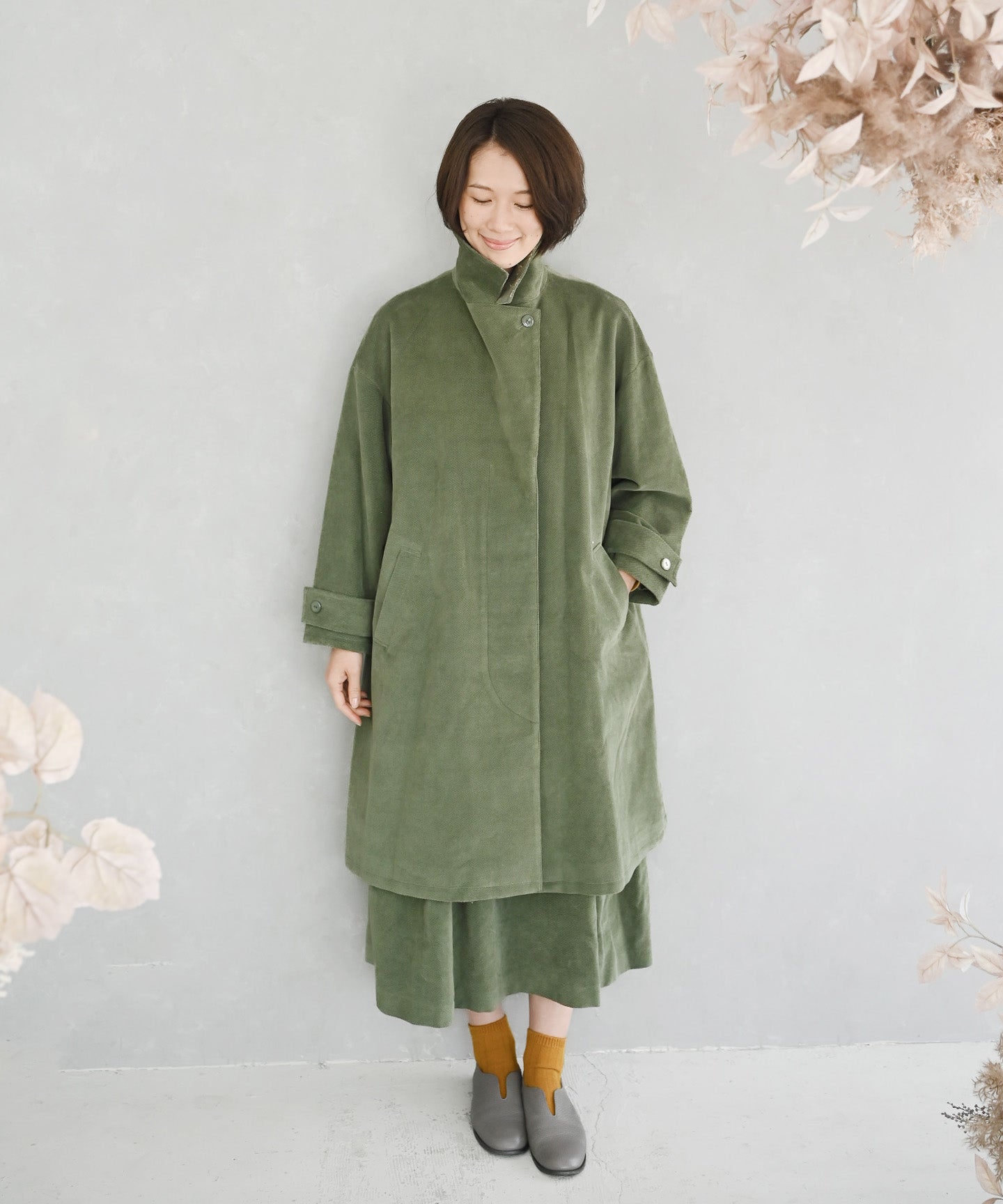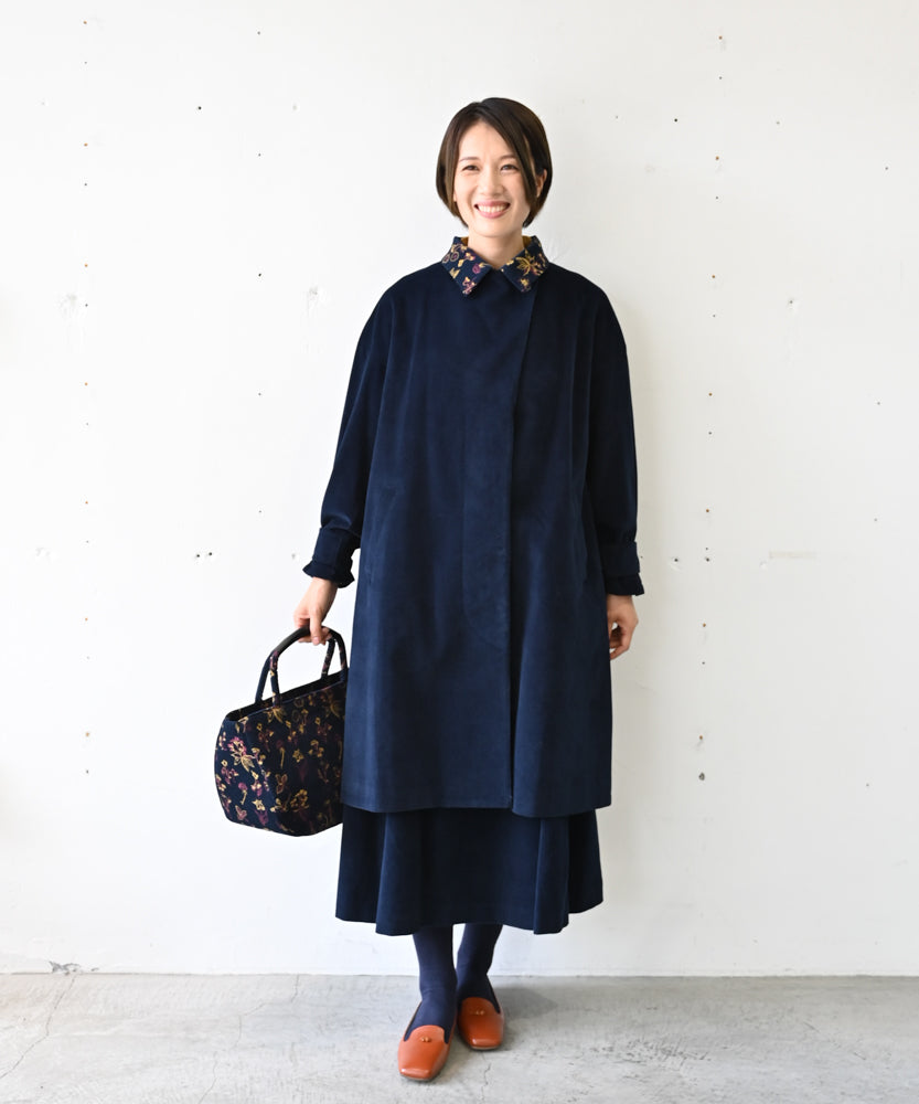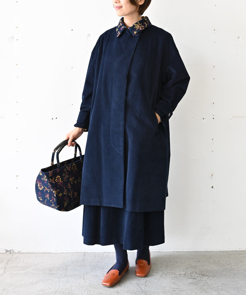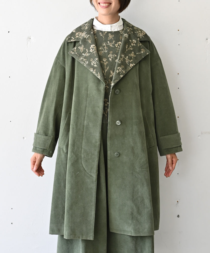 〈遠州織物 コットンコーデュロイ〉花刺繍コート(セットアップ可能) (mug504)