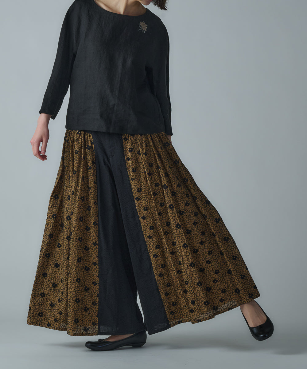 ハイドランジア刺繍の切り替えパンツ (mul319)