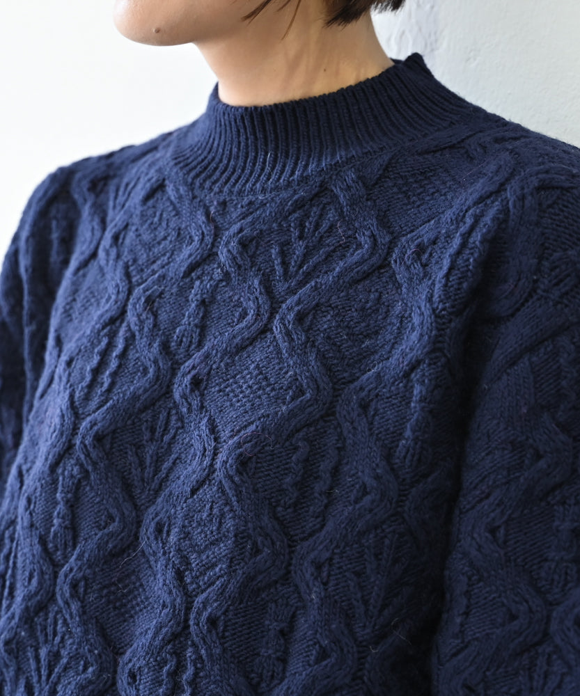 ふっくらと暖かく軽い糸のケーブル編みニットです。