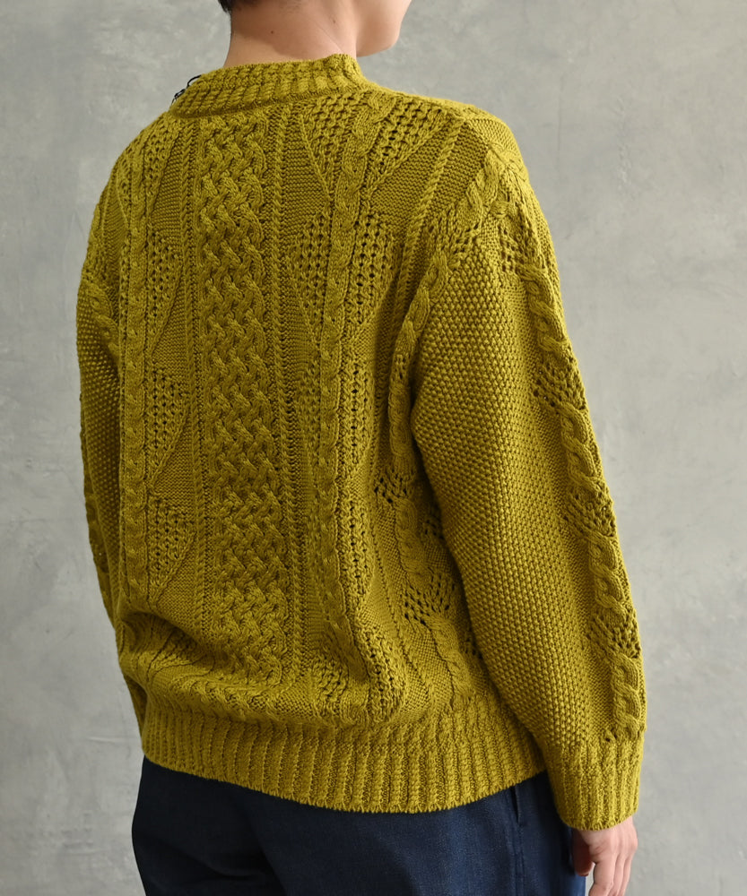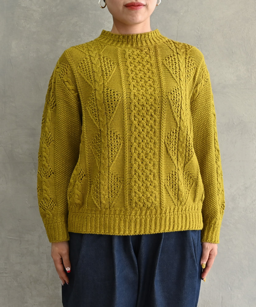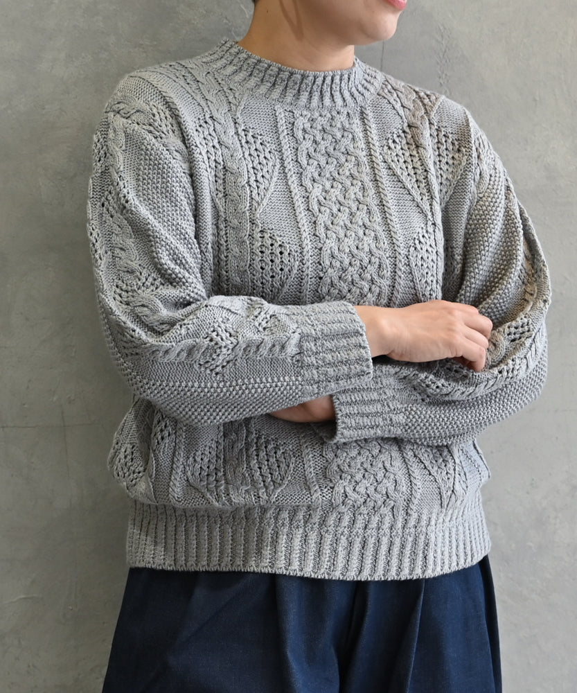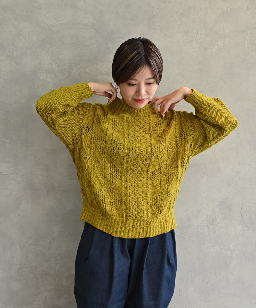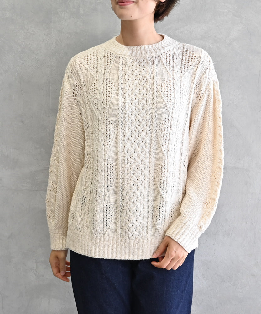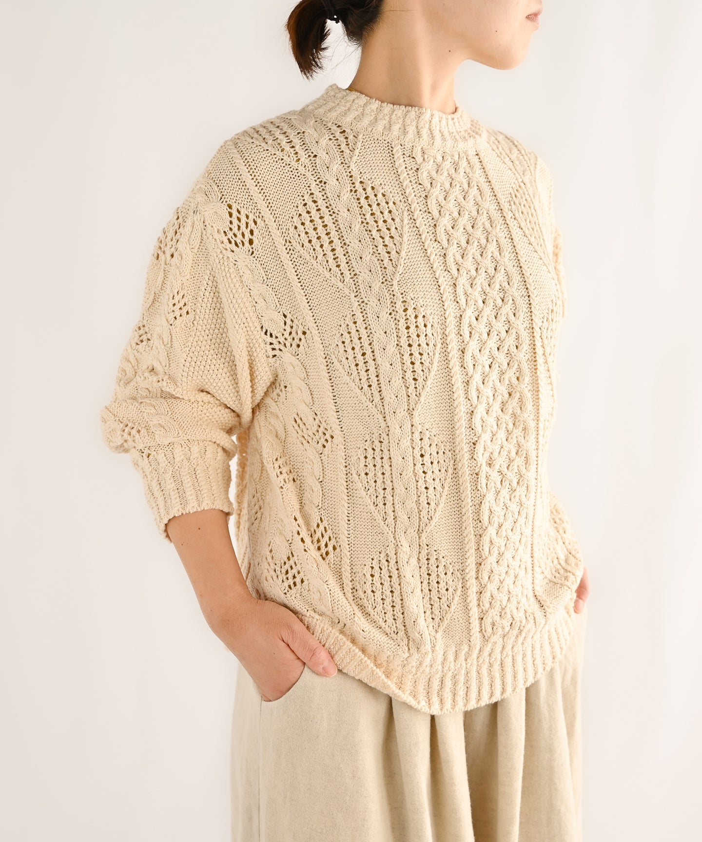 〈高品質スーピマ超長綿・オーガニックコットン〉アラン模様 ローゲージニットセーター (mub918)