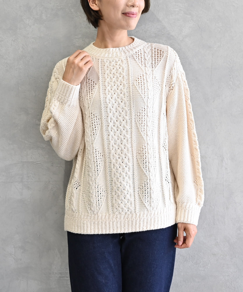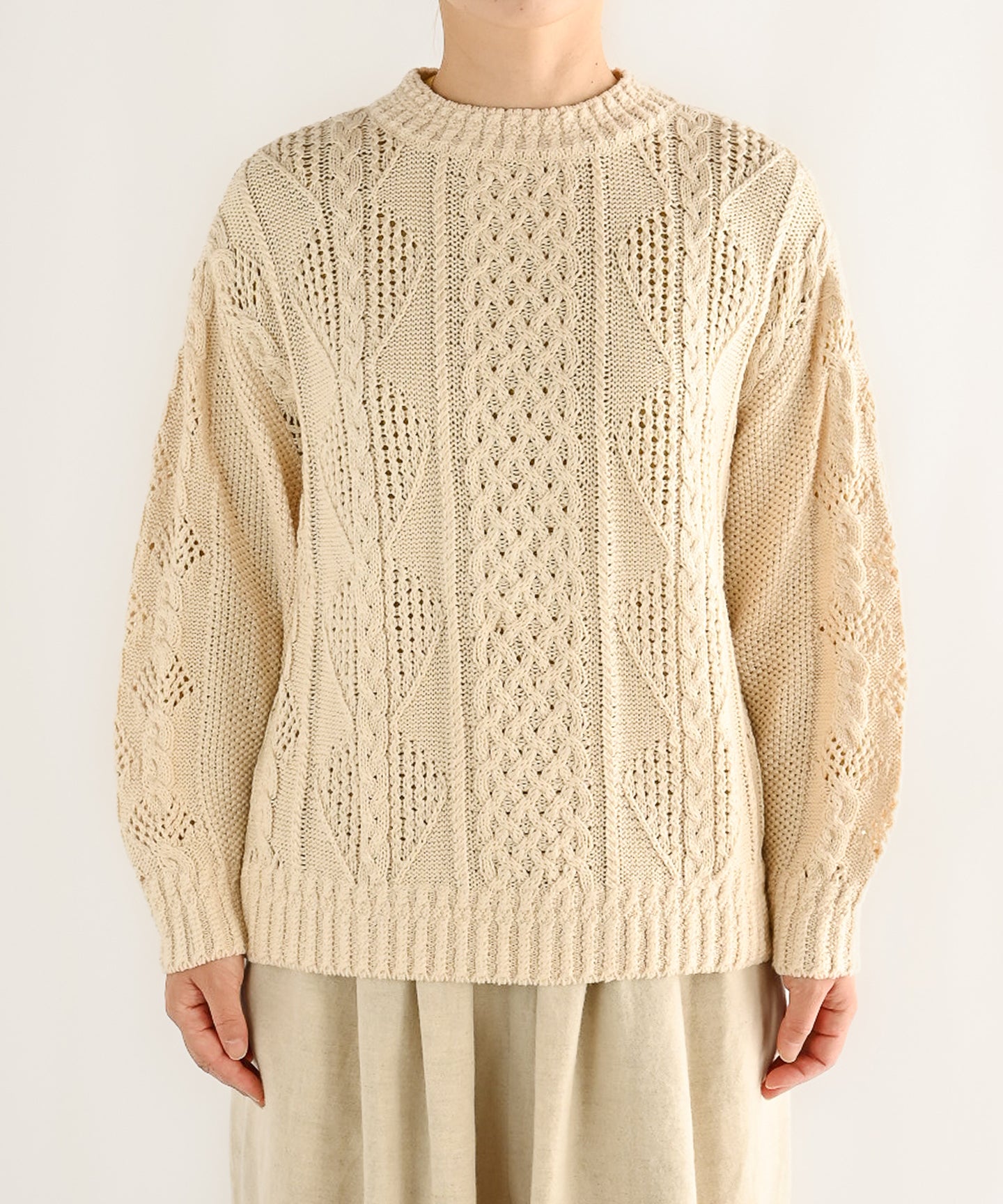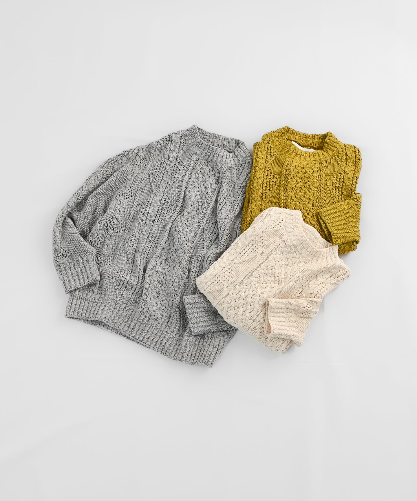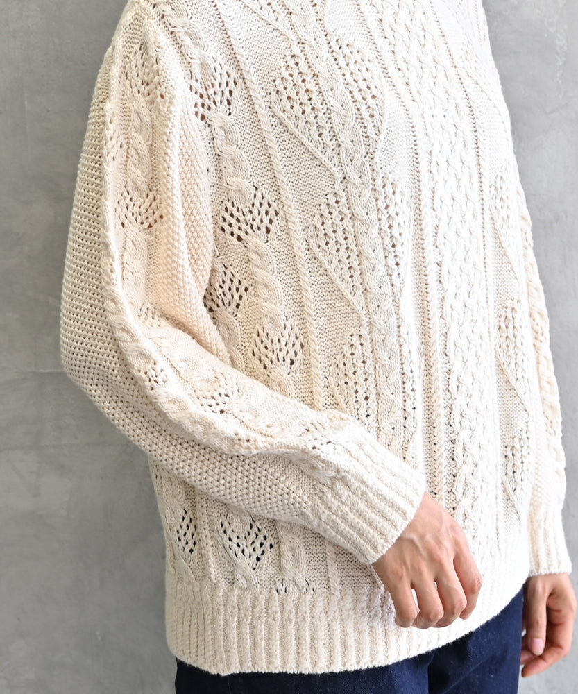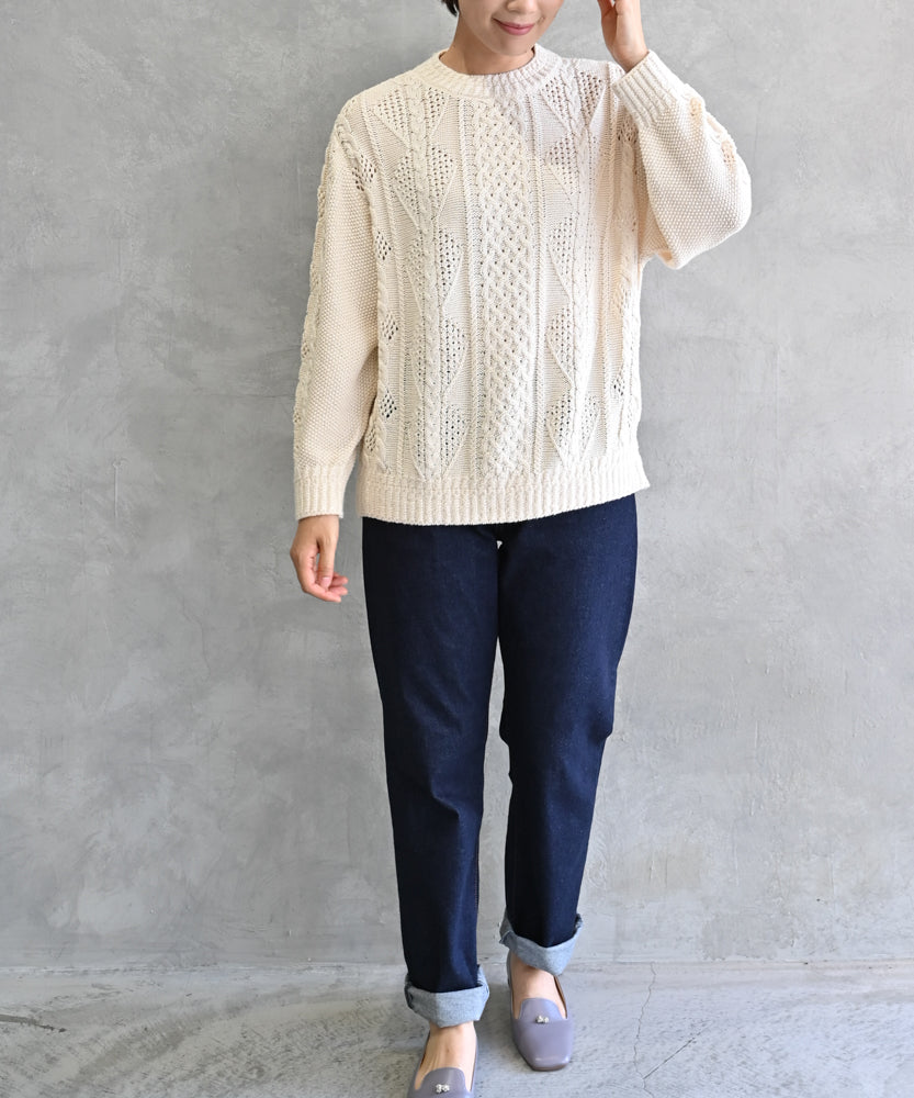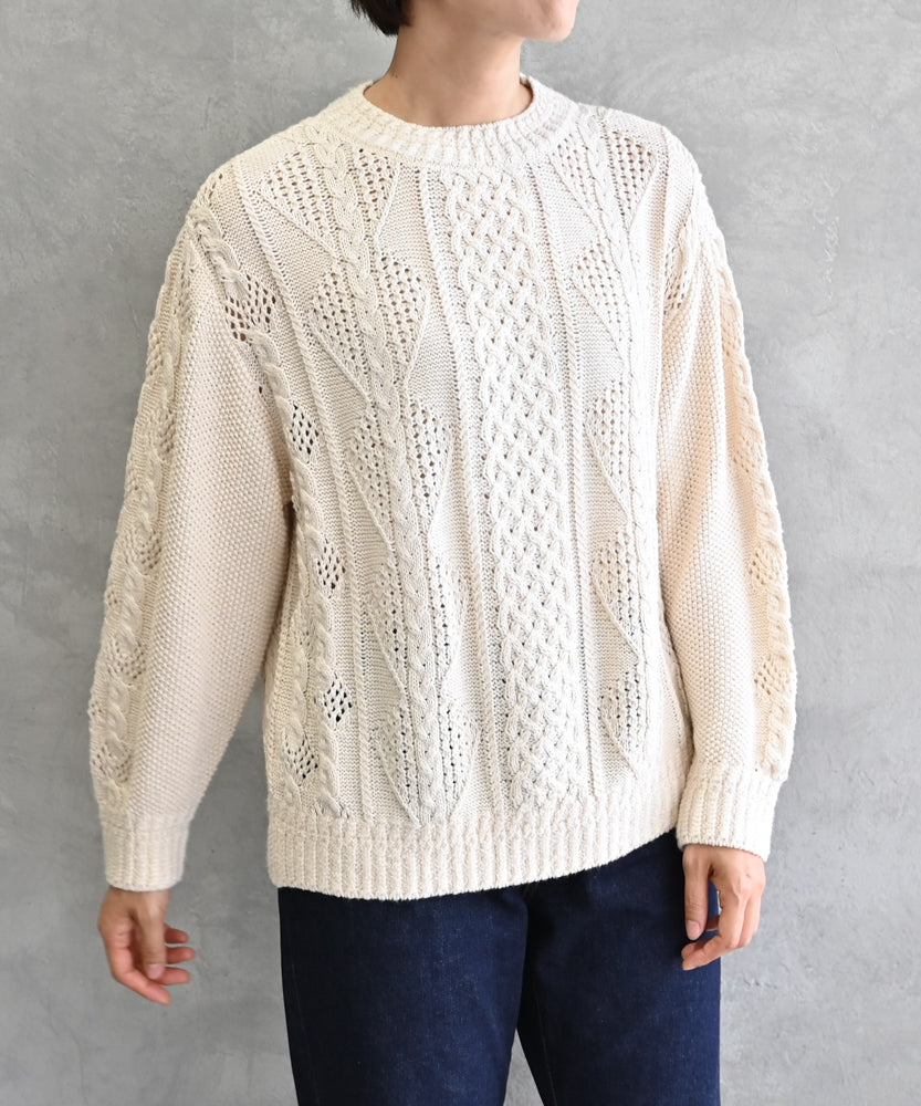 〈高品質スーピマ超長綿・オーガニックコットン〉アラン模様 ローゲージニットセーター (mub918)