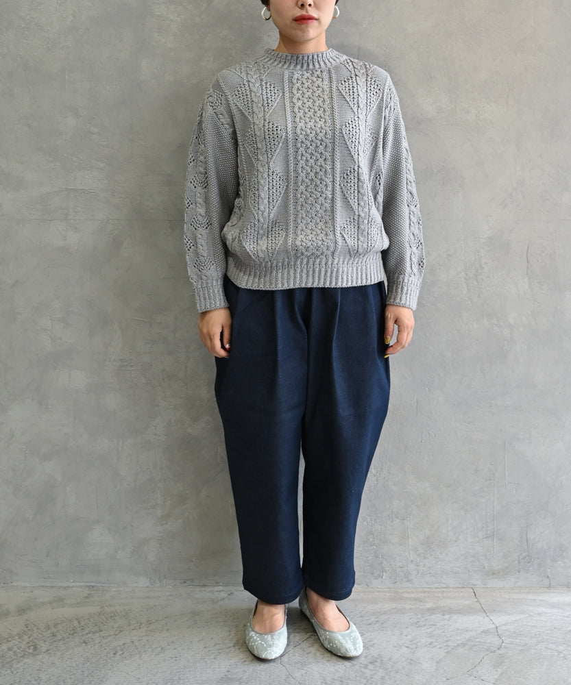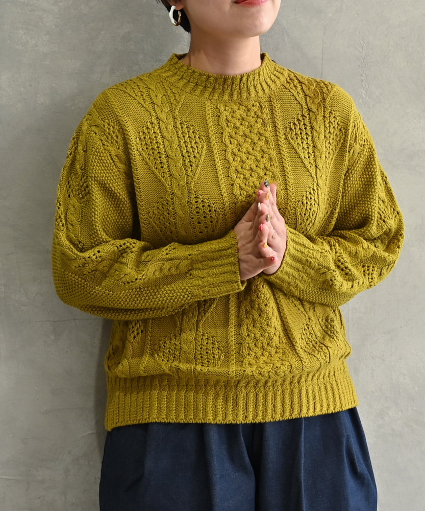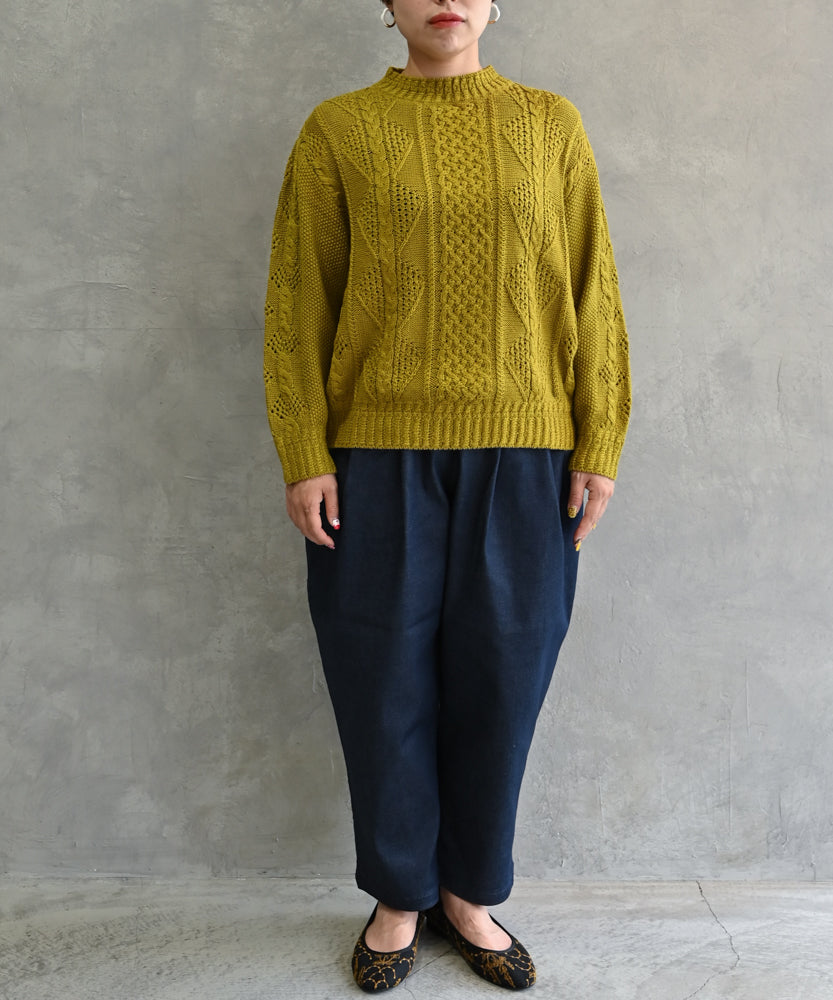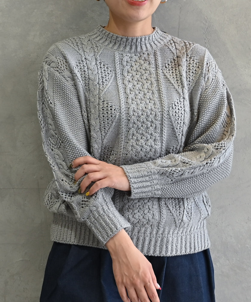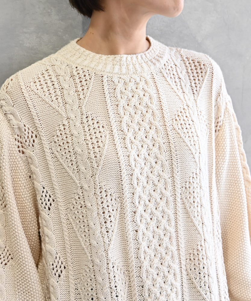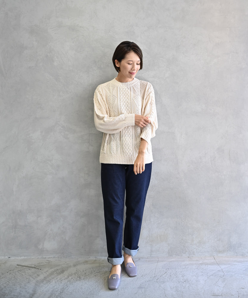 〈高品質スーピマ超長綿・オーガニックコットン〉アラン模様 ローゲージニットセーター (mub918)