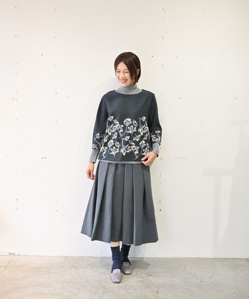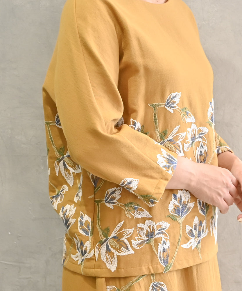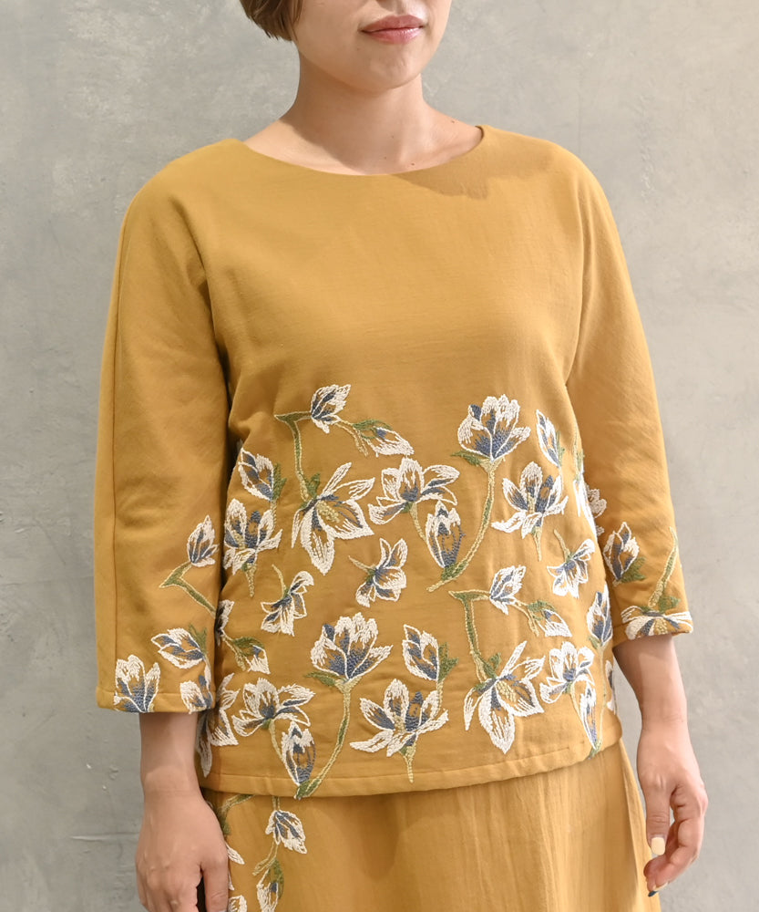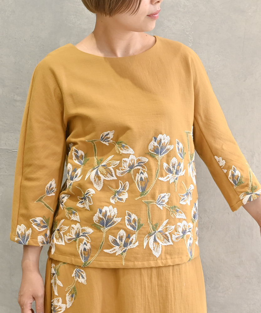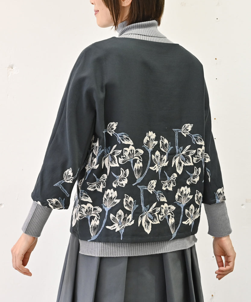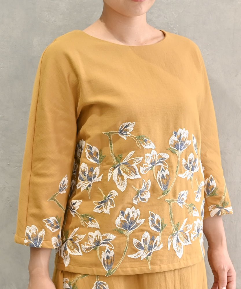 〈遠州織物〉モクレン刺繍 ノーカラー プルオーバー(セットアップ可能) (mud904)