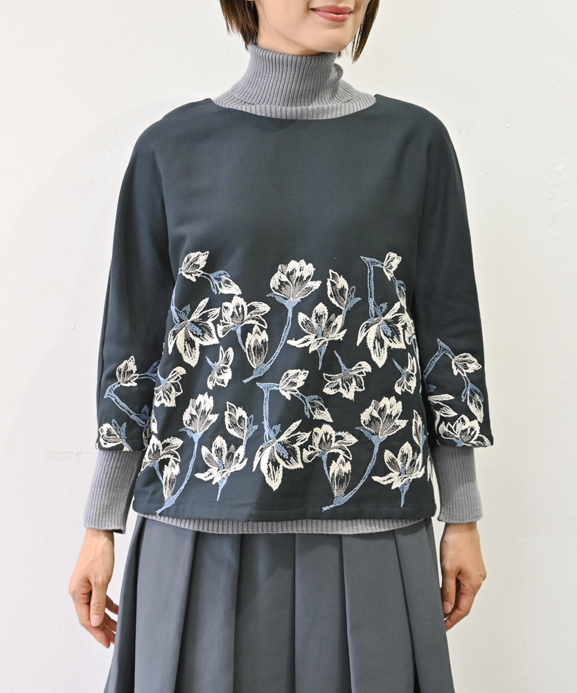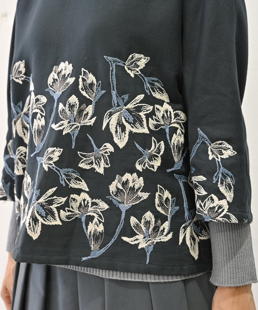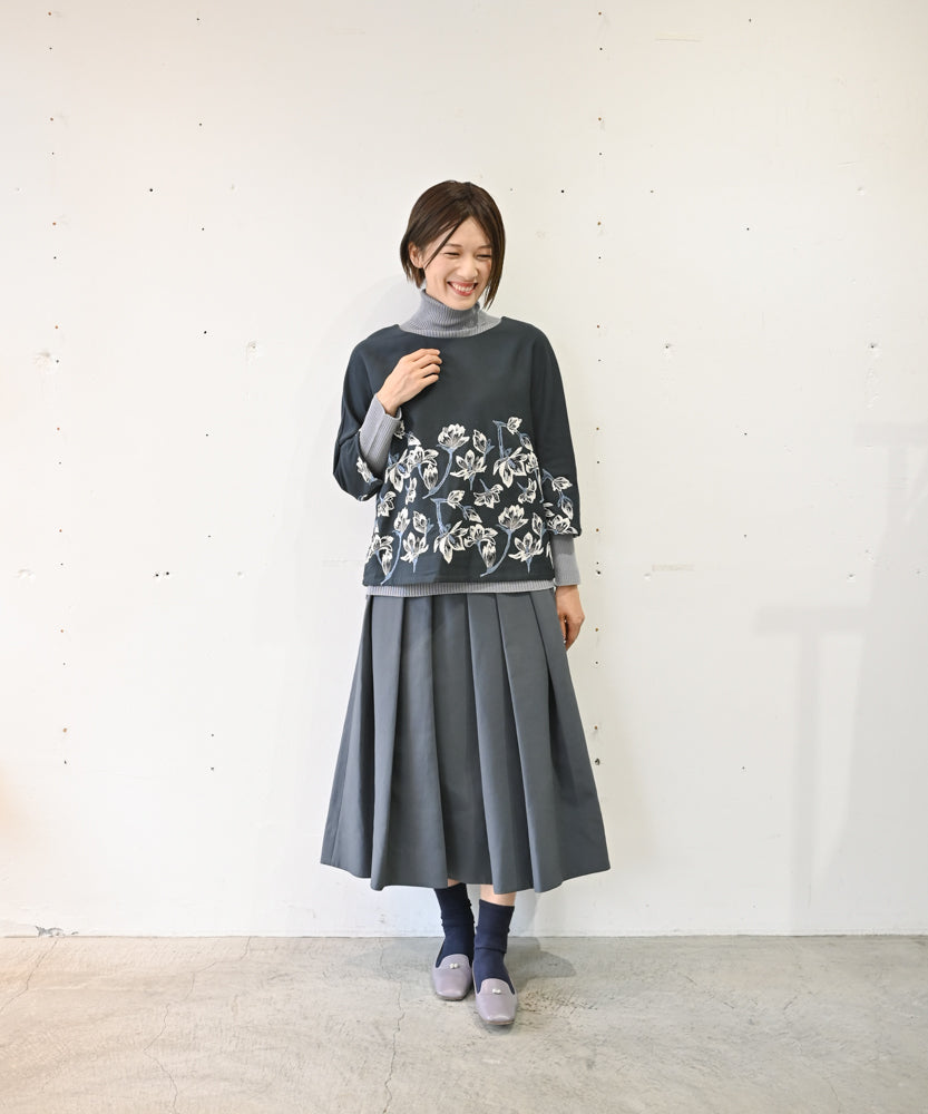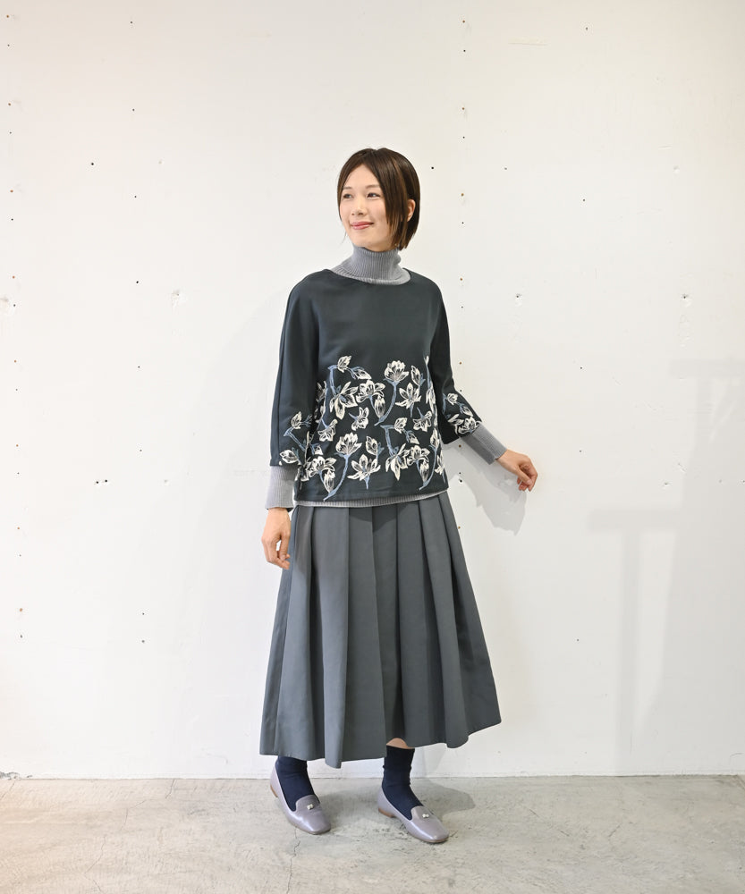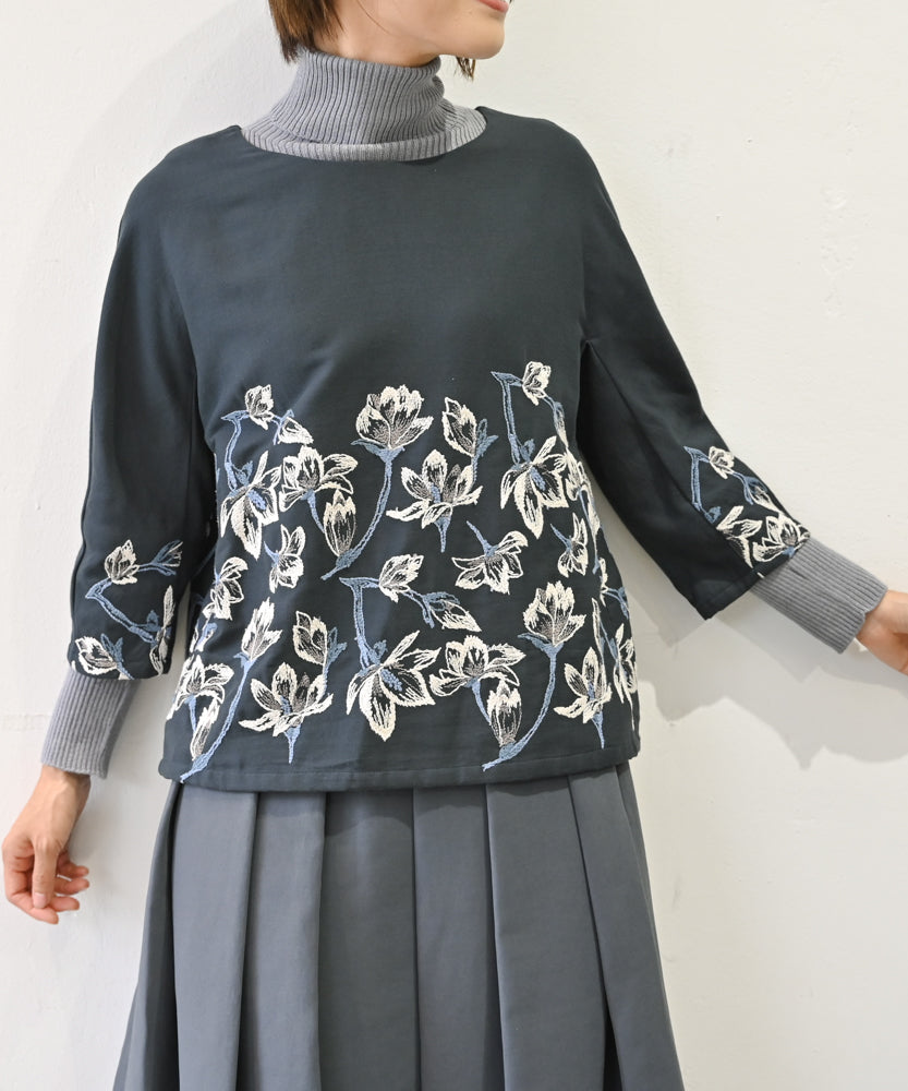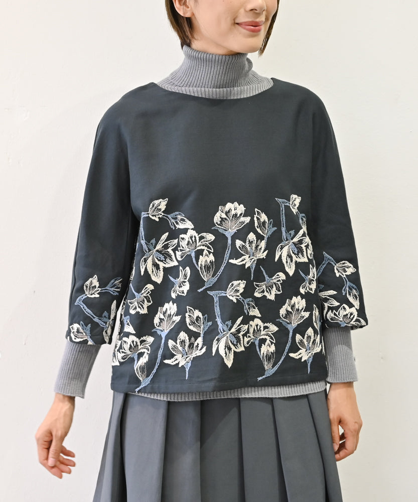 〈遠州織物〉モクレン刺繍 ノーカラー プルオーバー(セットアップ可能) (mud904)