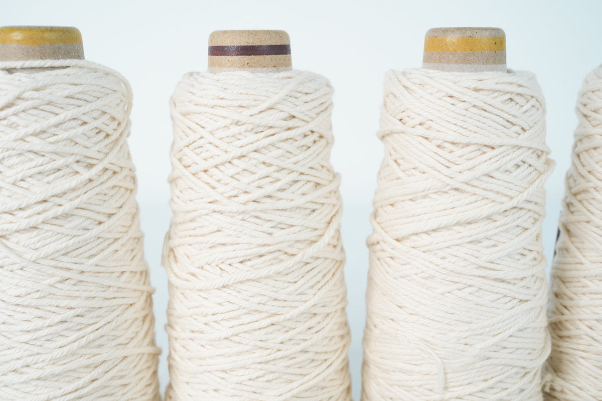 AND WOOLで色、撚りなどを提案して作っていただいたオリジナルコットン100%の糸です。