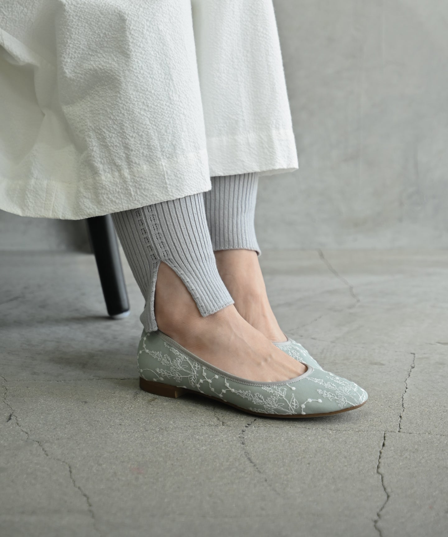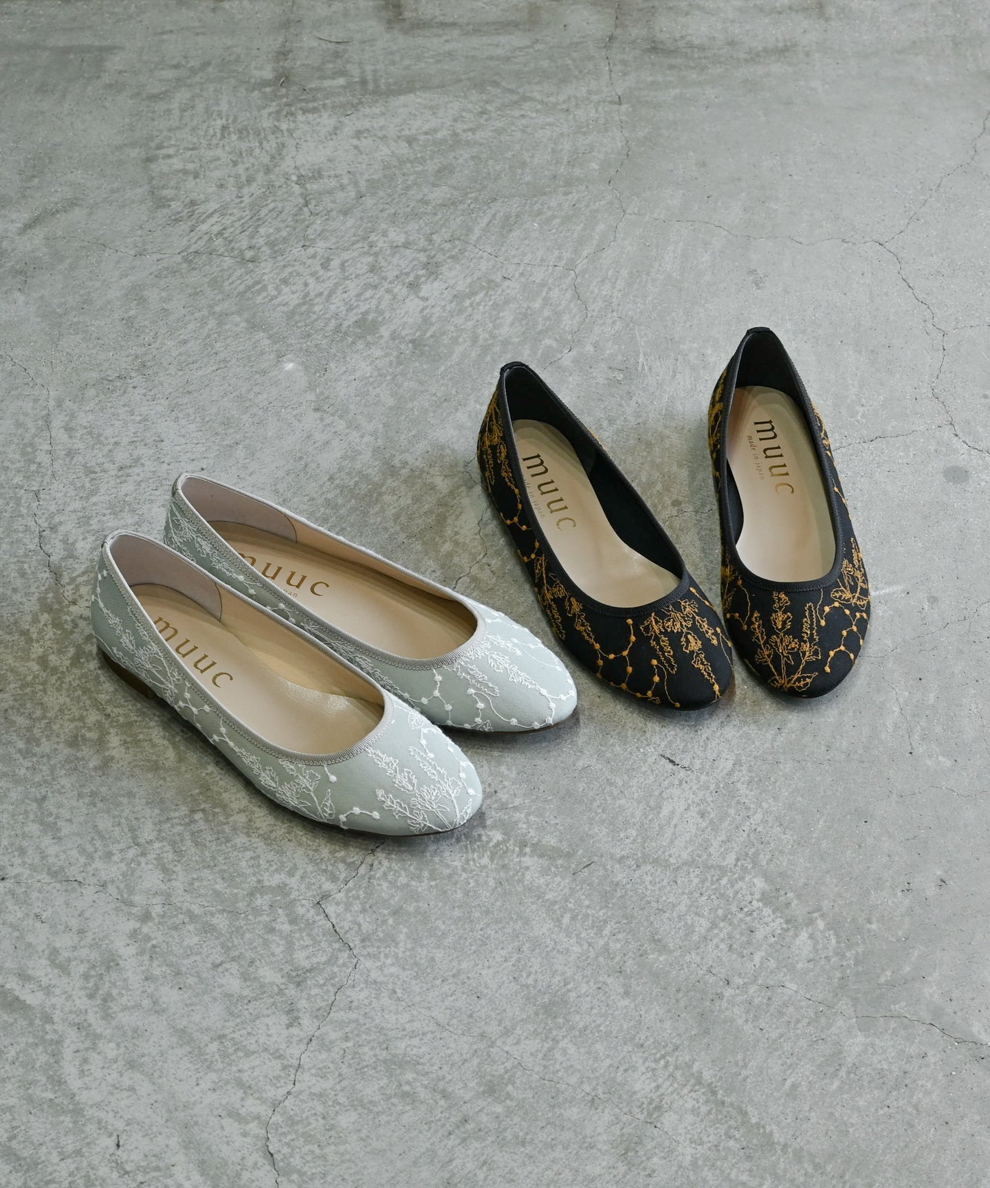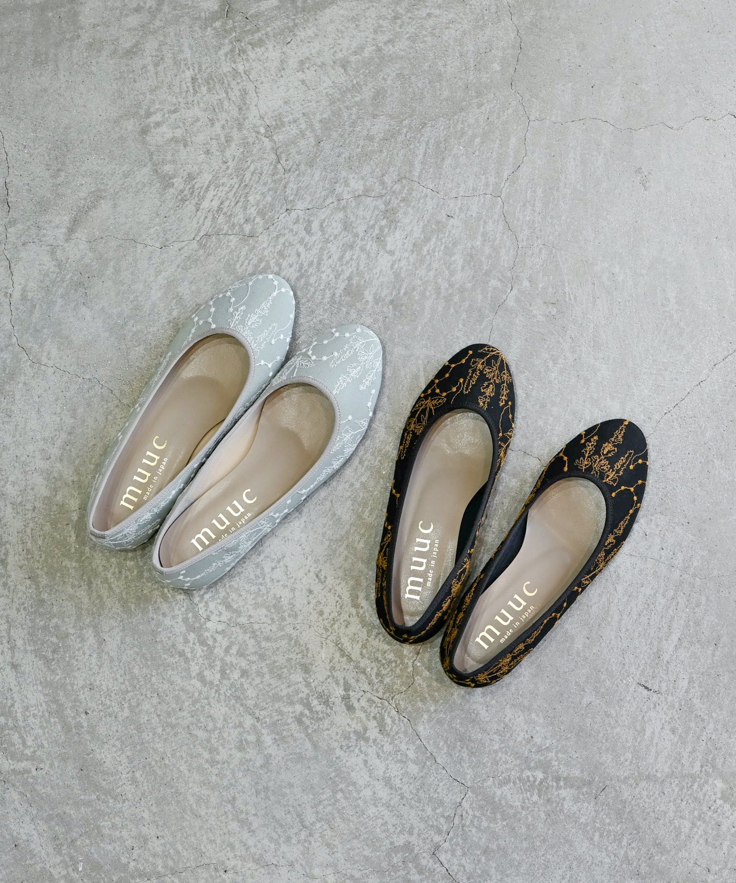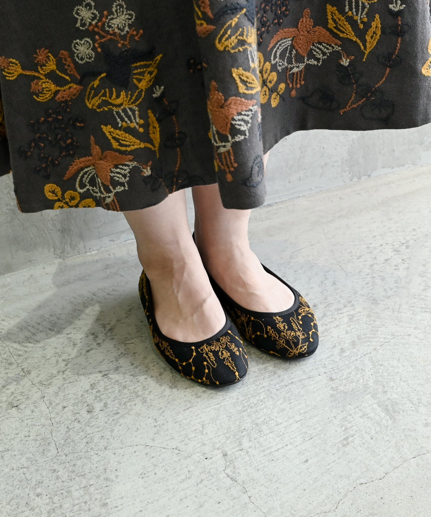 〈職人技が光る日本製の靴〉〈足の動きに沿う屈曲性〉〈柔らかなインソール〉〈軽量〉イラカ柄刺繍のバレエシューズ (kut001)