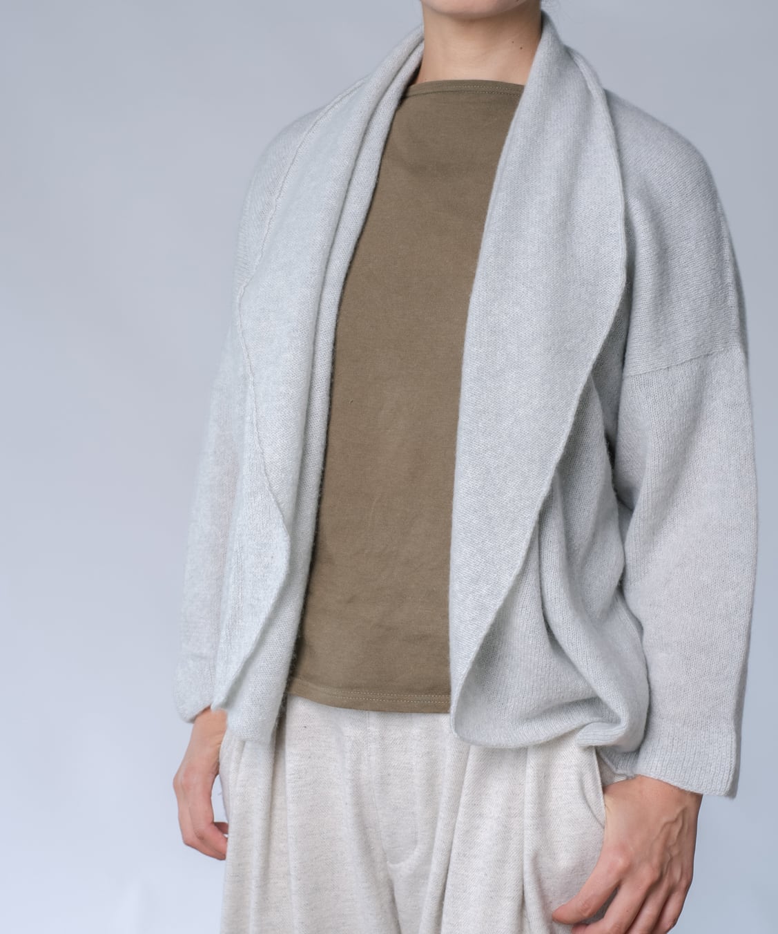 【手編み機で編んだカシミヤ糸(NO.18)の襟付きカーディガン】