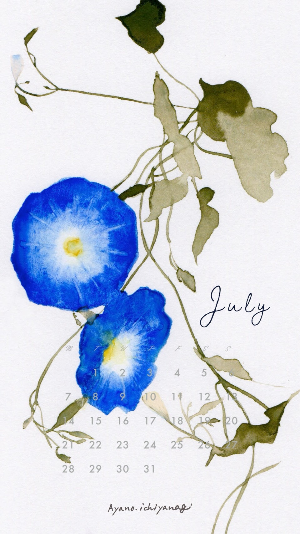 [ 2025年7月/スマホ壁紙:朝顔] (絵描き:Ayano Ichiyanagi / 一柳綾乃)