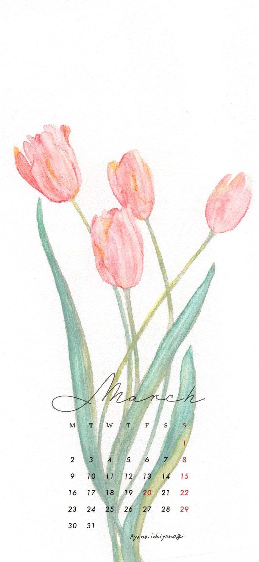 [ 2026年3月/スマホ壁紙:チューリップ (絵描き:Ayano Ichiyanagi / 一柳綾乃)
