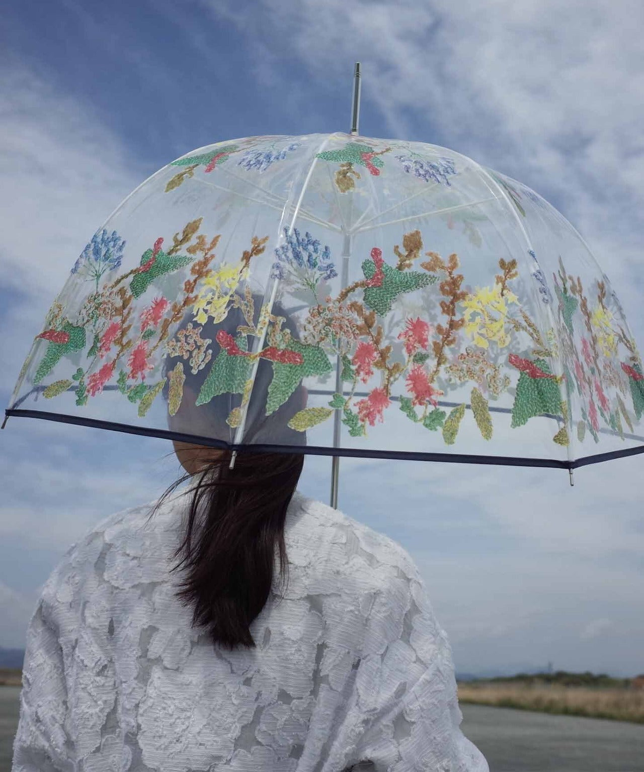 ハンド刺繍を特殊なプリント技術により表現したビニール傘になります。