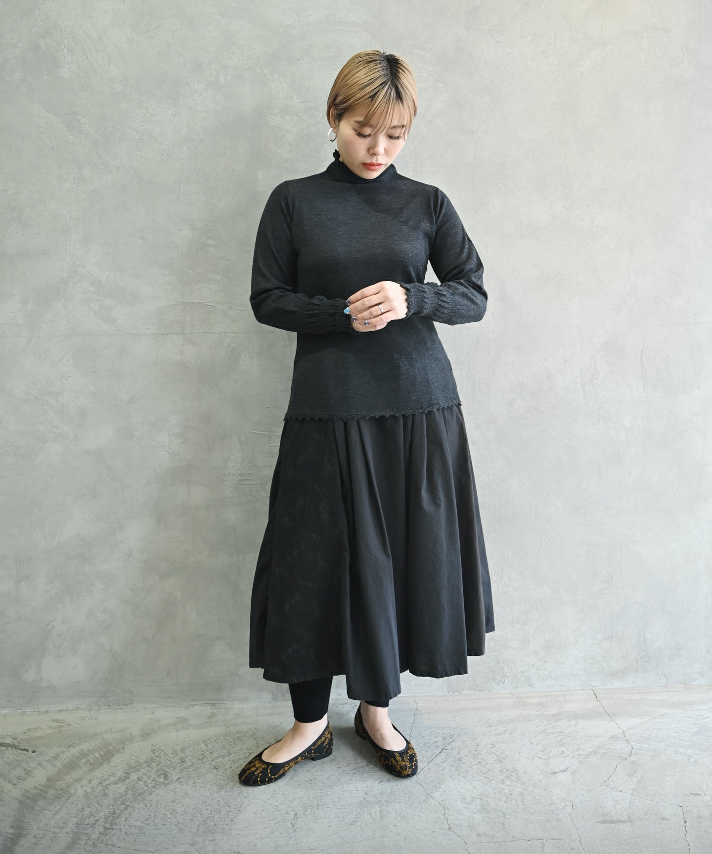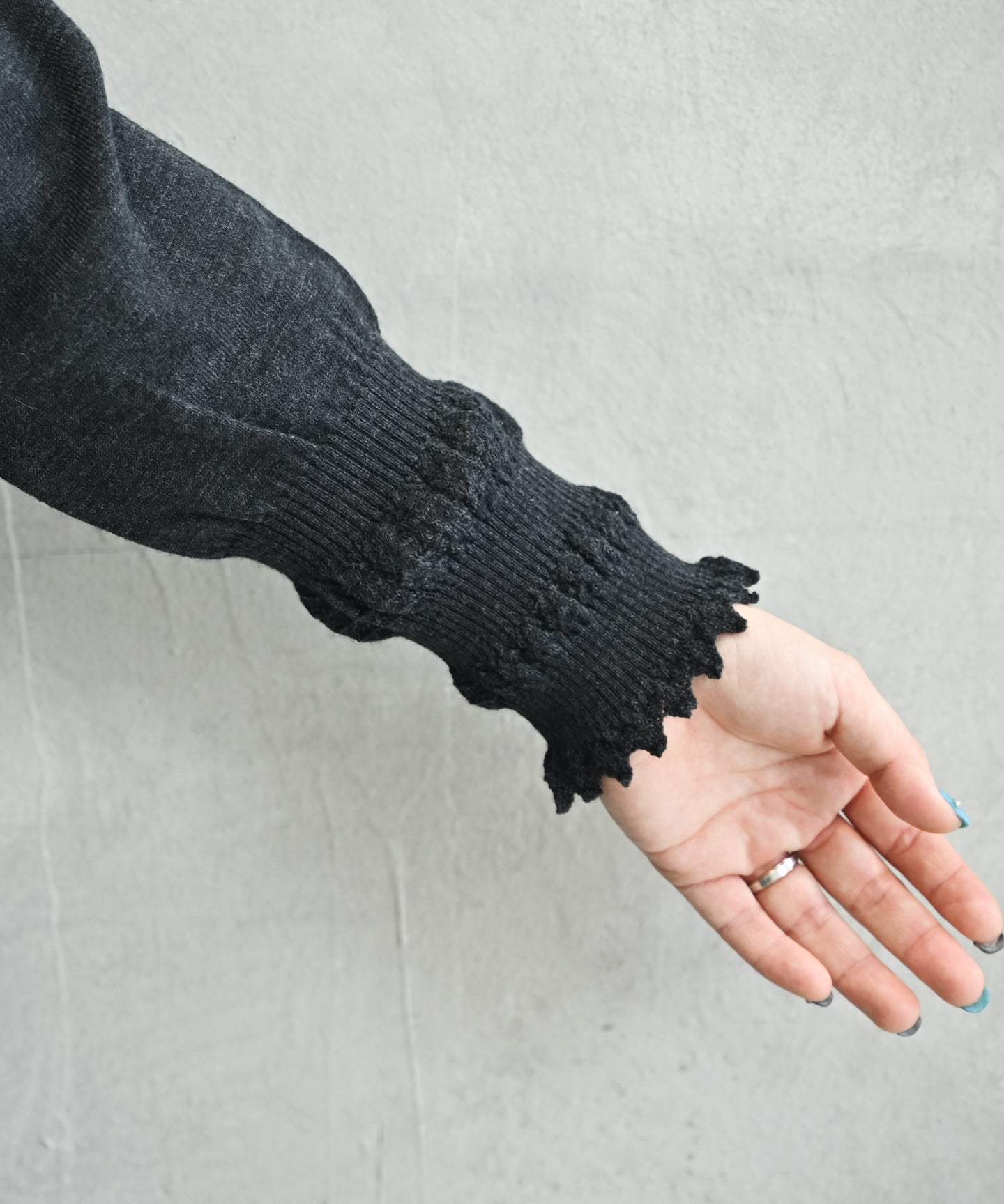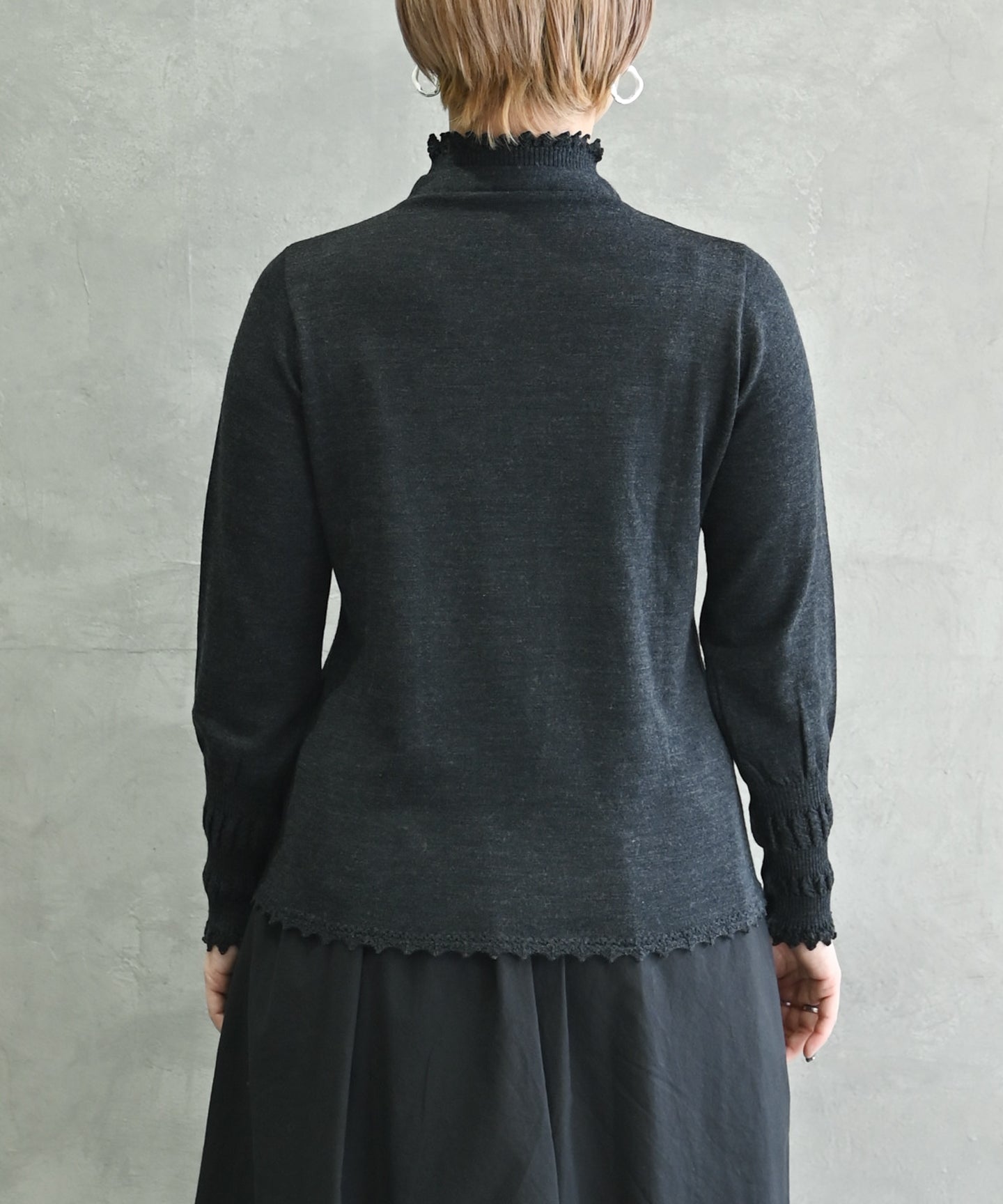 一枚でトップスとしてももちろん、ジャケットやワンピースのインナーとしても着ていただけます。襟や裾は繊細なレース編みにしていますので、シャツやワンピースの襟元から覗かせるスタイリングもお勧めです。