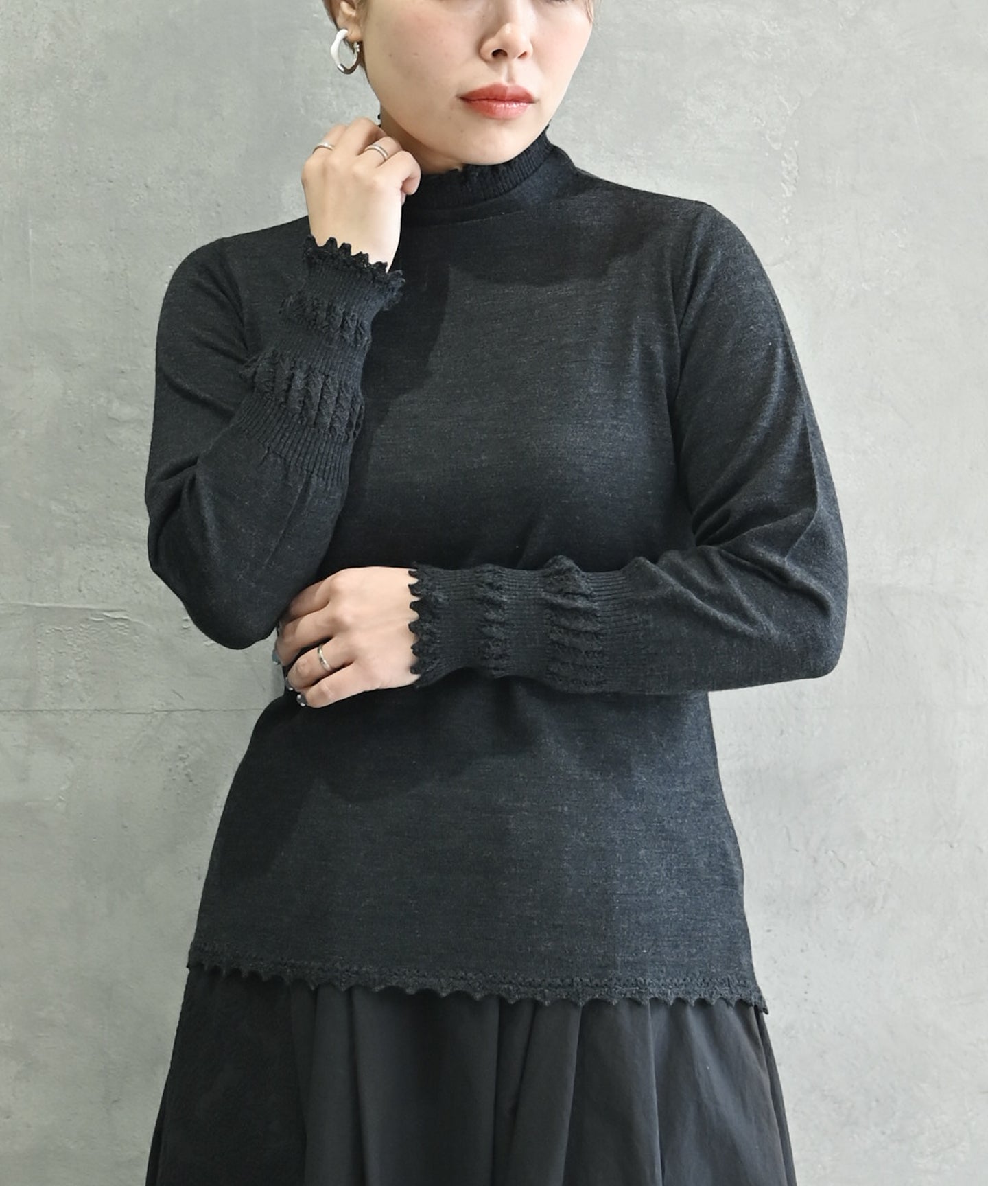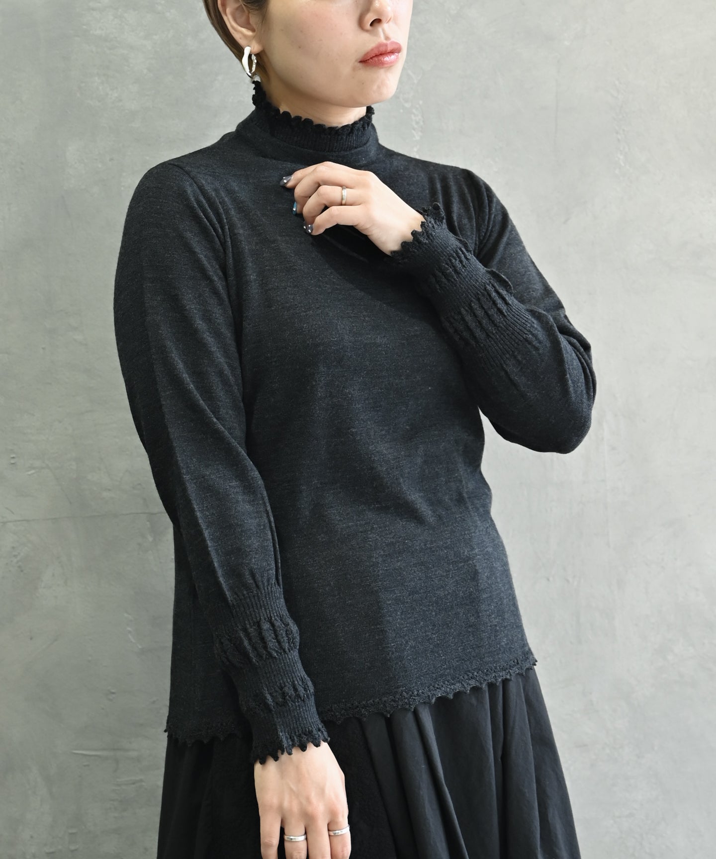 〈極細繊維ウール〉〈洗えるニット〉120Sリブレースボトルネックプルオーバー (mua925)