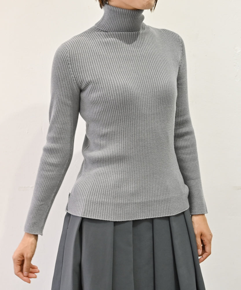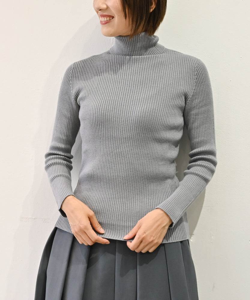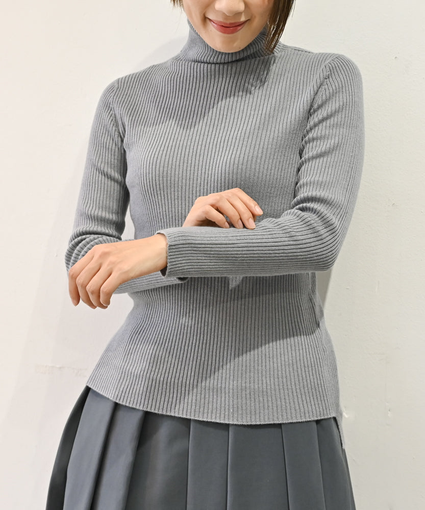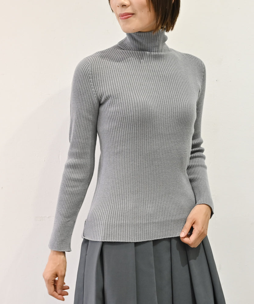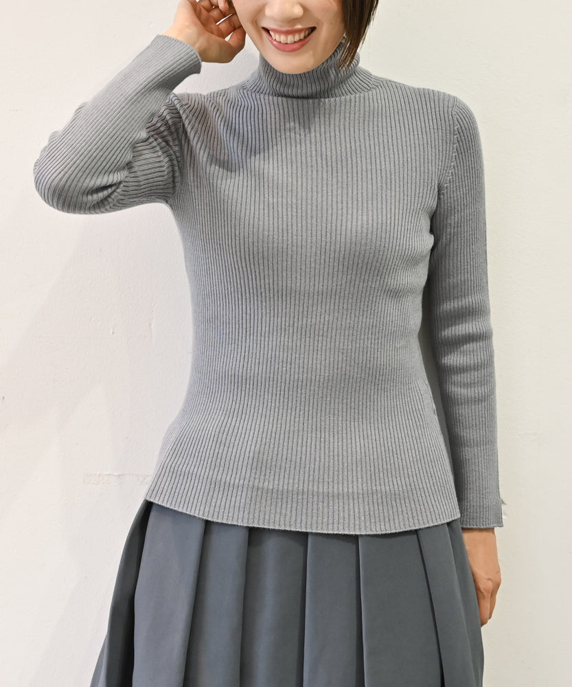 〈カシミヤ×シルク×ウール〉前後差がポイント リブ編みタートルネックプルオーバー (mua934)