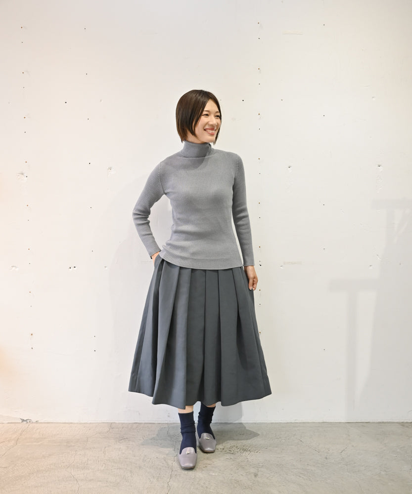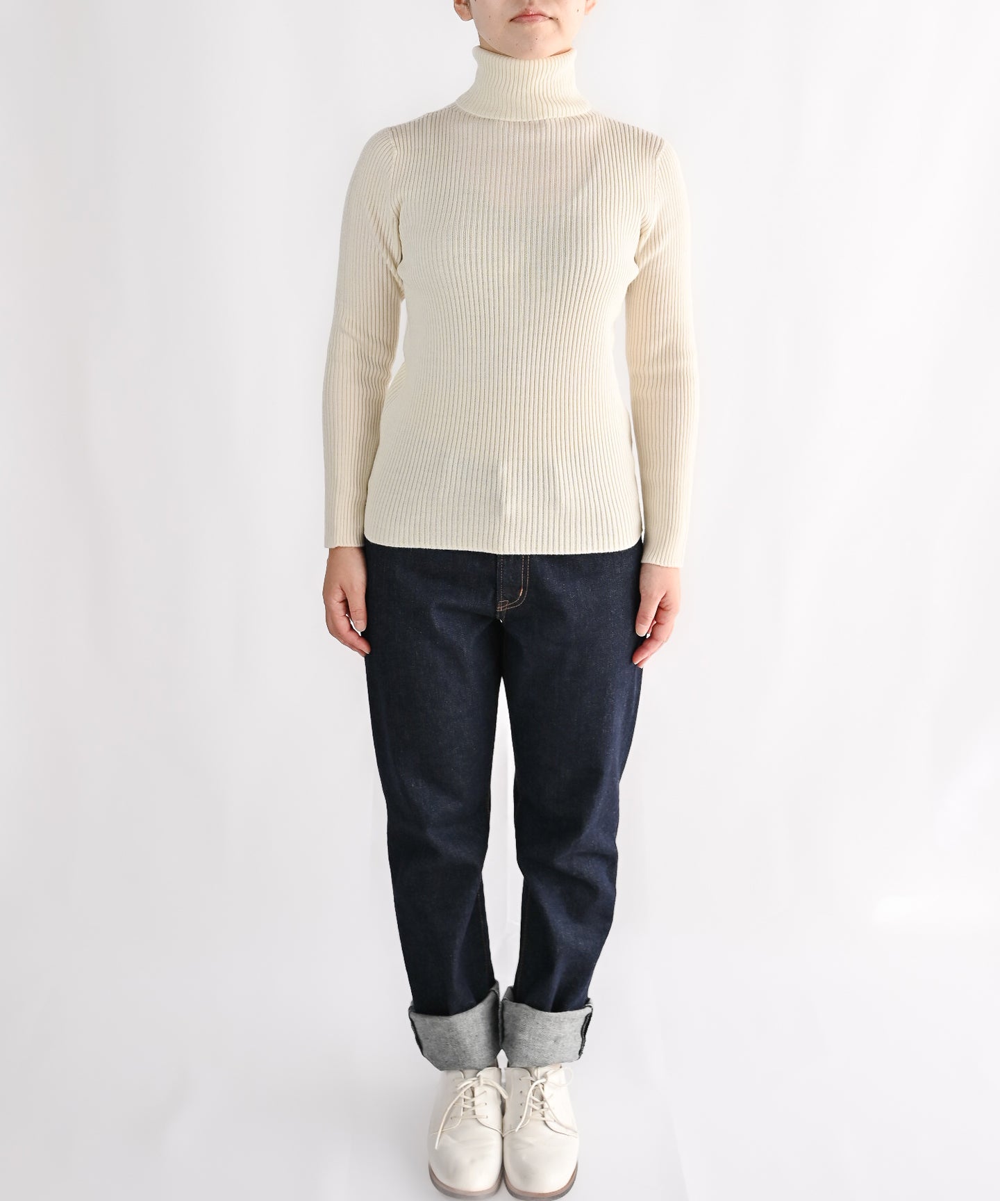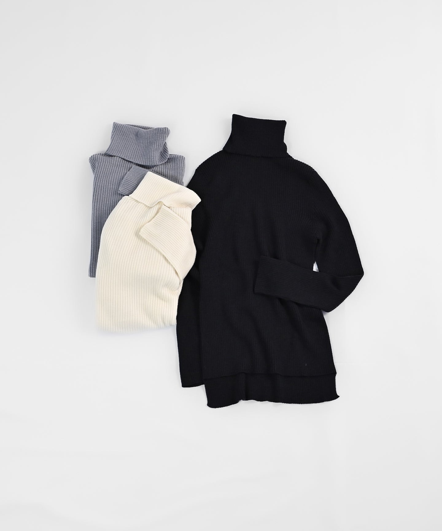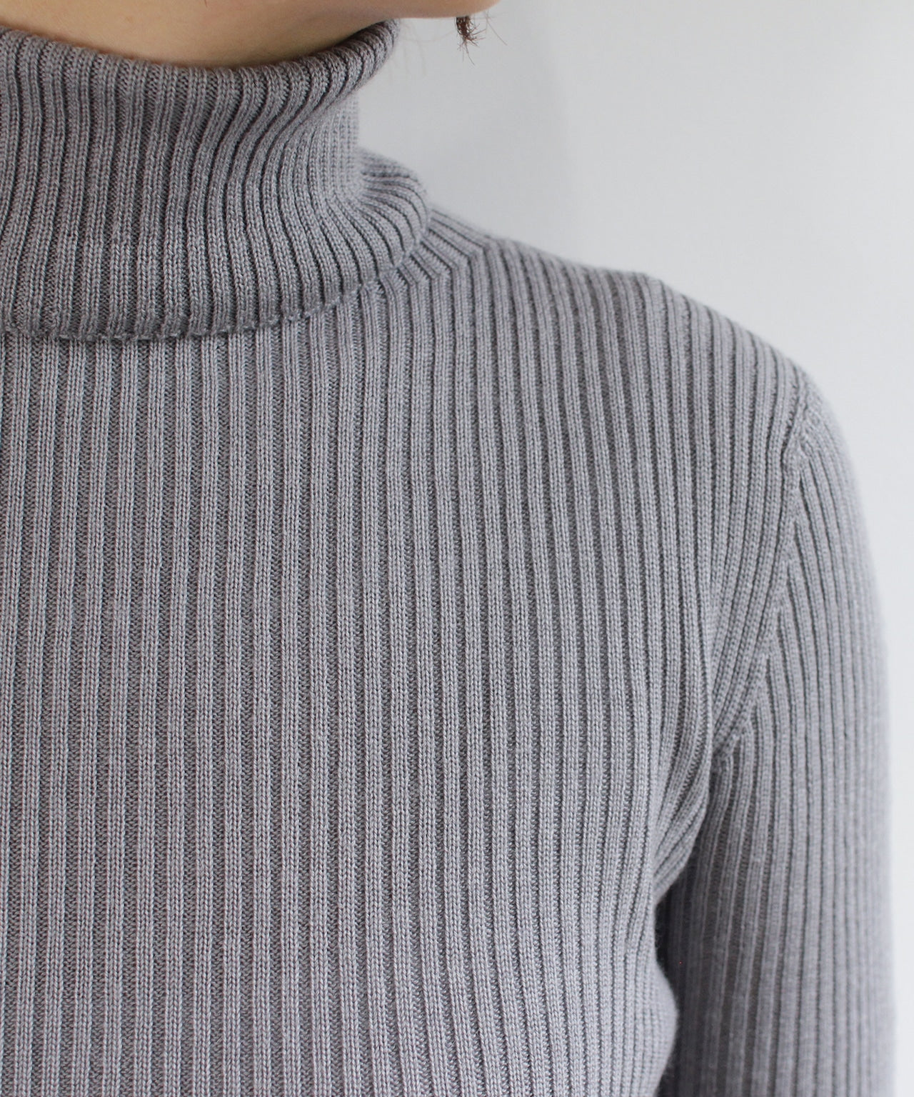 〈カシミヤ×シルク×ウール〉前後差がポイント リブ編みタートルネックプルオーバー (mua934)
