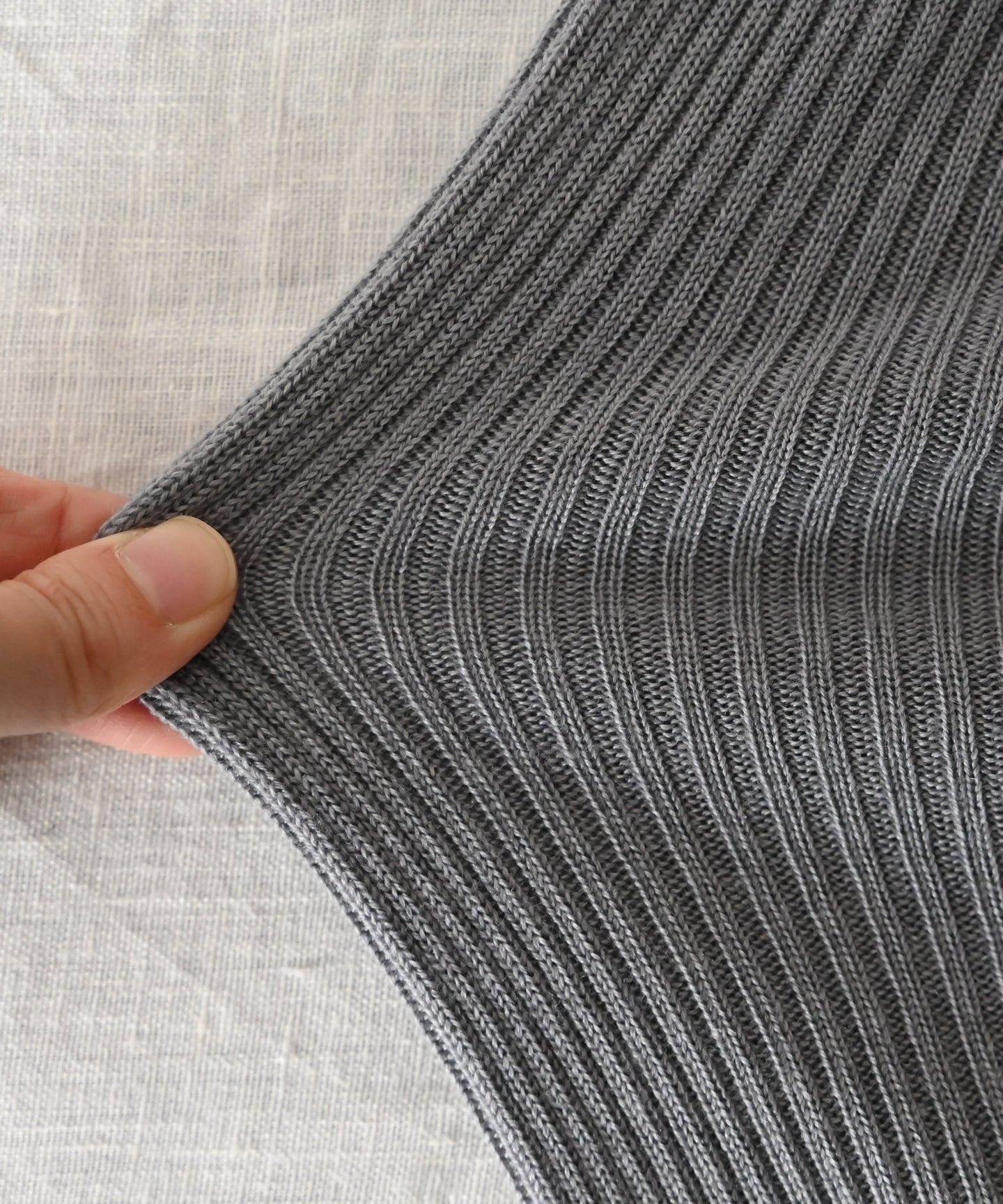 着丈に前後差があるので、前側のウエストに裾がたまらず、すっきりとご着用いただけます。ボトムのウエストに裾をインしたり、羽織りと合わせたり、ワンピースのインナーにしたり、様々なコーディネートをお楽しみください。