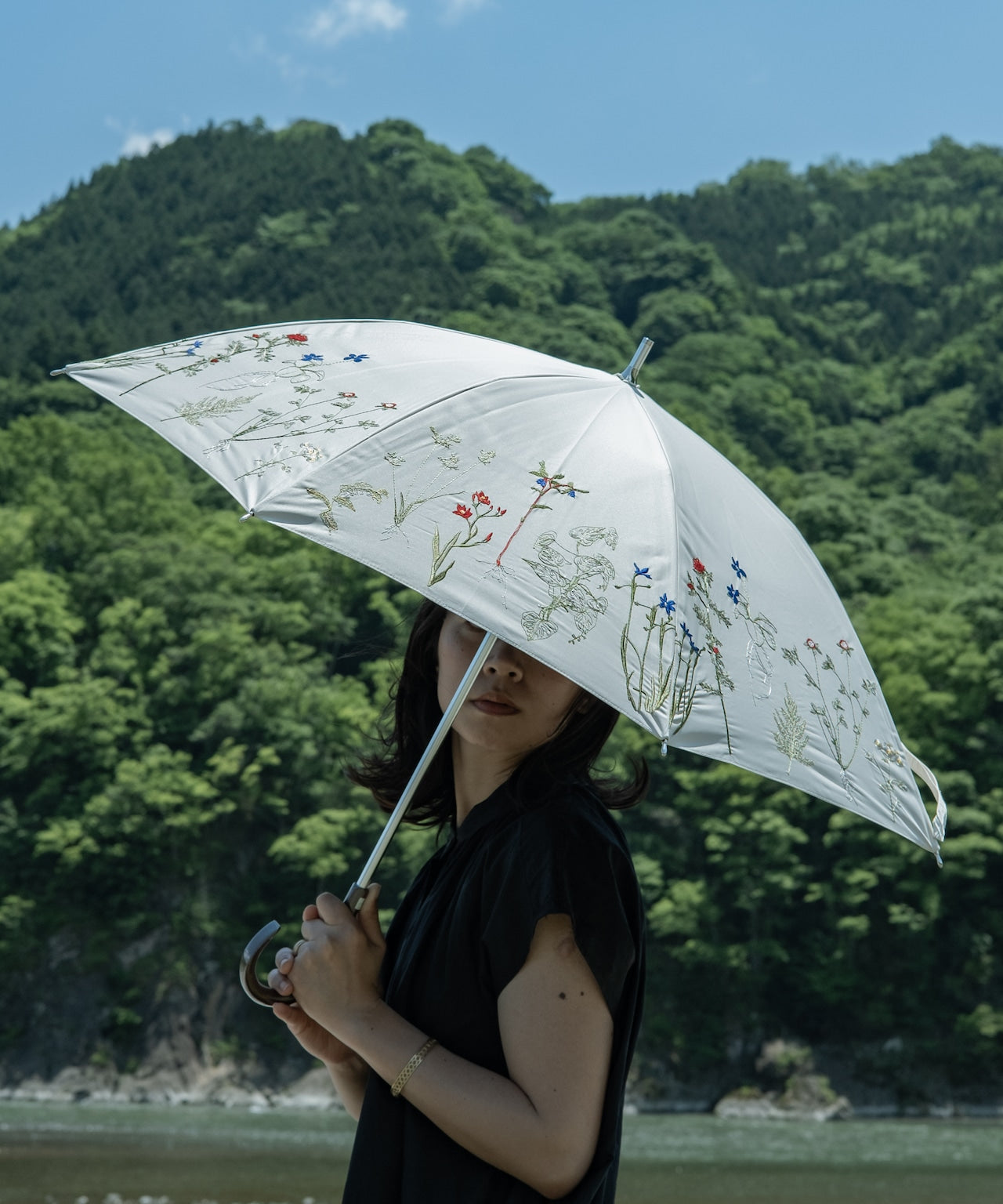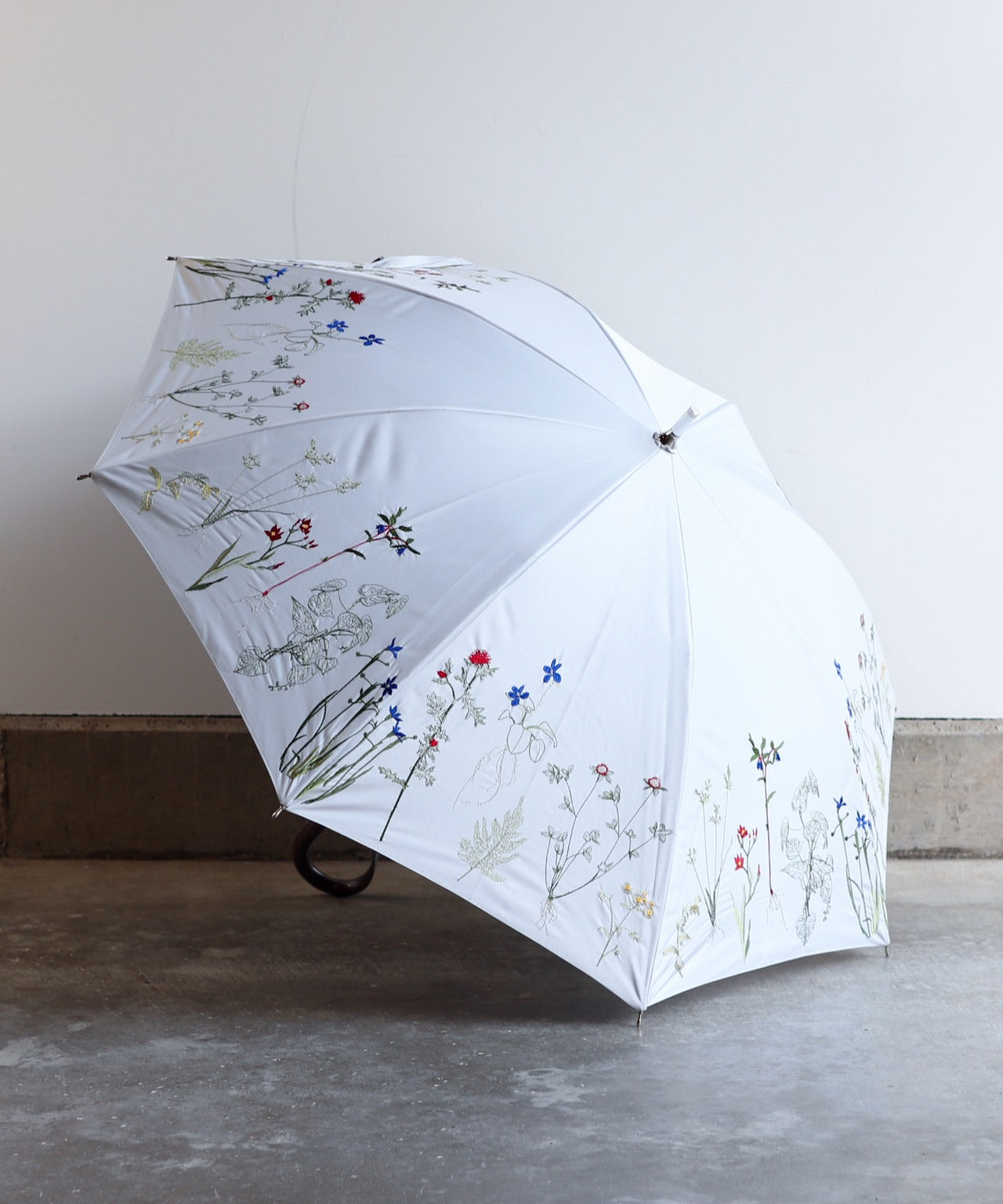 〈UVカット率99%以上・一級遮光生地・晴雨兼用〉ボタニカル刺繍の日傘 (長傘タイプ) (ELS52)