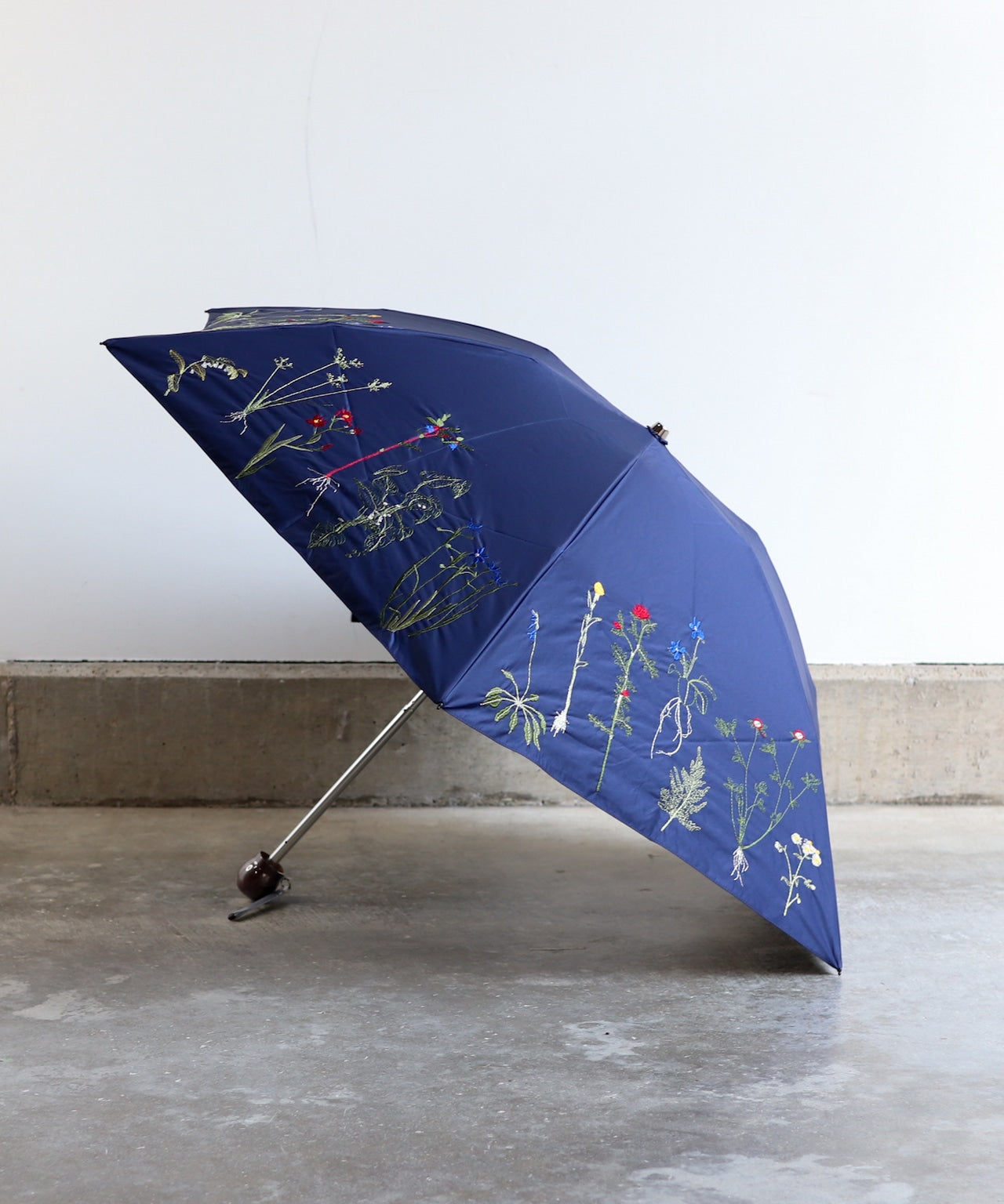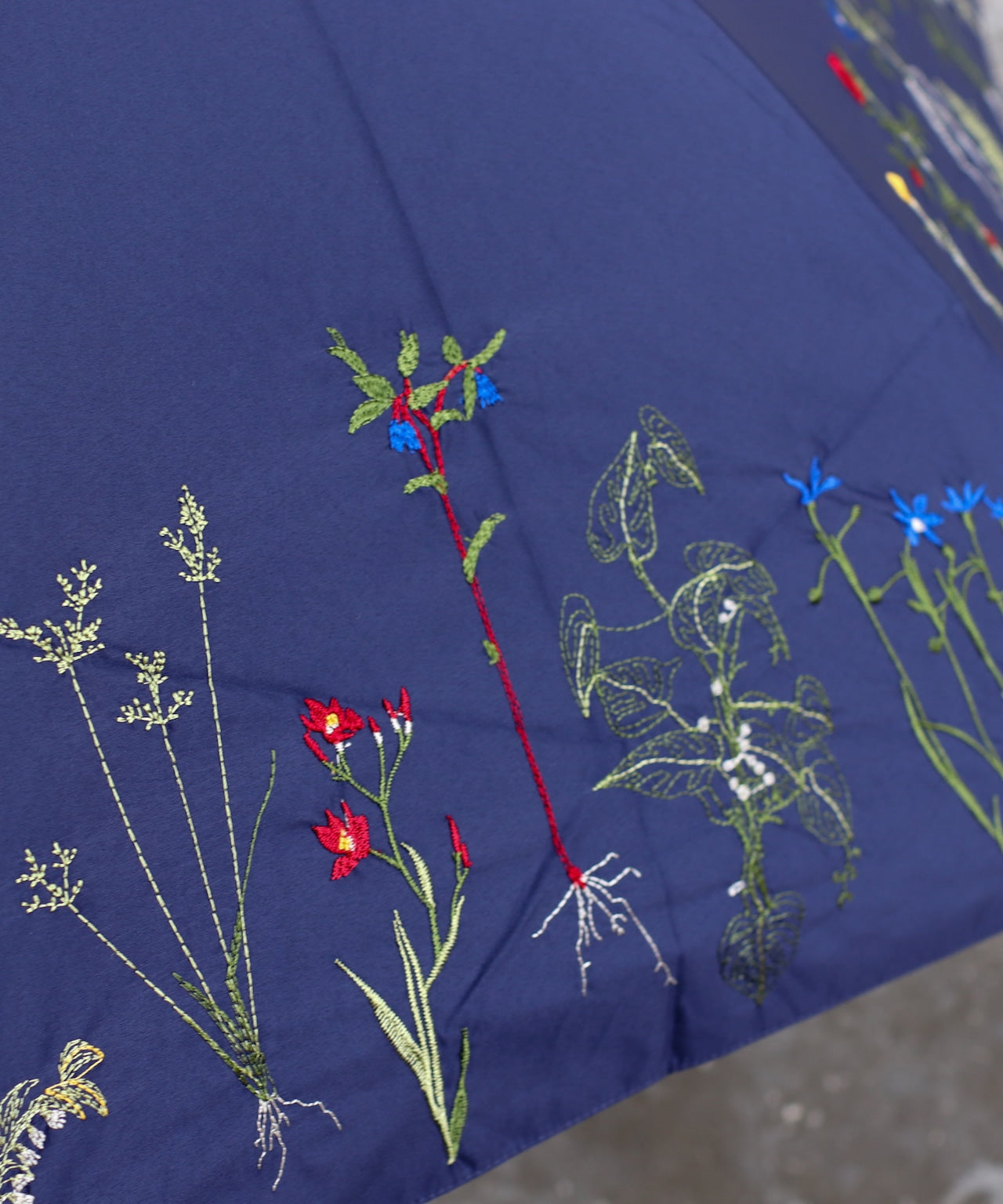 〈UVカット率99%以上・一級遮光生地・晴雨兼用〉ボタニカル刺繍の日傘 (折りたたみ傘タイプ) (ELS52-mini)