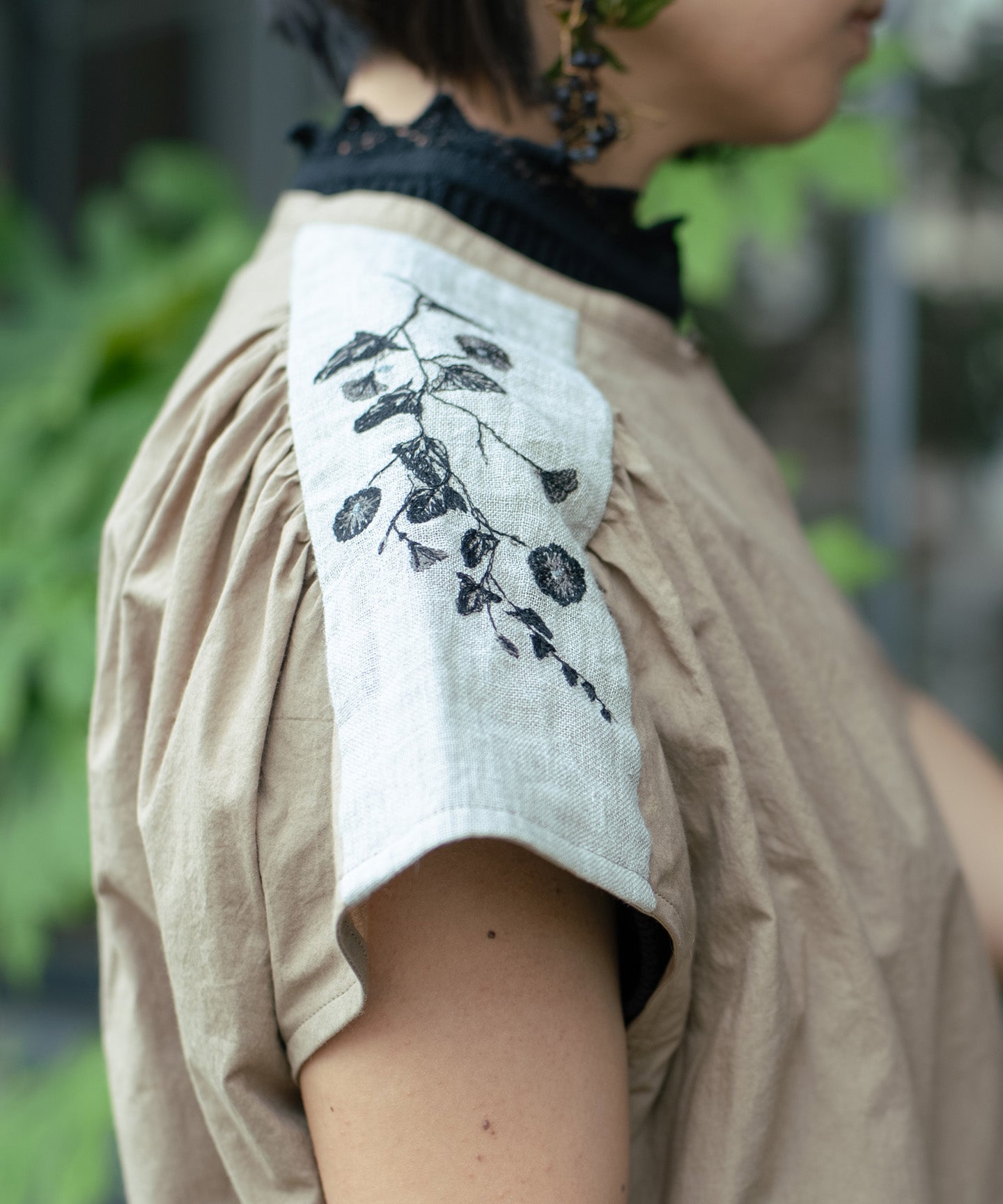 muucオリジナルテキスタイルの定番の一つ、ヒルガオ刺繍のシリーズです。軽い上質な生地や、刺繍と合わさり、ヴィンテージ服のような不変的な美しさが特長です。