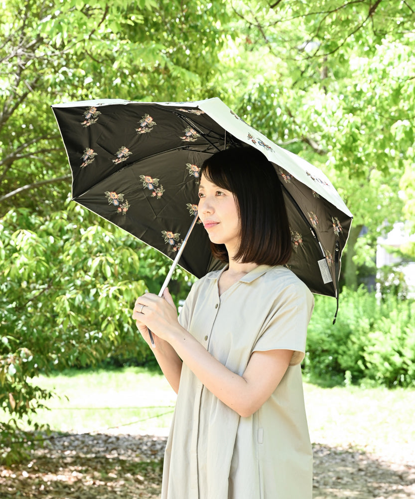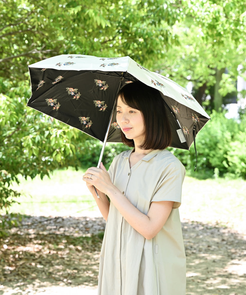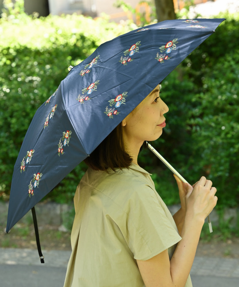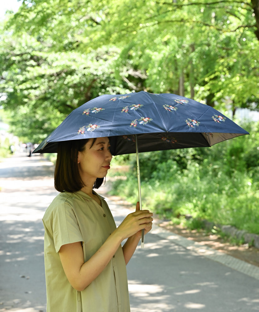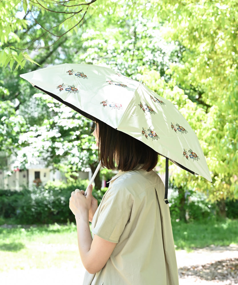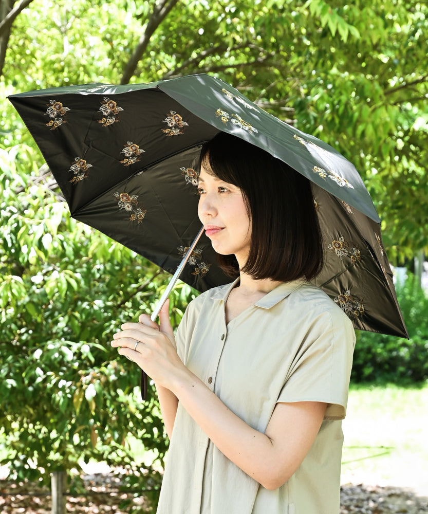 〈UVカット率99%以上・一級遮光生地・晴雨兼用〉野ばら刺繍の日傘 (折りたたみ傘タイプ)(ELS54mini)