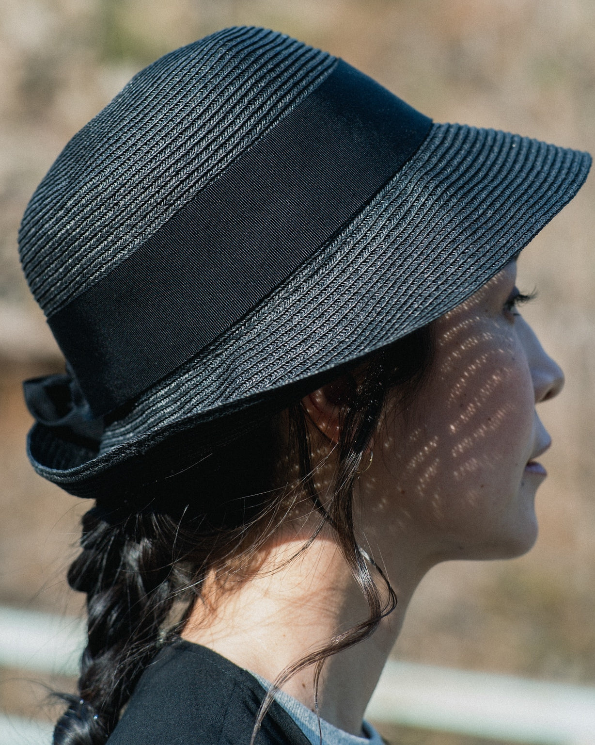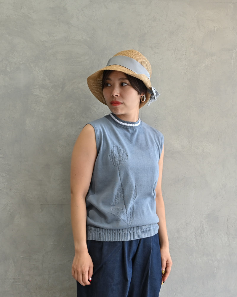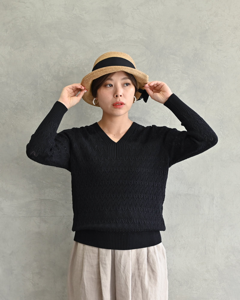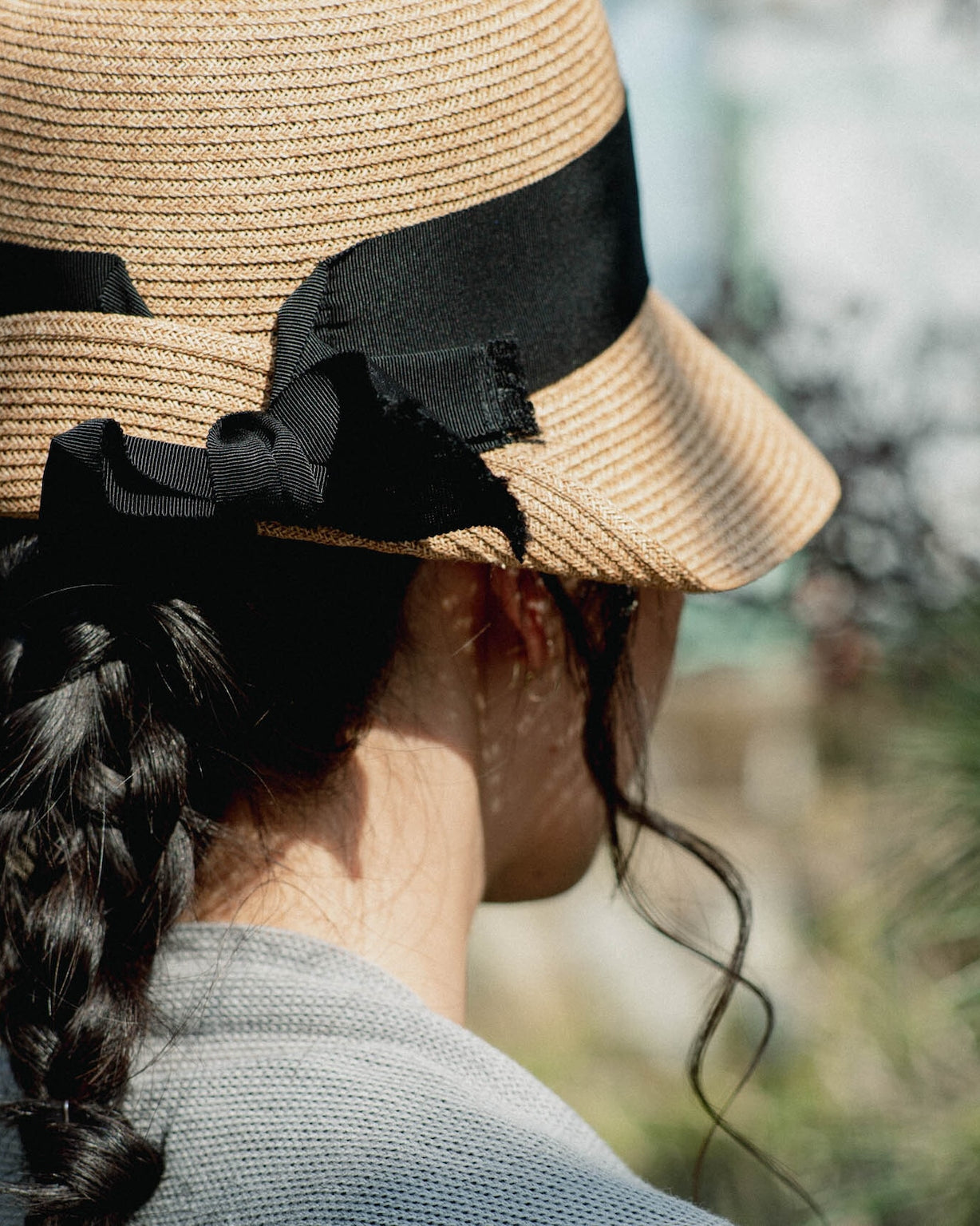 一般的なフレンチスリーブよりも袖丈を長めにし、二の腕を隠しやすくしております。肩をつくるセットインスリーブではなく、肩と袖が一体化したフレンチスリーブなので、肩回りが動きやすくなっています。