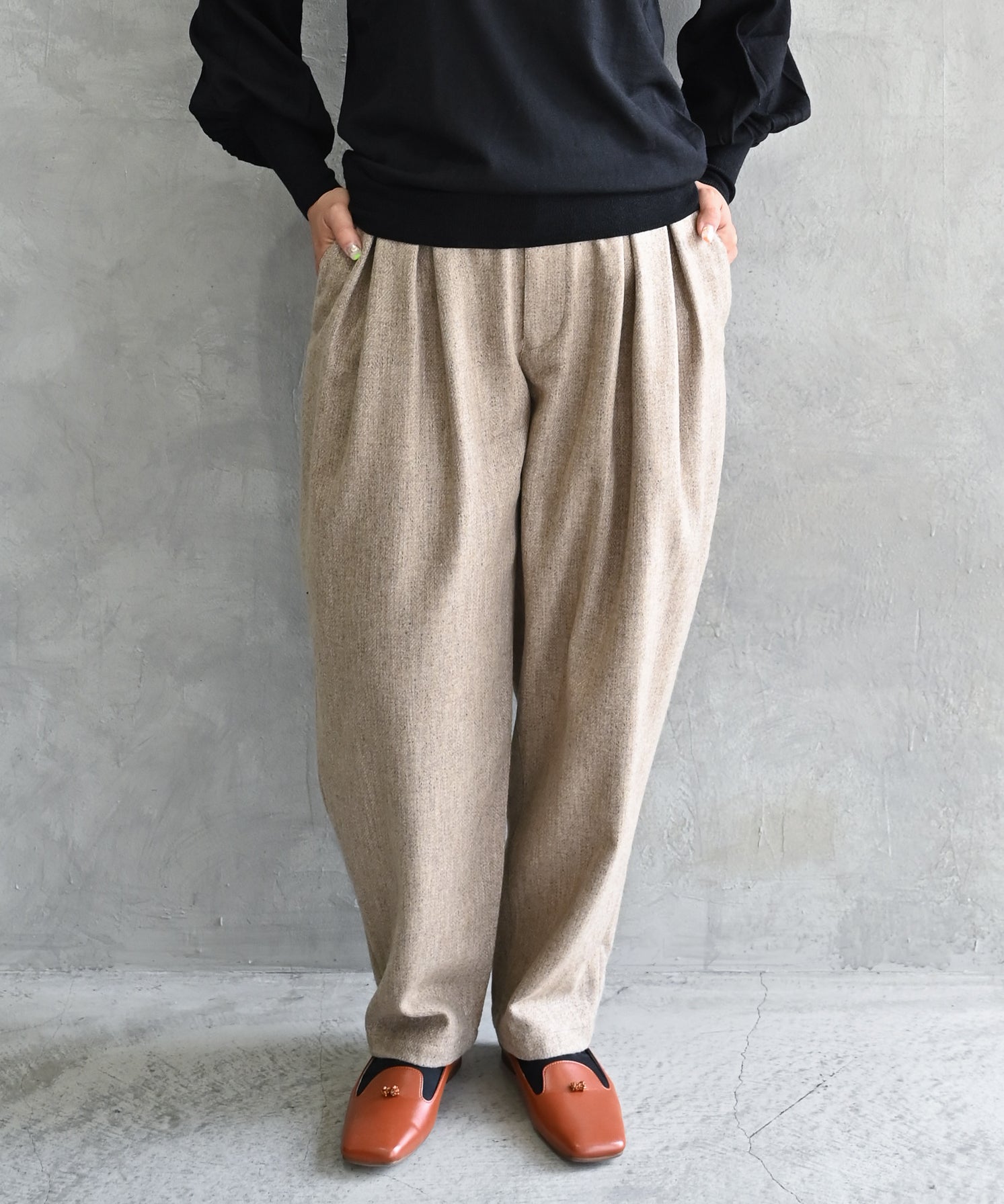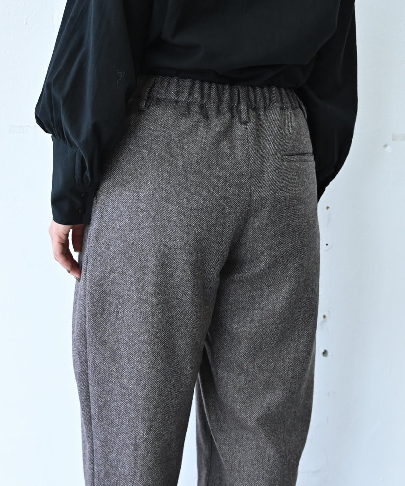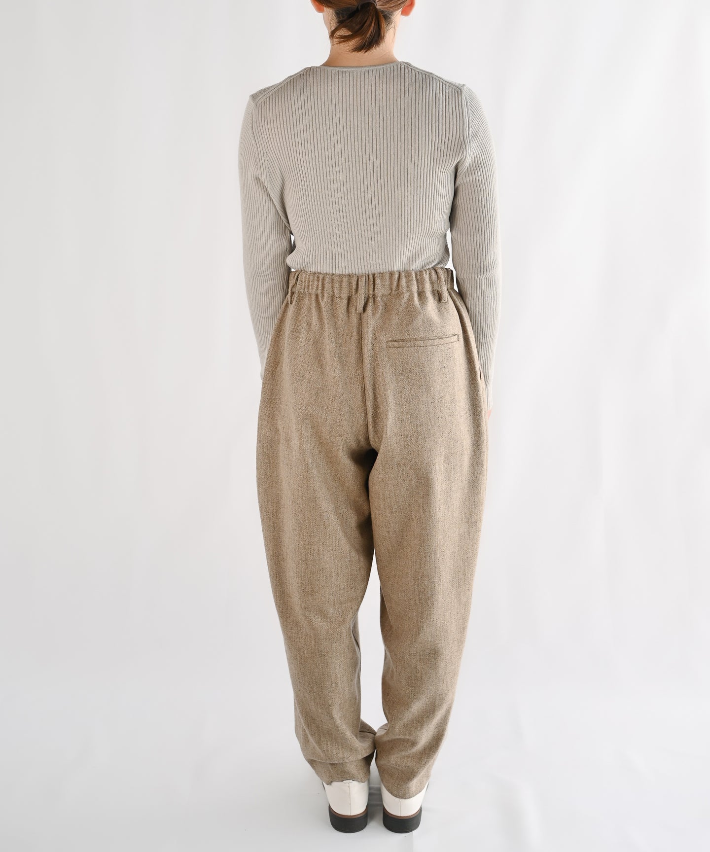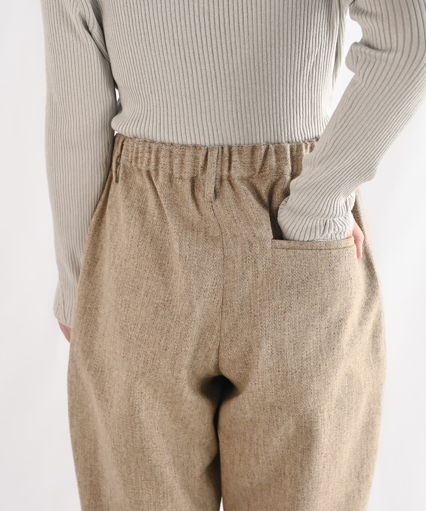 〈遠州織物 ウール混〉後ろウエストゴム有り テーパードスラックスパンツ (mug320)