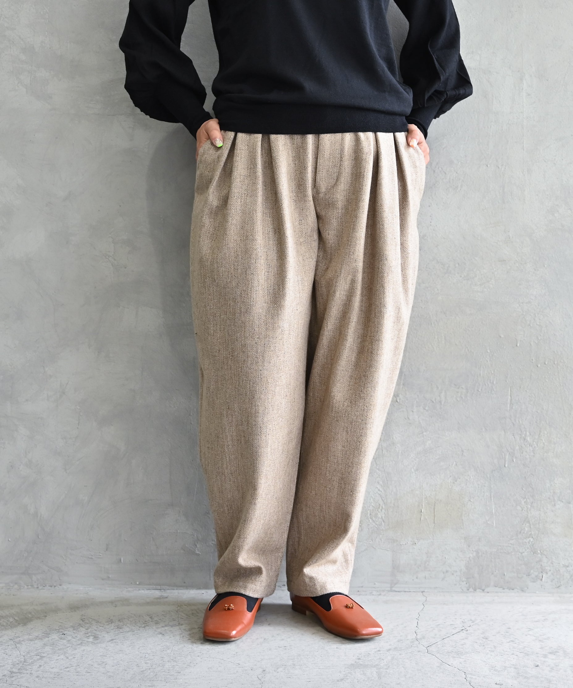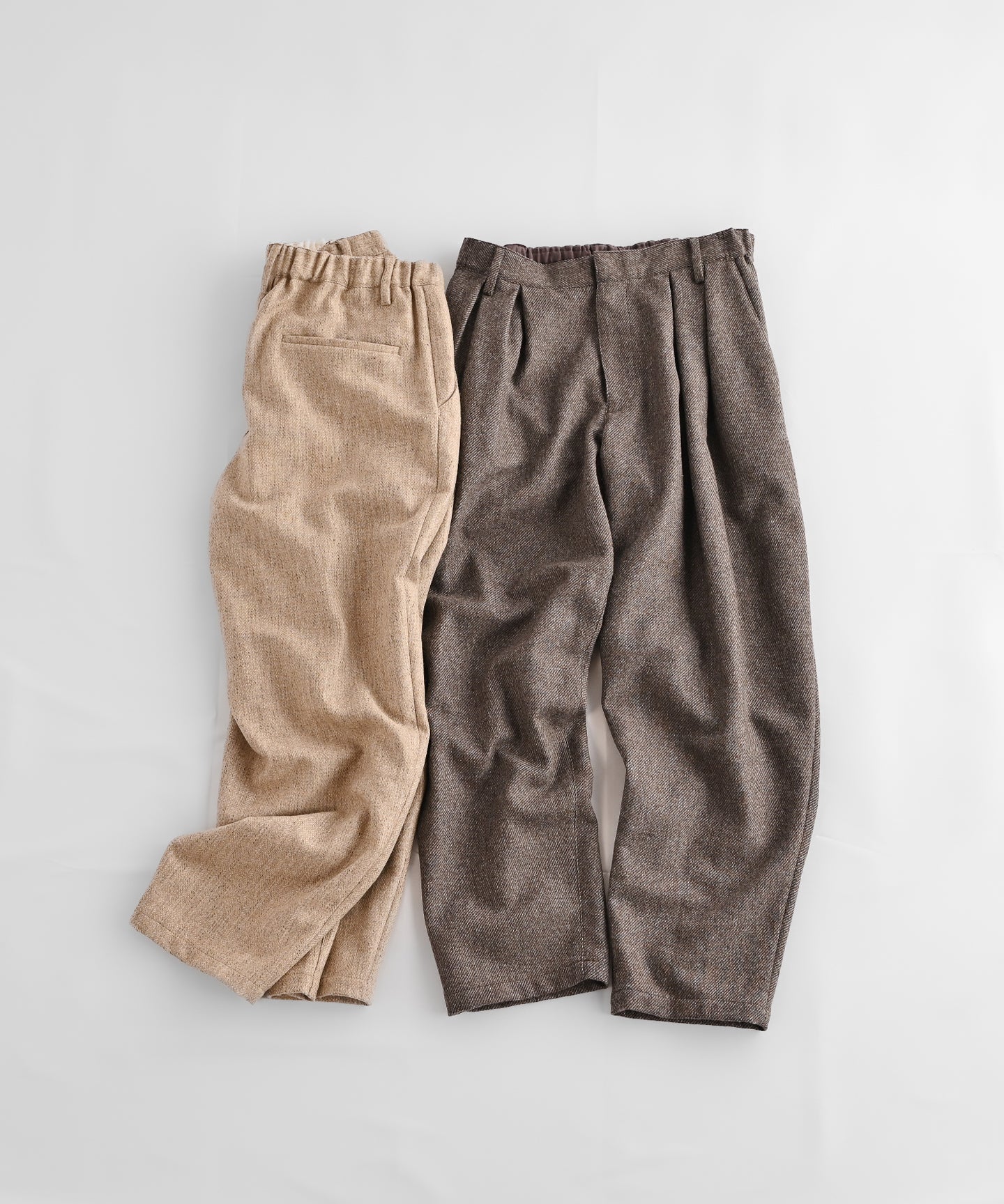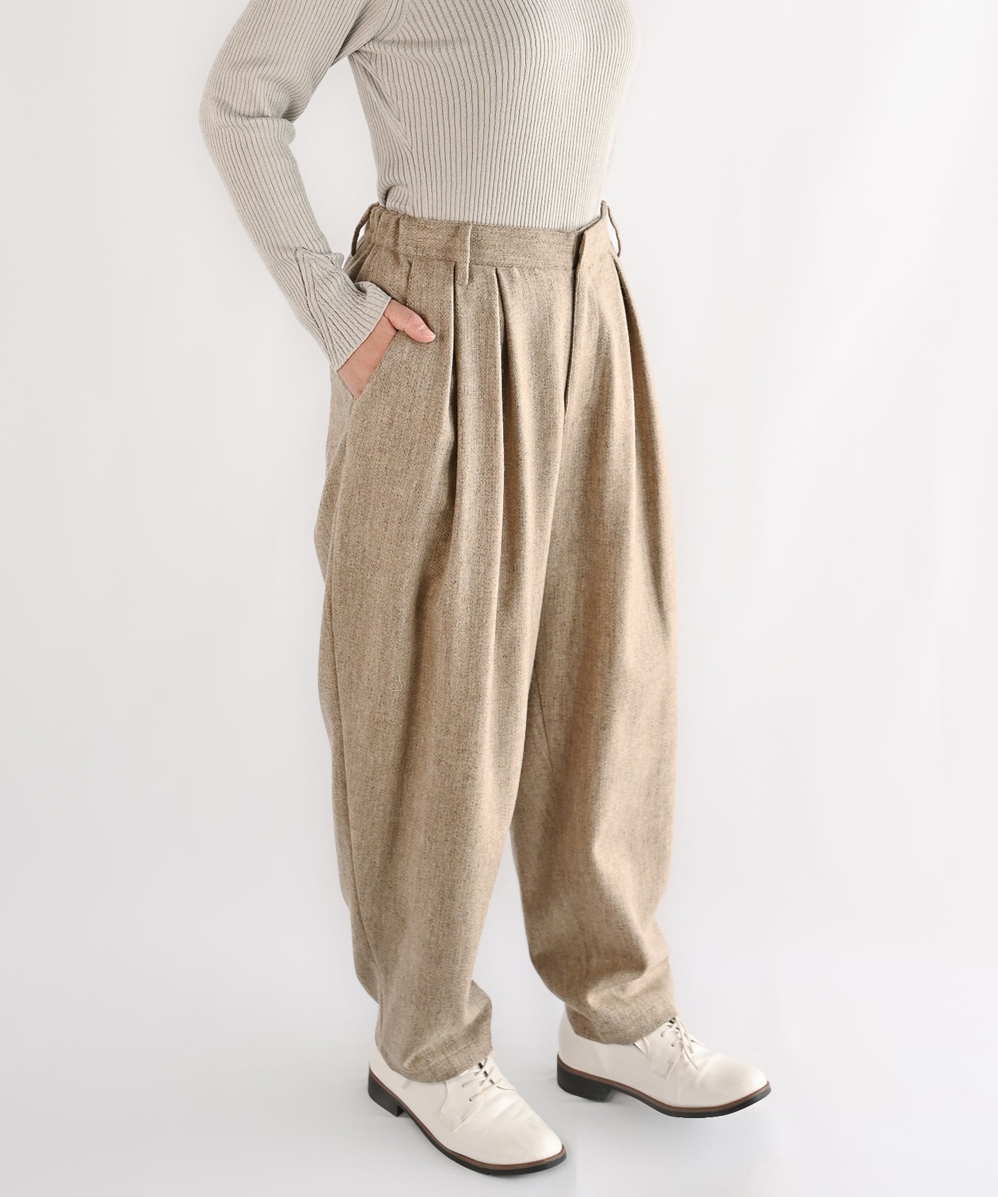 〈遠州織物 ウール混〉後ろウエストゴム有り テーパードスラックスパンツ (mug320)