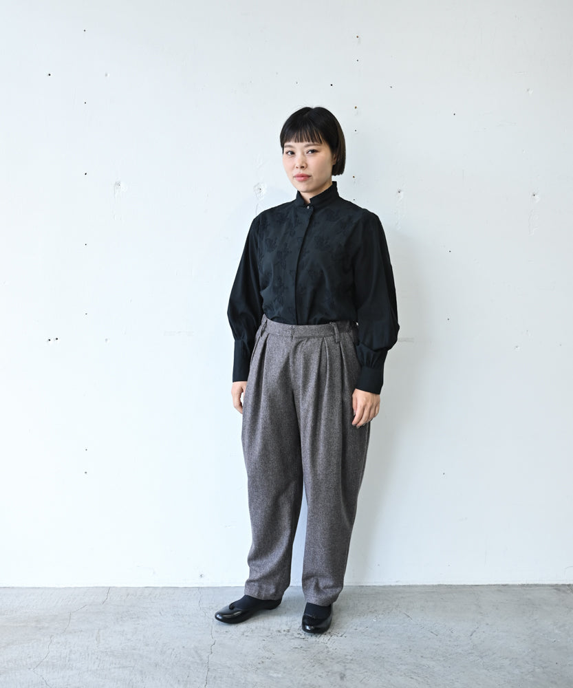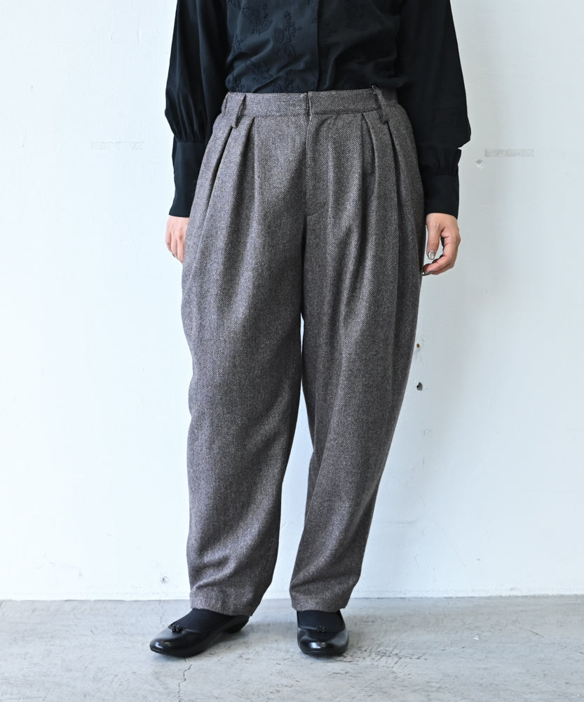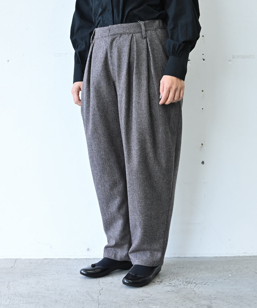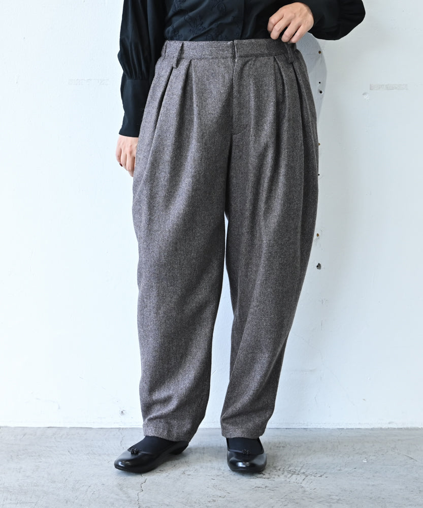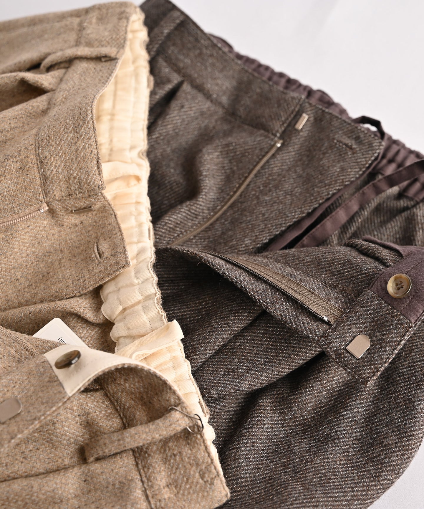 〈遠州織物 ウール混〉後ろウエストゴム有り テーパードスラックスパンツ (mug320)