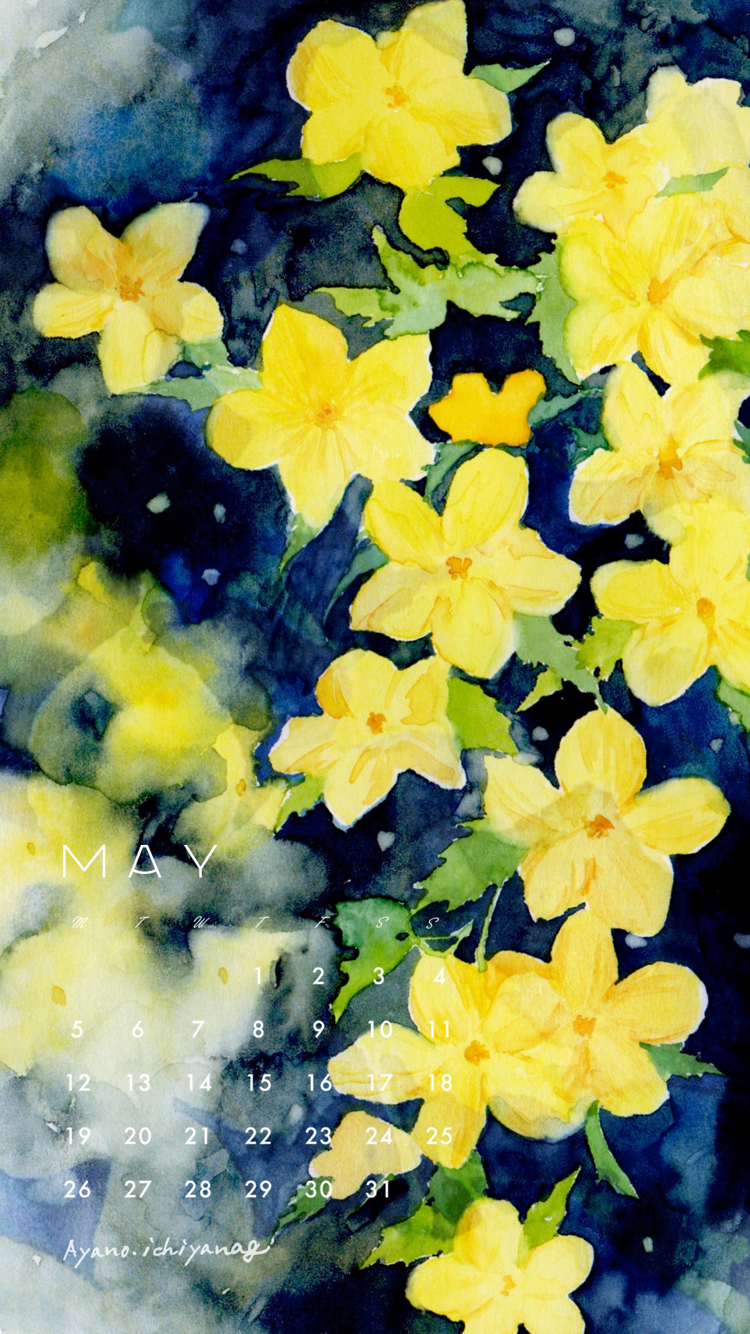 [ 2025年5月/スマホ壁紙:山吹] (絵描き:Ayano Ichiyanagi / 一柳綾乃)