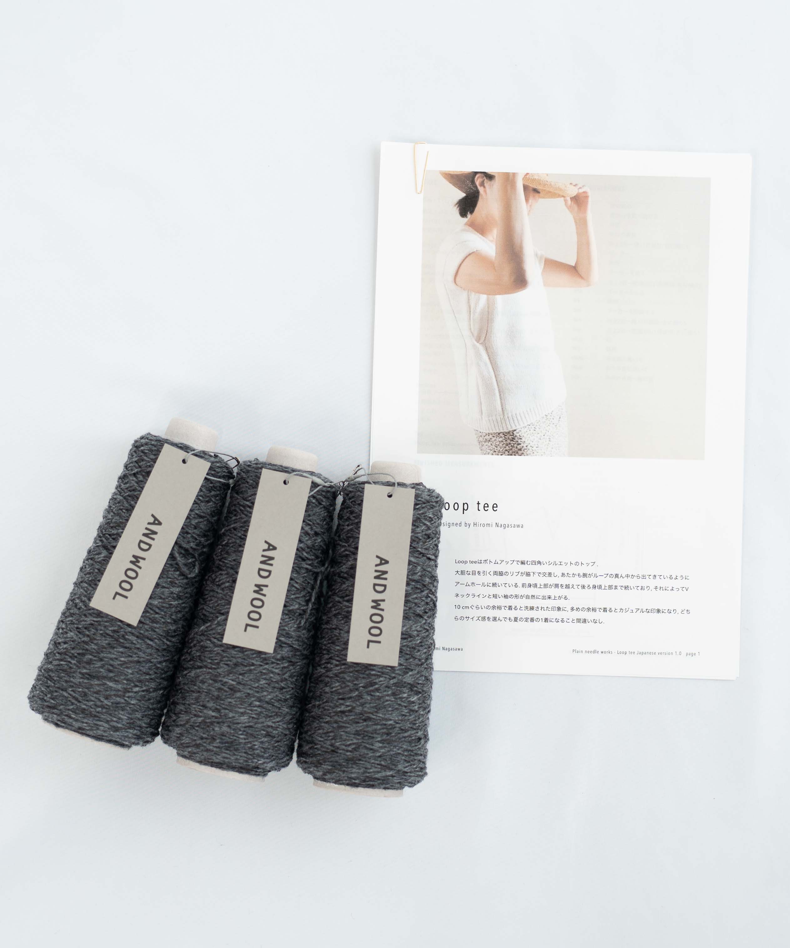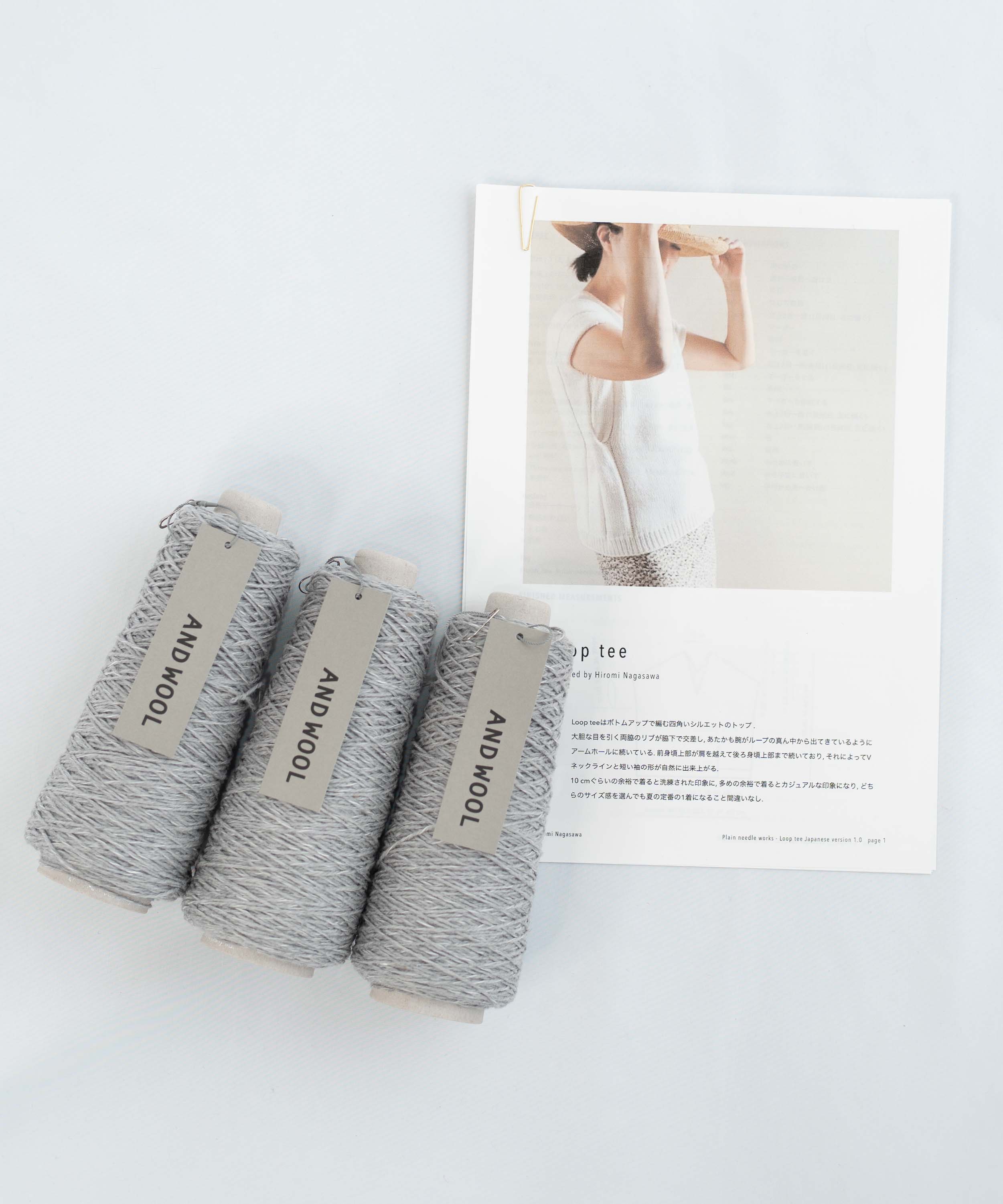 Hiromi Nagasawa】 Loop tee ループティーの              ANDWOOLのおススメ糸 NO.33 ジャパンリネンウール糸(100g・250m✕3個入り750m)着分糸セットです。1~6サイズ対応の着分糸セットです。