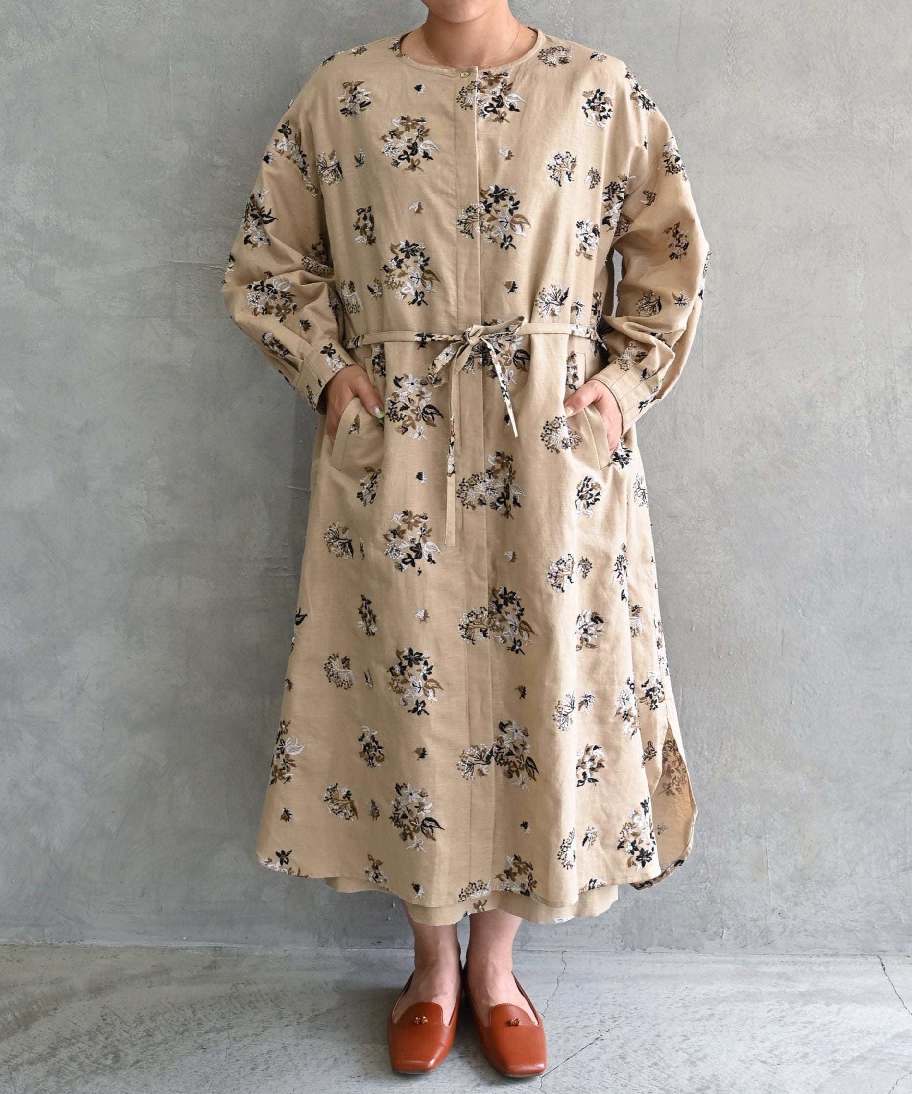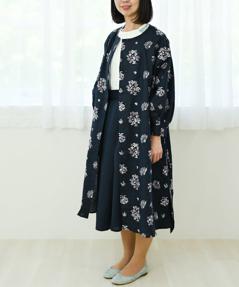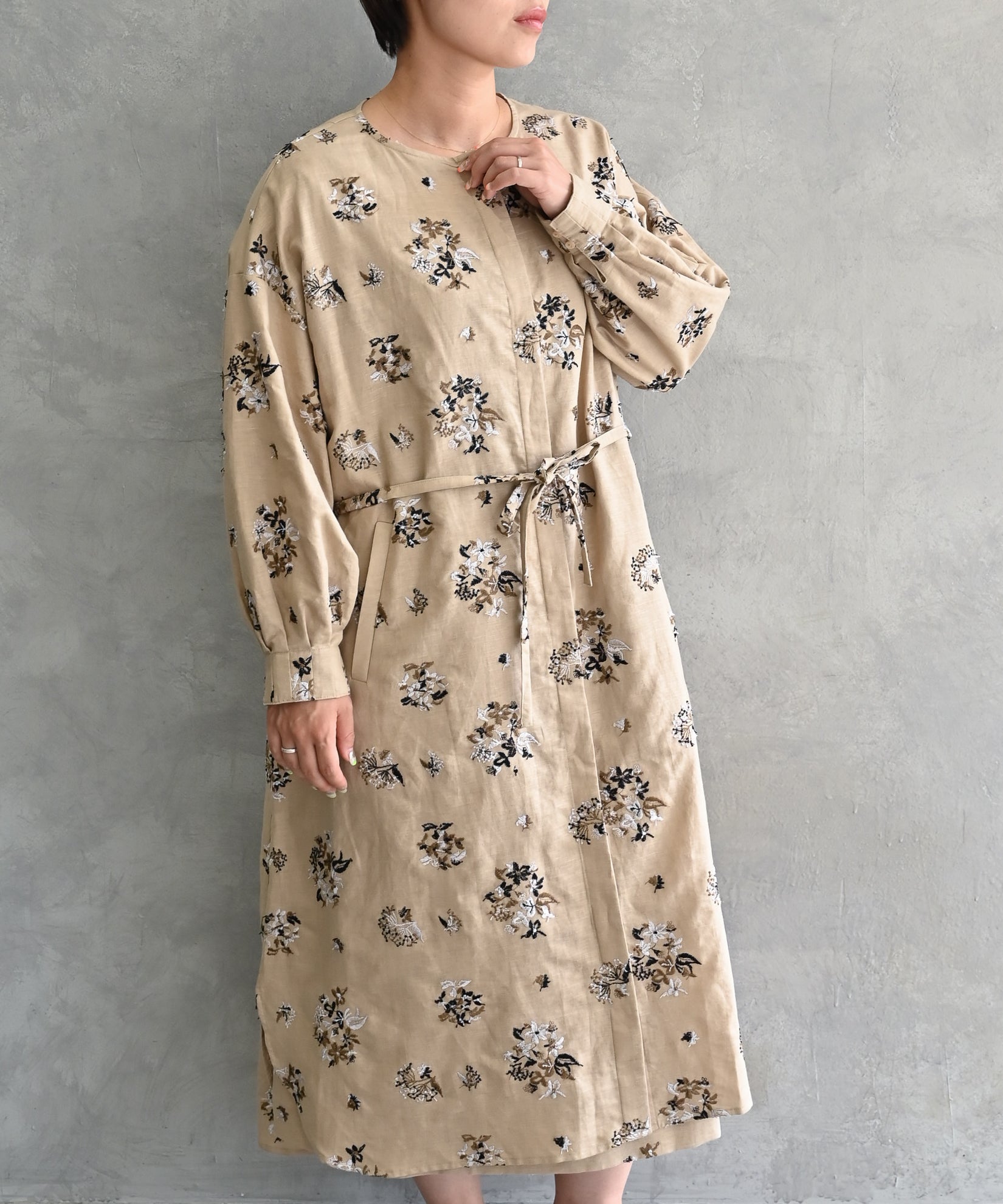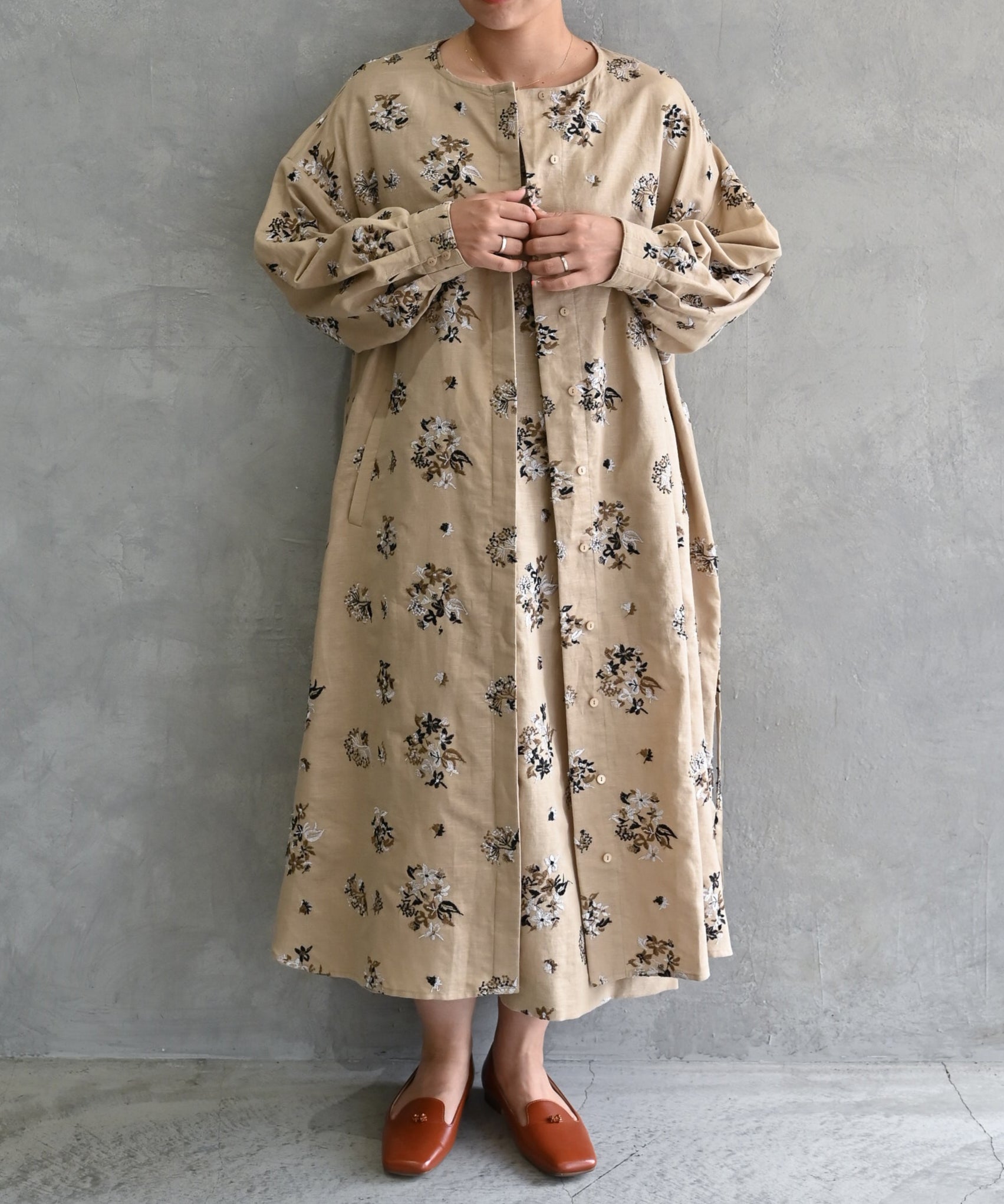 〈遠州織物 コットン×リネン〉野小花刺繍 羽織り&ワンピースドレス (muh602)