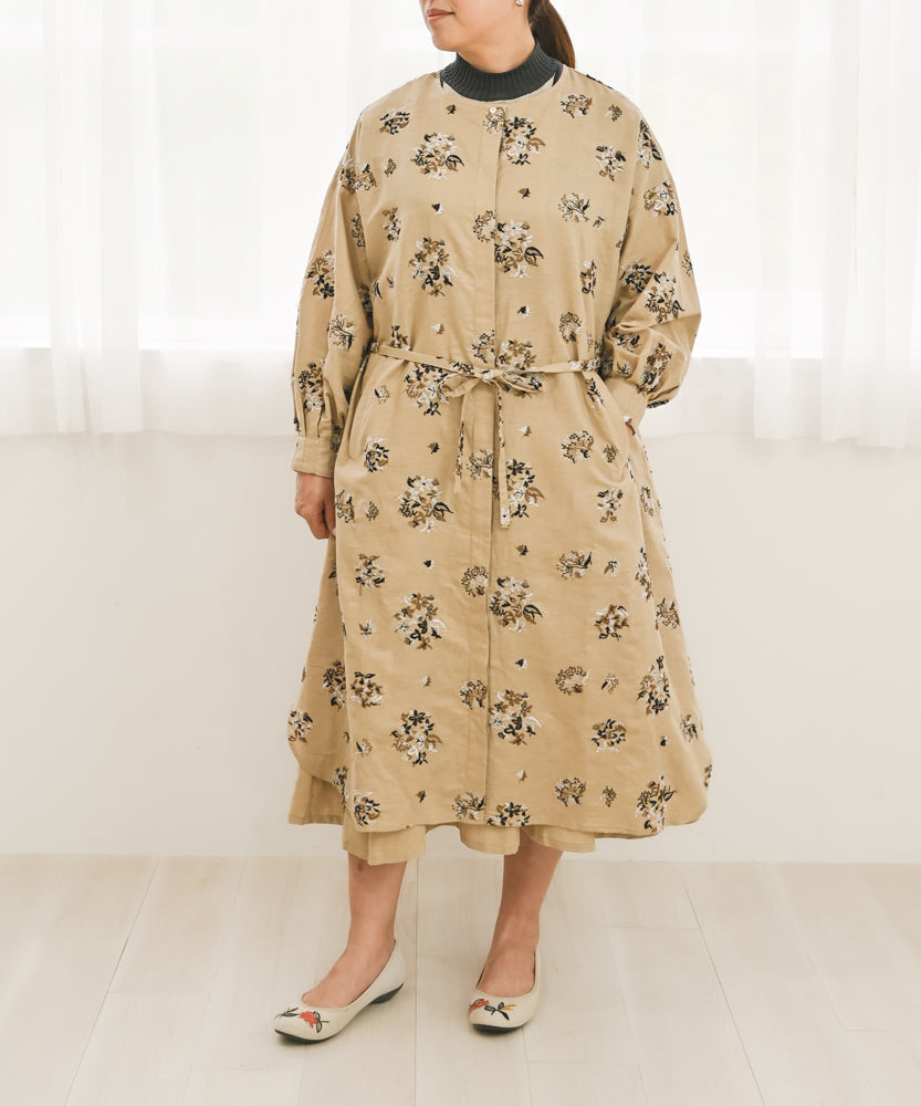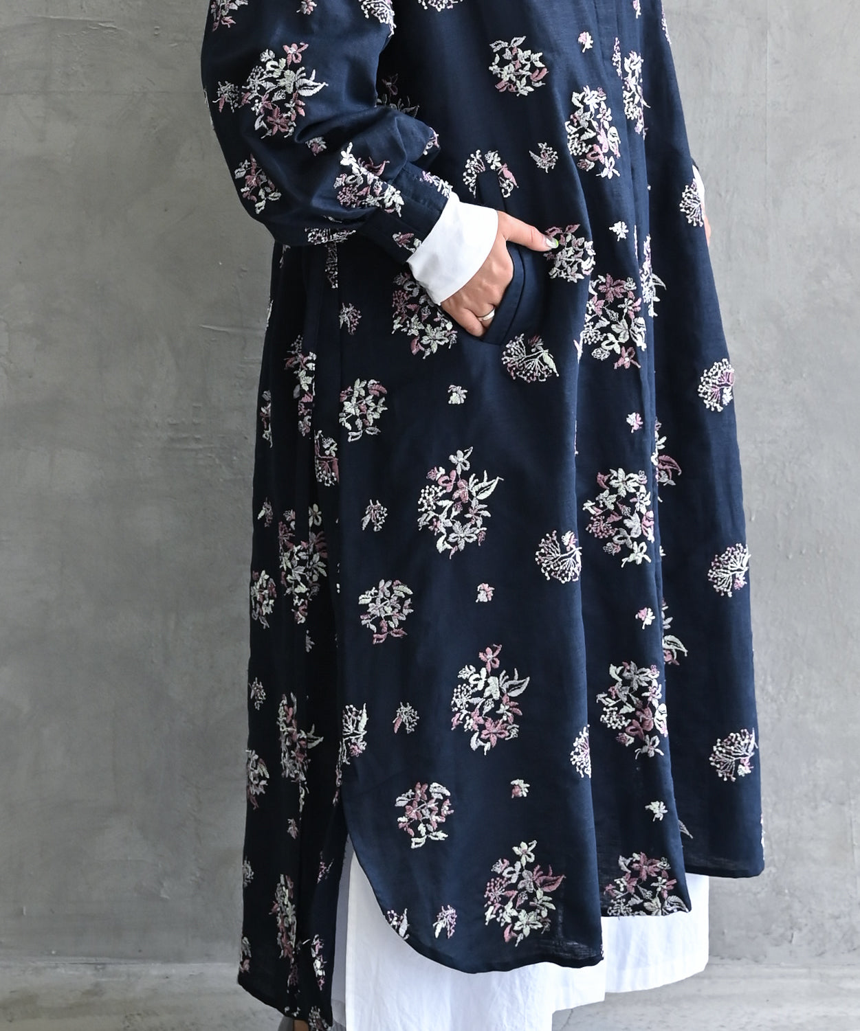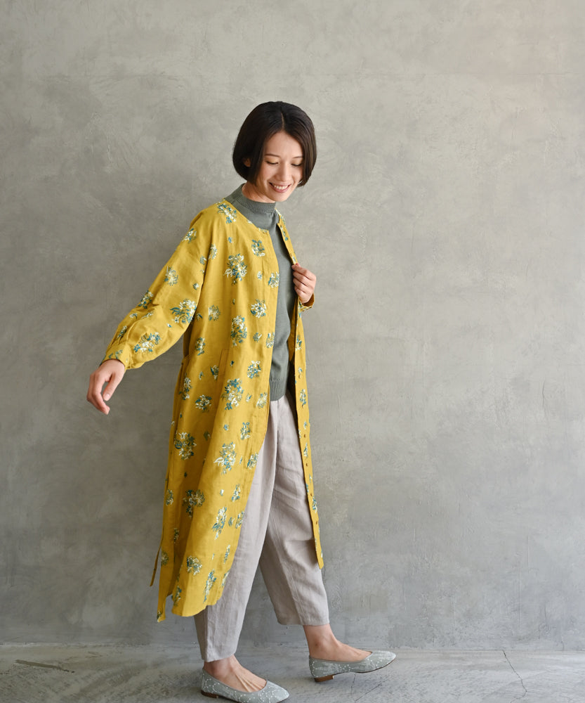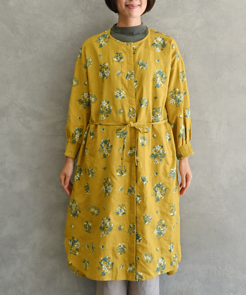 〈遠州織物 コットン×リネン〉野小花刺繍 羽織り&ワンピースドレス (muh602)