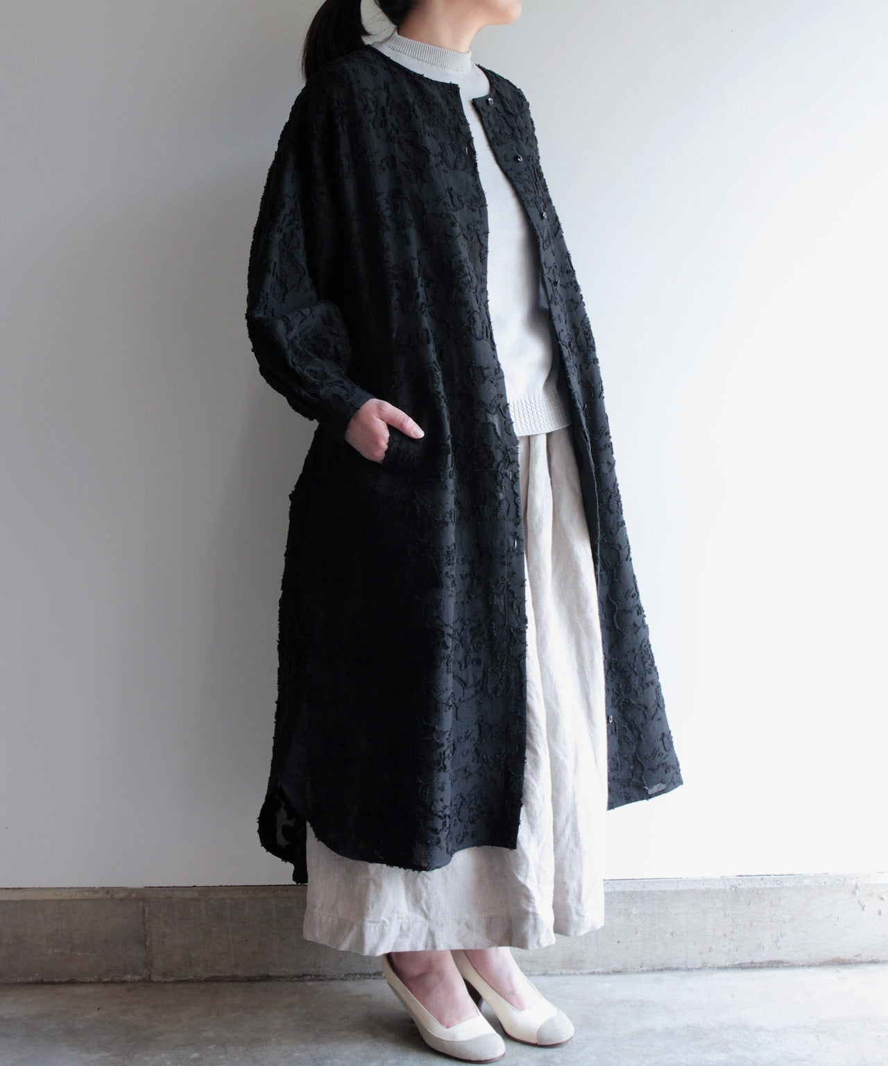 前開きのボタンをすべて開けて、羽織としてのコーディネートもおススメです。