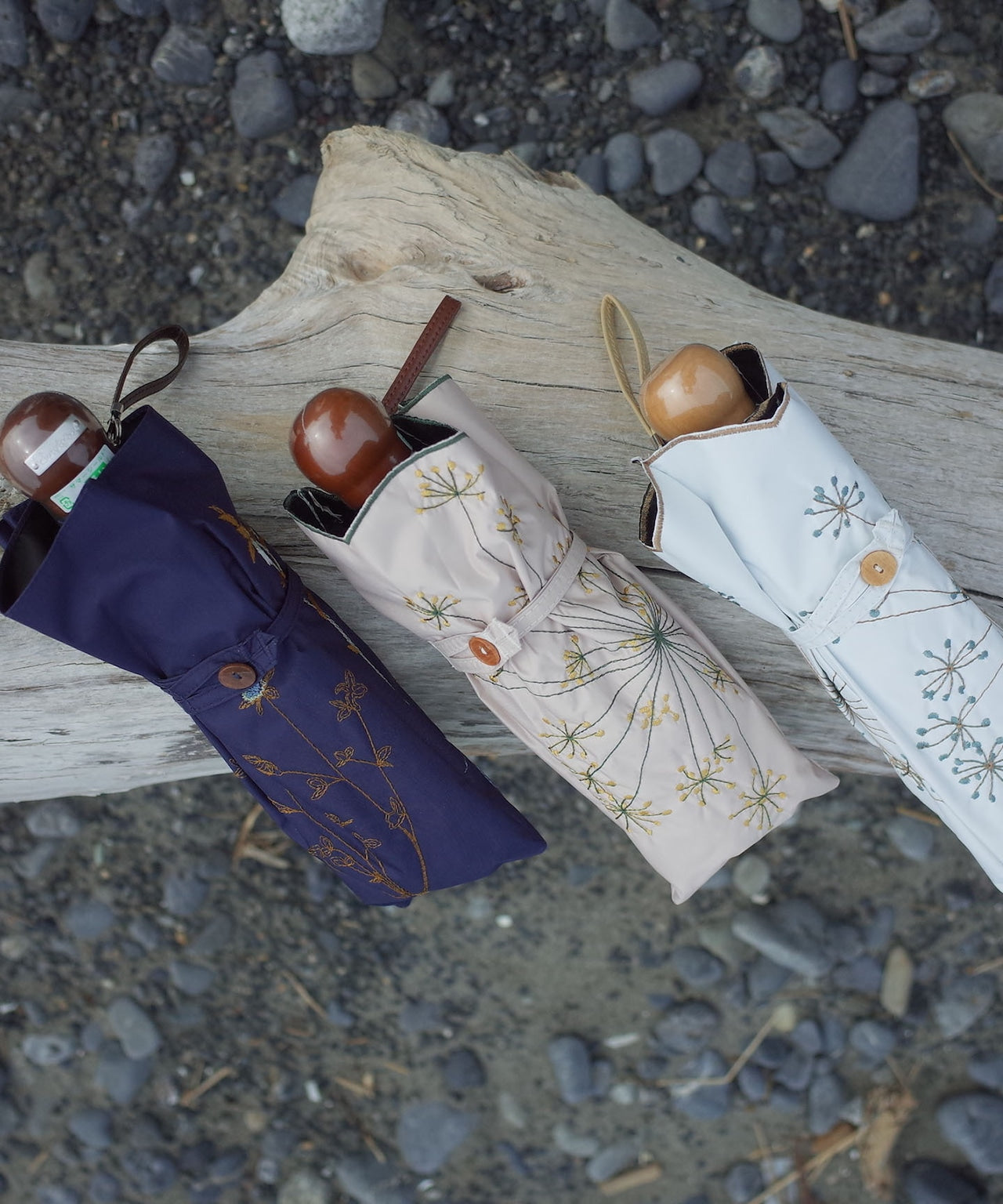 【フェンネル花刺繍】晴雨兼用日傘 (折りたたみ)(ELS48mini)