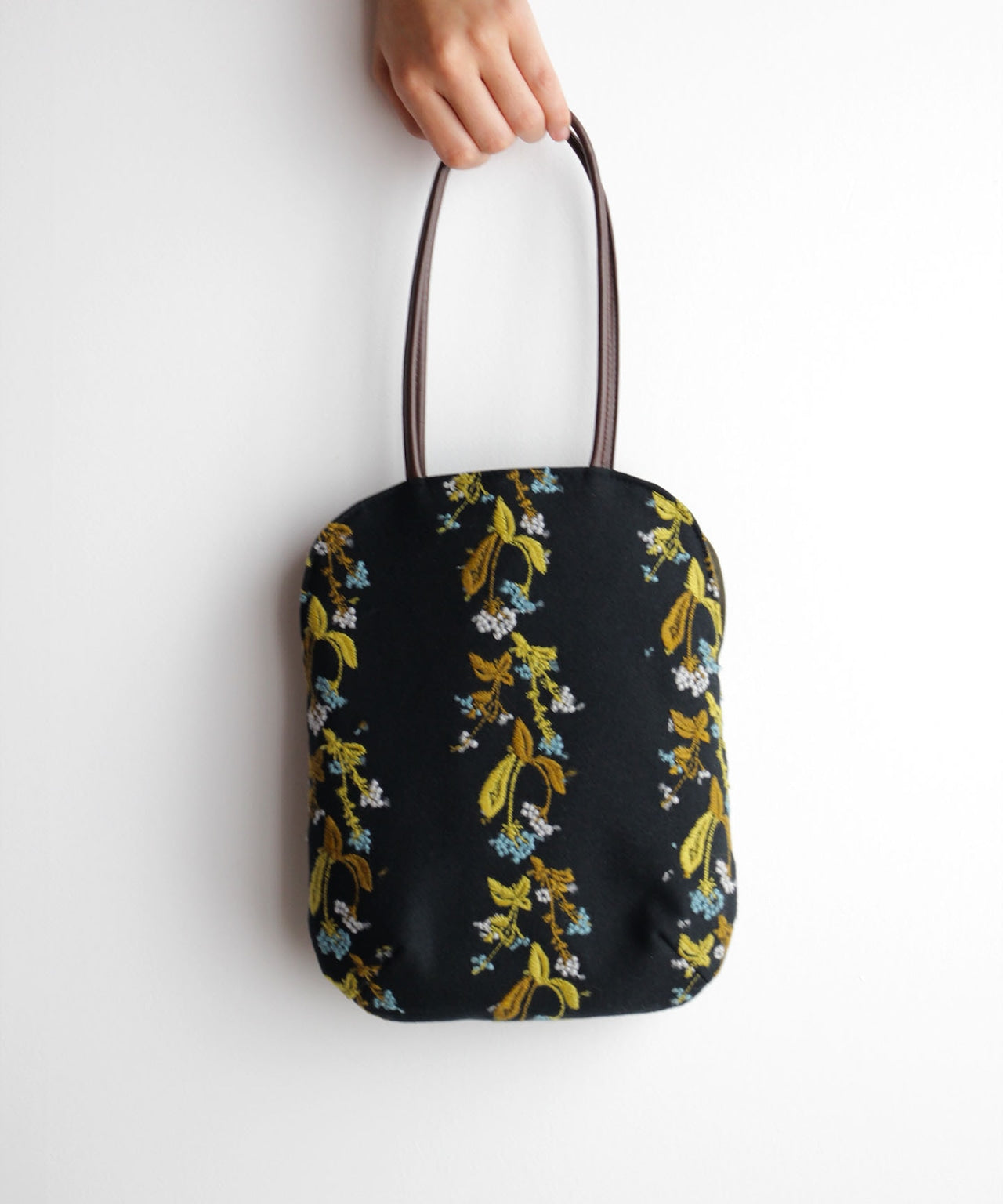 ナズナ(撫菜)をイメージした手刺繍を思わせるような立体的な刺繍を、福井県の刺繍工場に作っていただき、そのオリジナルテキスタイルをバッグにしました。