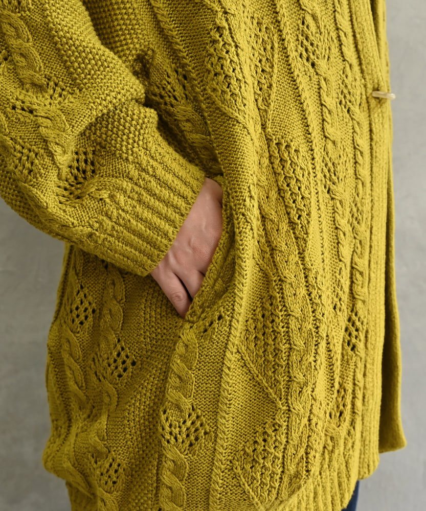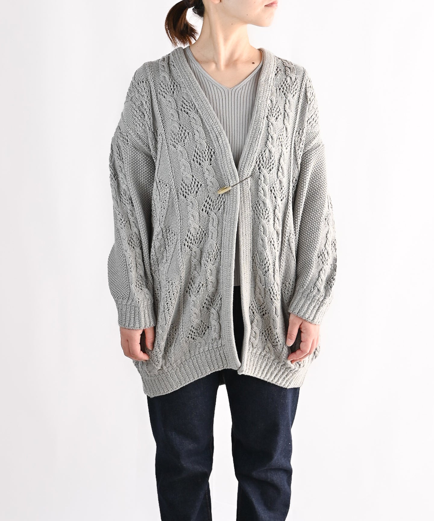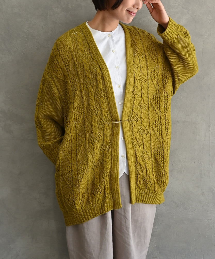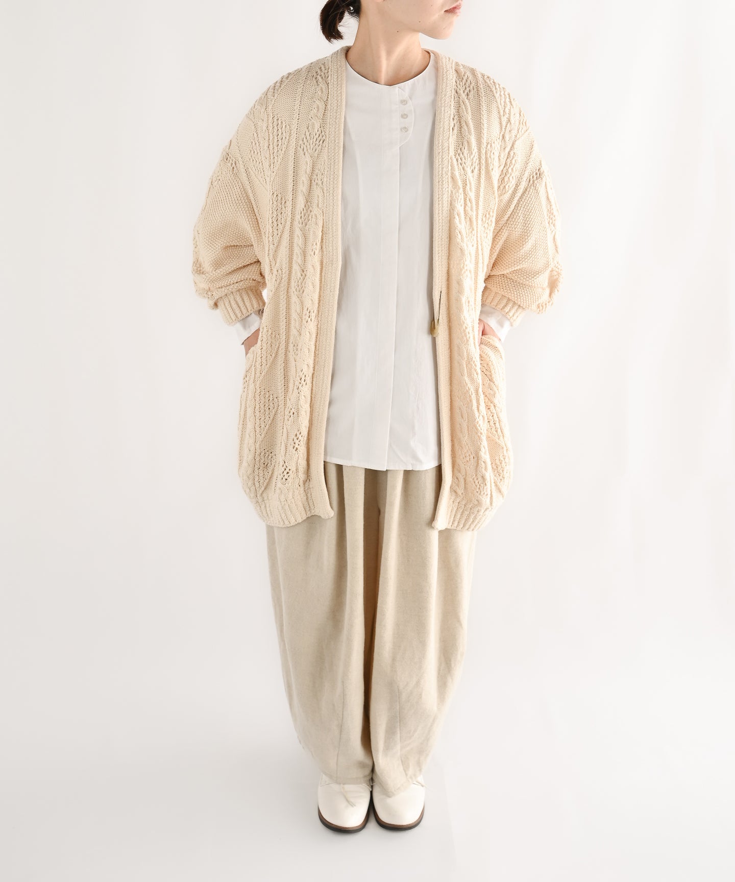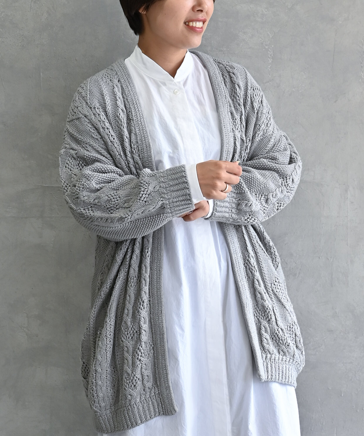 〈高品質スーピマ超長綿・オーガニックコットン〉アラン模様 ローゲージニットカーディガン (mub417)