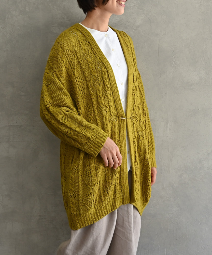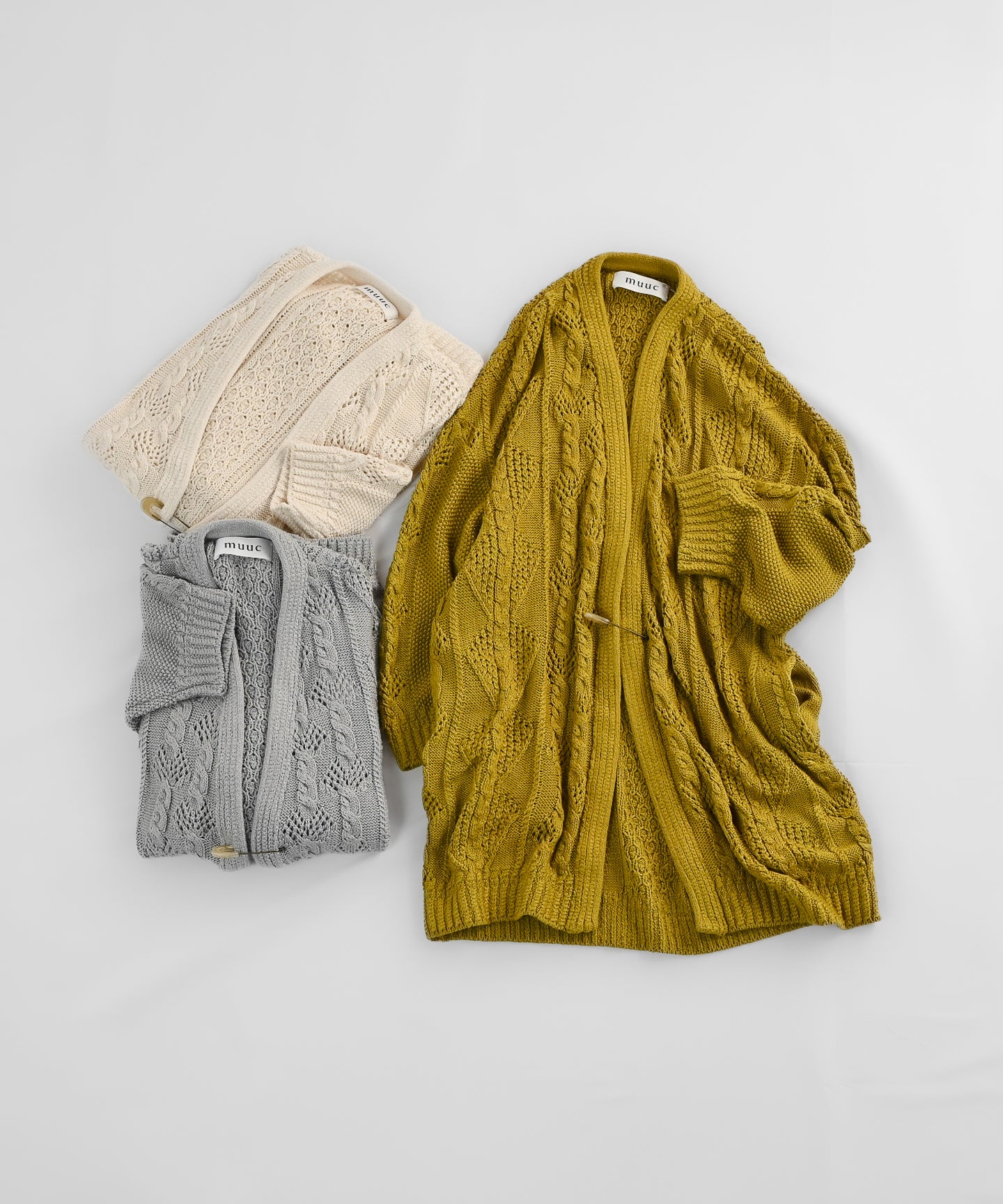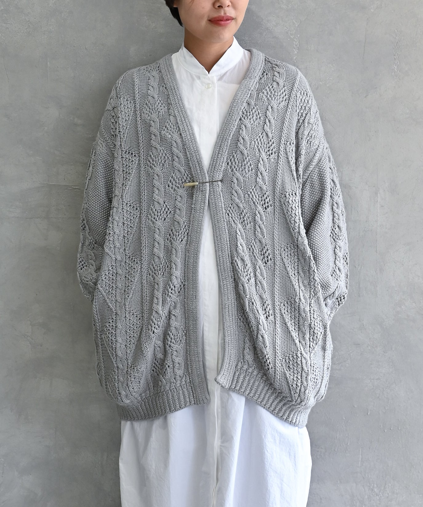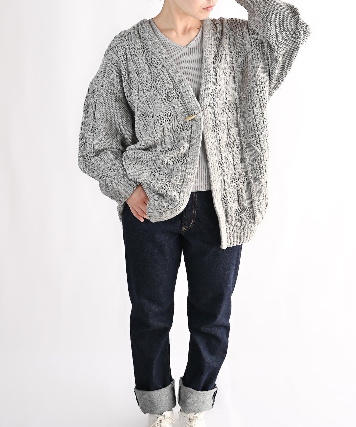 〈高品質スーピマ超長綿・オーガニックコットン〉アラン模様 ローゲージニットカーディガン (mub417)
