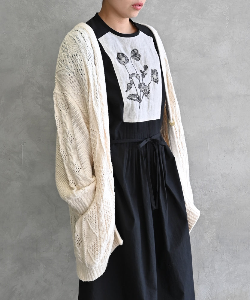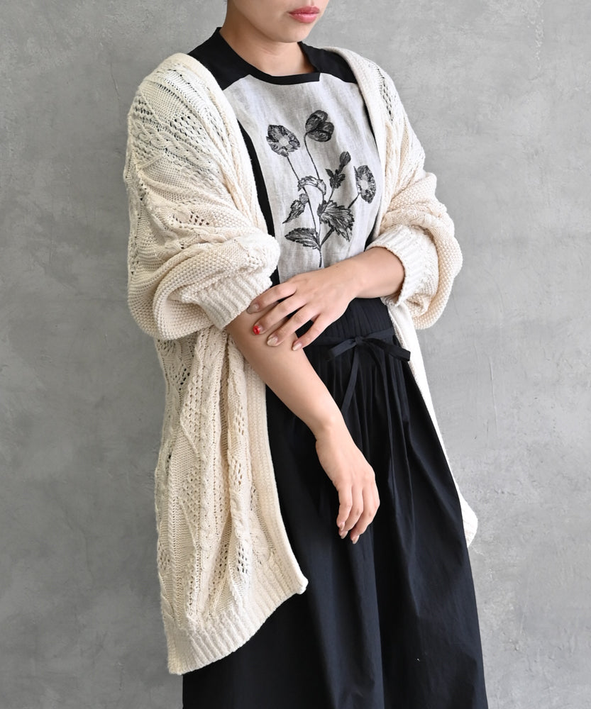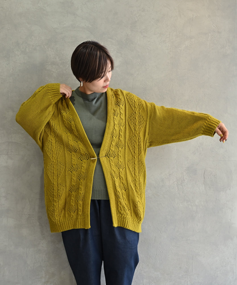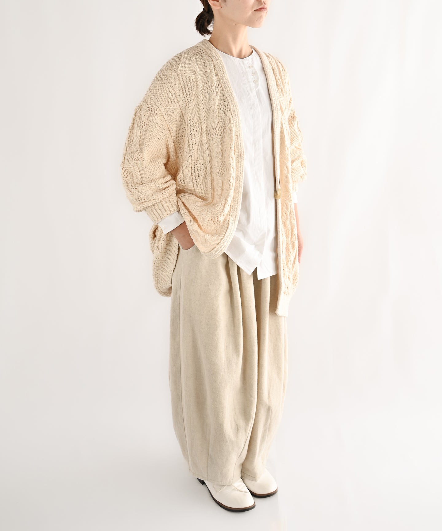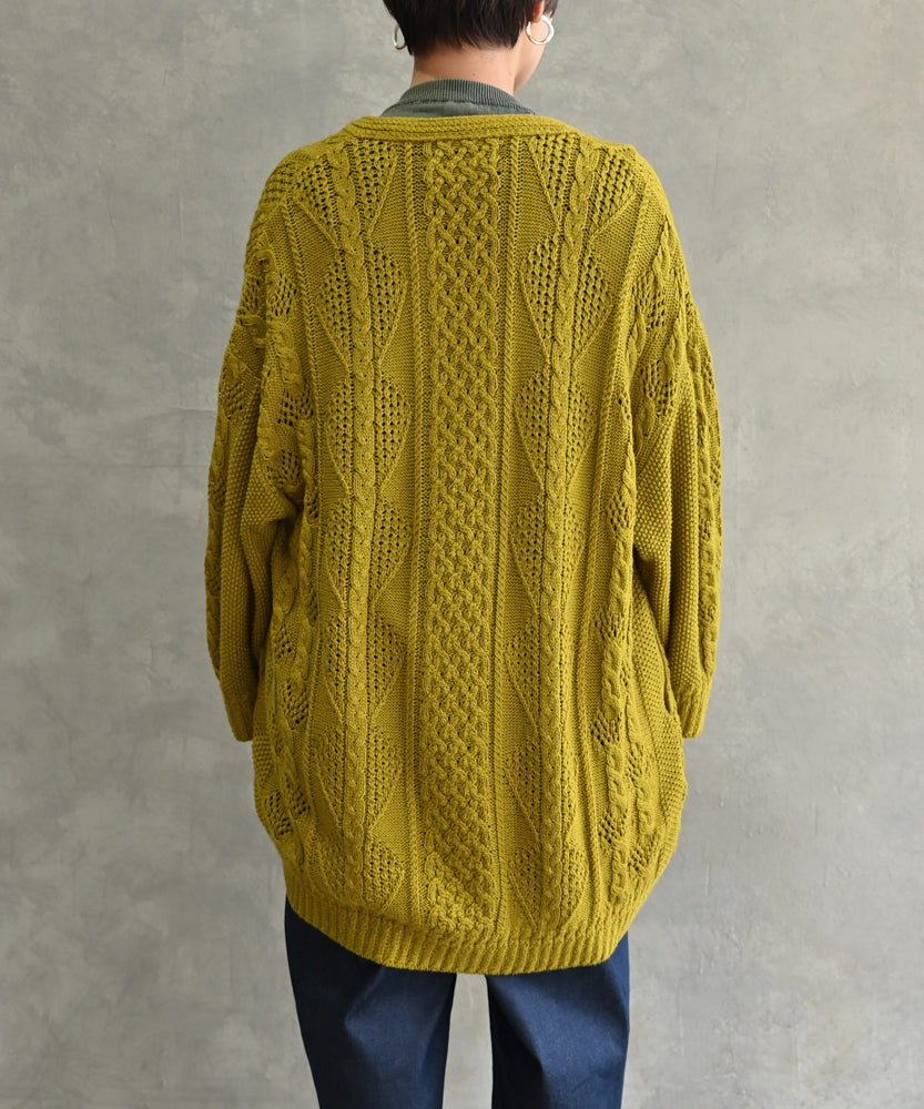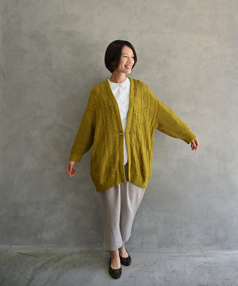 〈高品質スーピマ超長綿・オーガニックコットン〉アラン模様 ローゲージニットカーディガン (mub417)