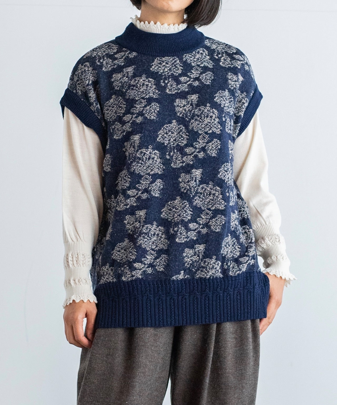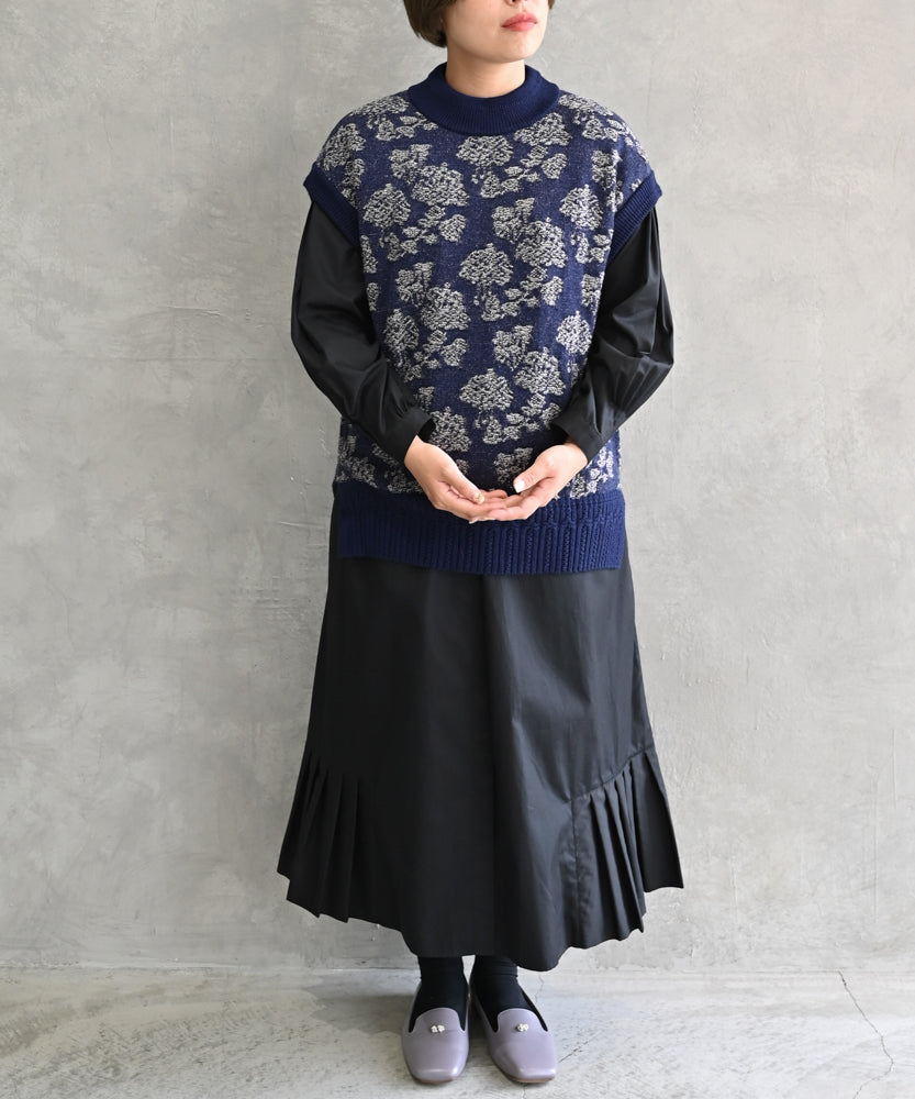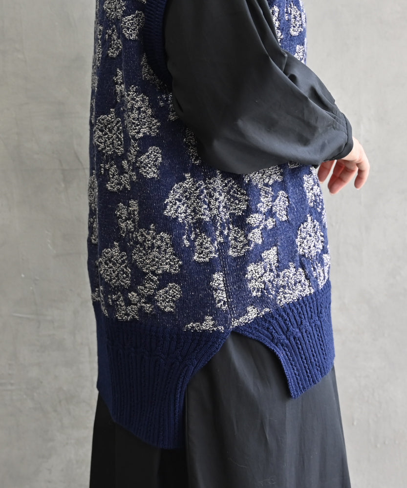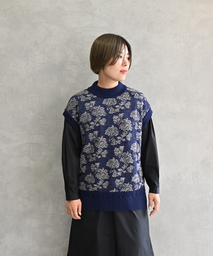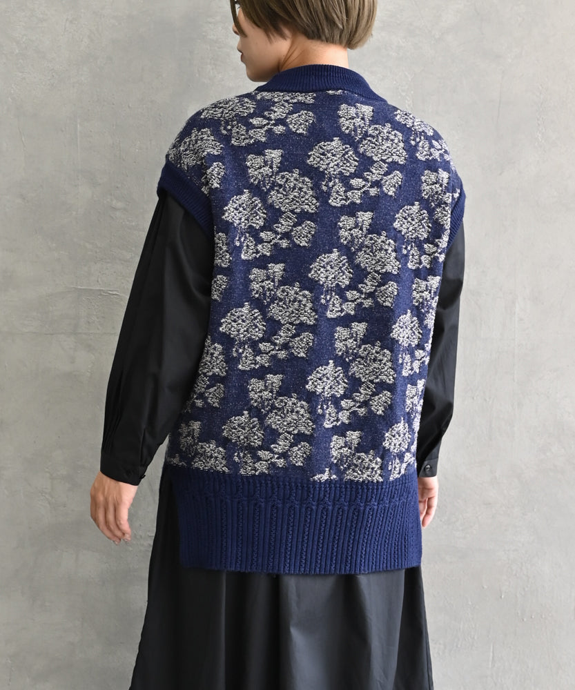 〈極細繊維ウール〉〈高品質スーパー120S極細ウールニット〉〈お家で洗えるニット〉フラワージャカートのニットベスト (muc918)