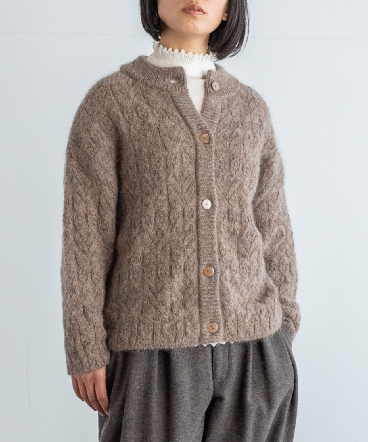 〈高品質極細アルパカモヘア〉ニットのカーディガン (mue411)