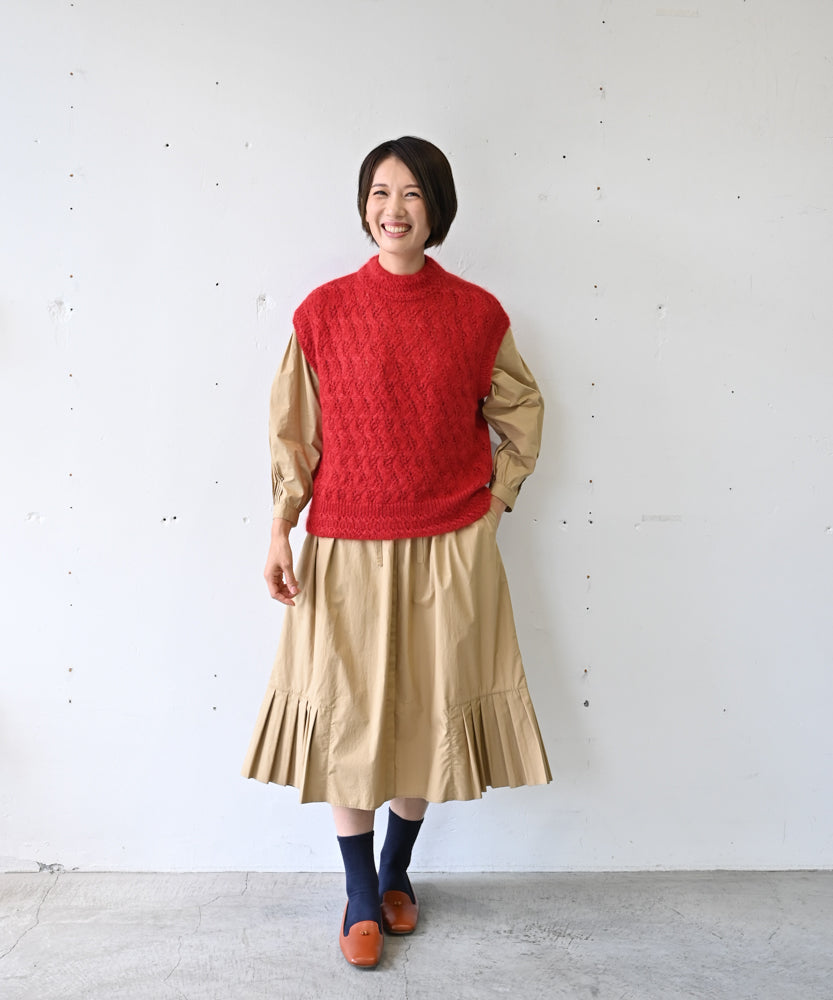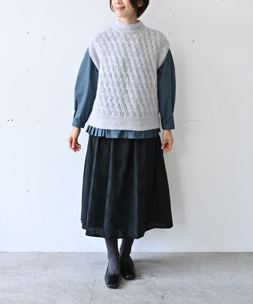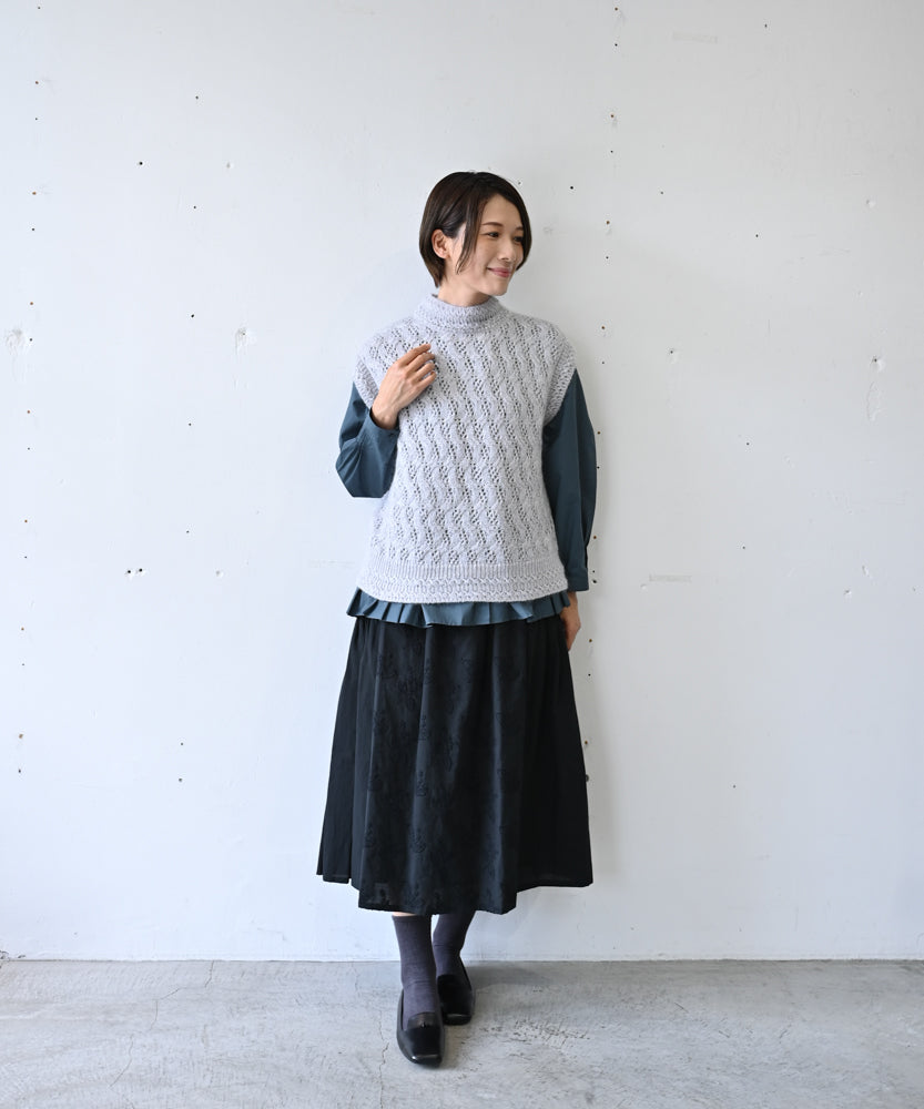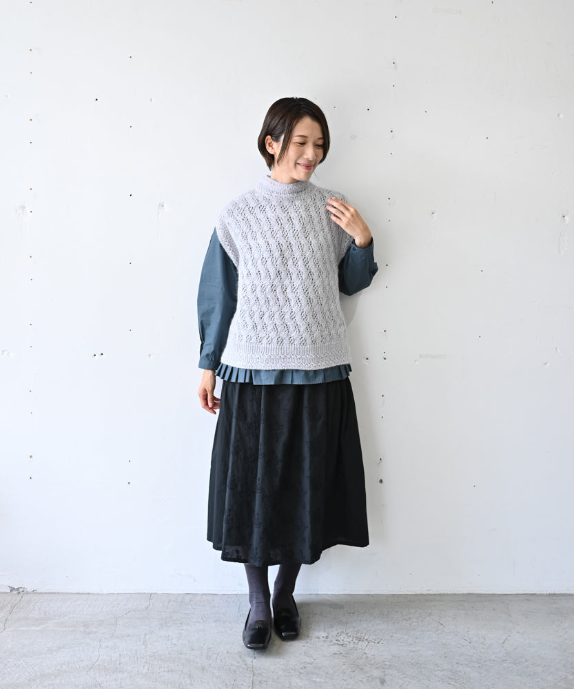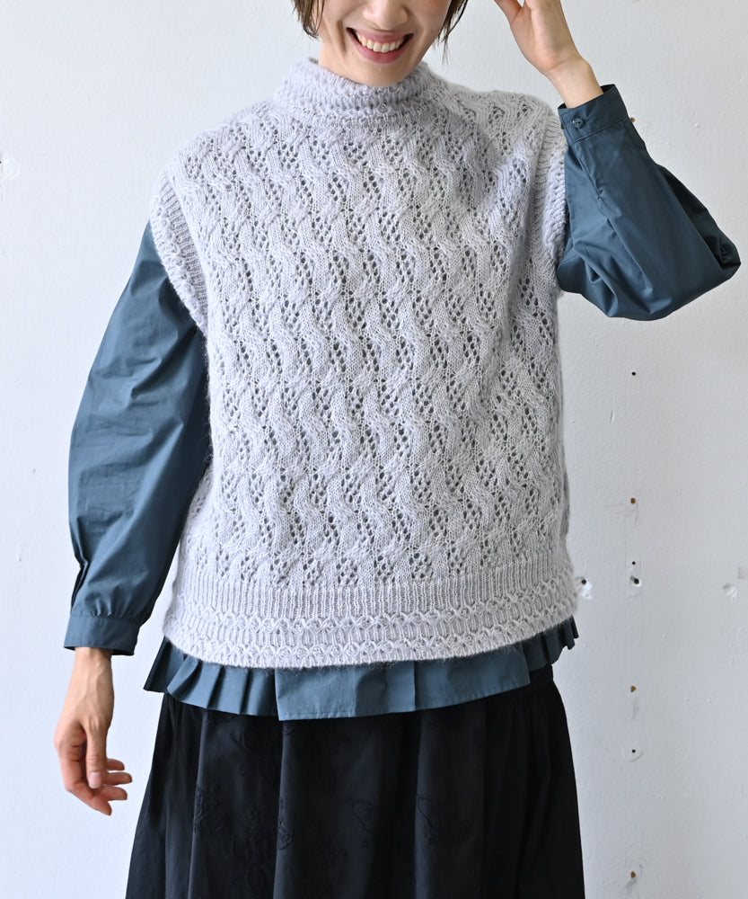 〈高品質シルク&アンゴラ山羊モヘヤ〉模様編み ボトルネックベスト (mug916)