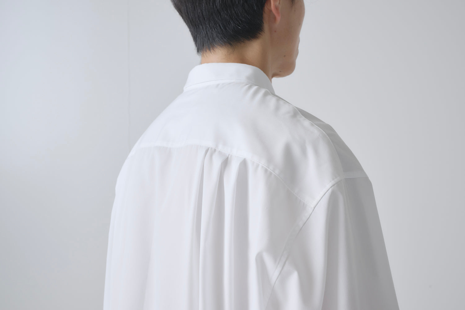 背中のタックを多めにとることで、後ろ姿にも自然な立体感を。